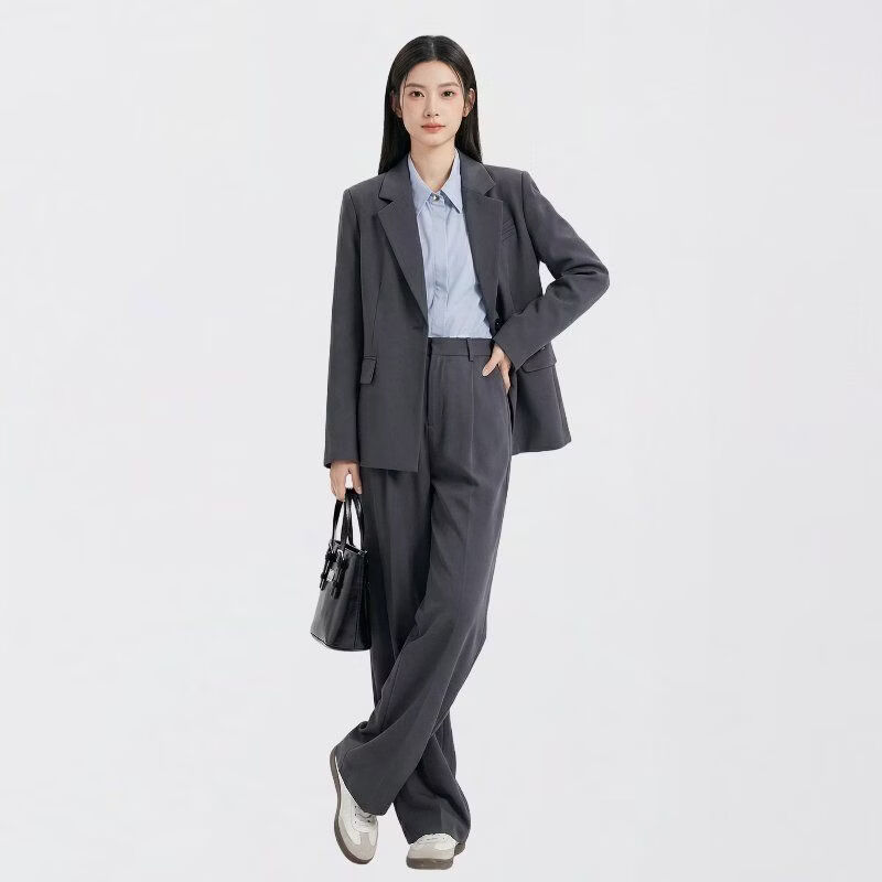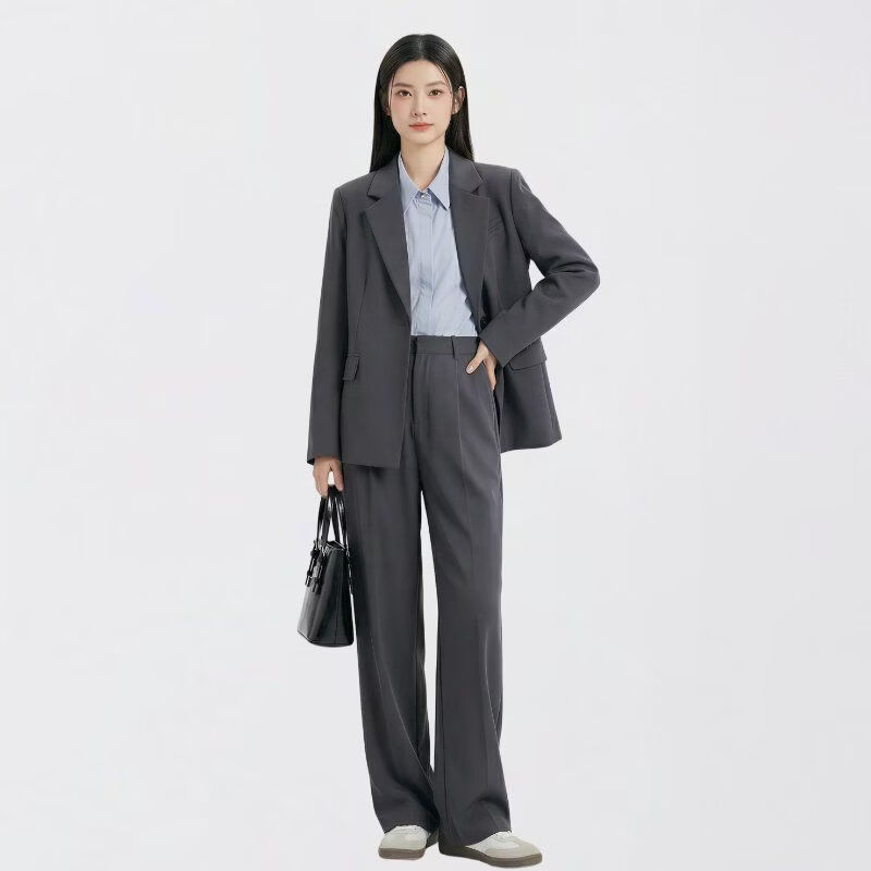 Dajiashi Z Gray Suit Suit Women's Business Wear 2026 New Spring Autumn Business Suit Formal Occasion Two-piece Suit B Black Two-piece Suit Free Belt XL