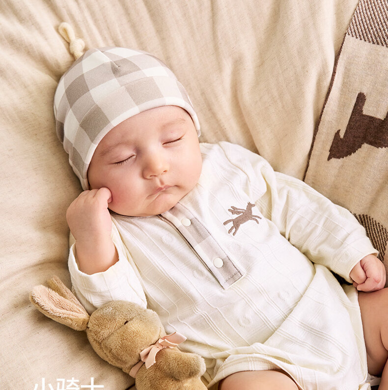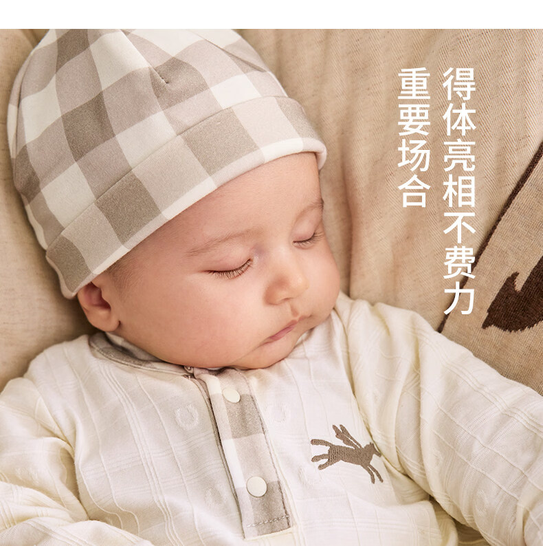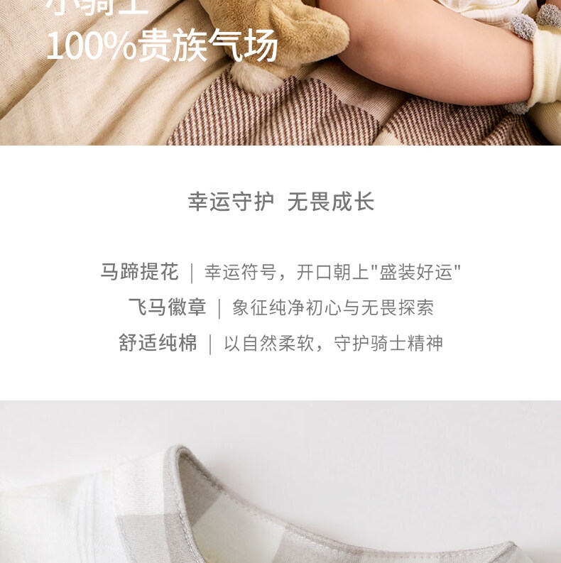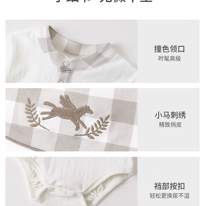 Koala Nose Little Knight Fashionable and high-end baby soft and comfortable pure cotton Year of the Horse style Western-style versatile set Bib-milk white background with khaki check pattern One size fits all 27x29cm Bib Specifications