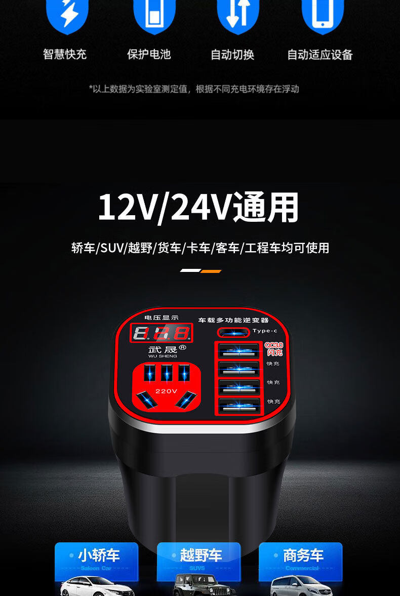 Car charger 12V24V to 220 fast charging cigarette lighter conversion plug USB expansion car charger old model standard version 12v24v universal 1 fast charge