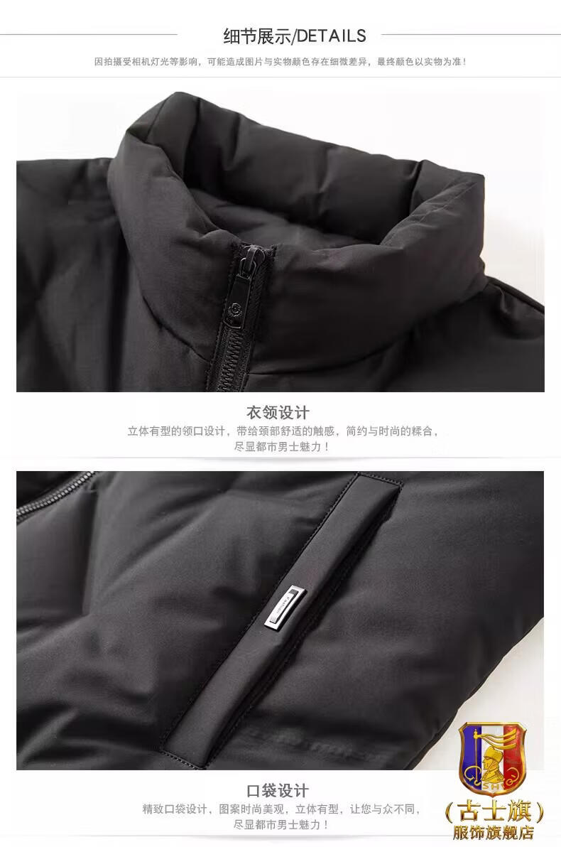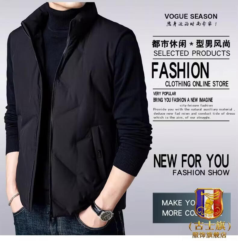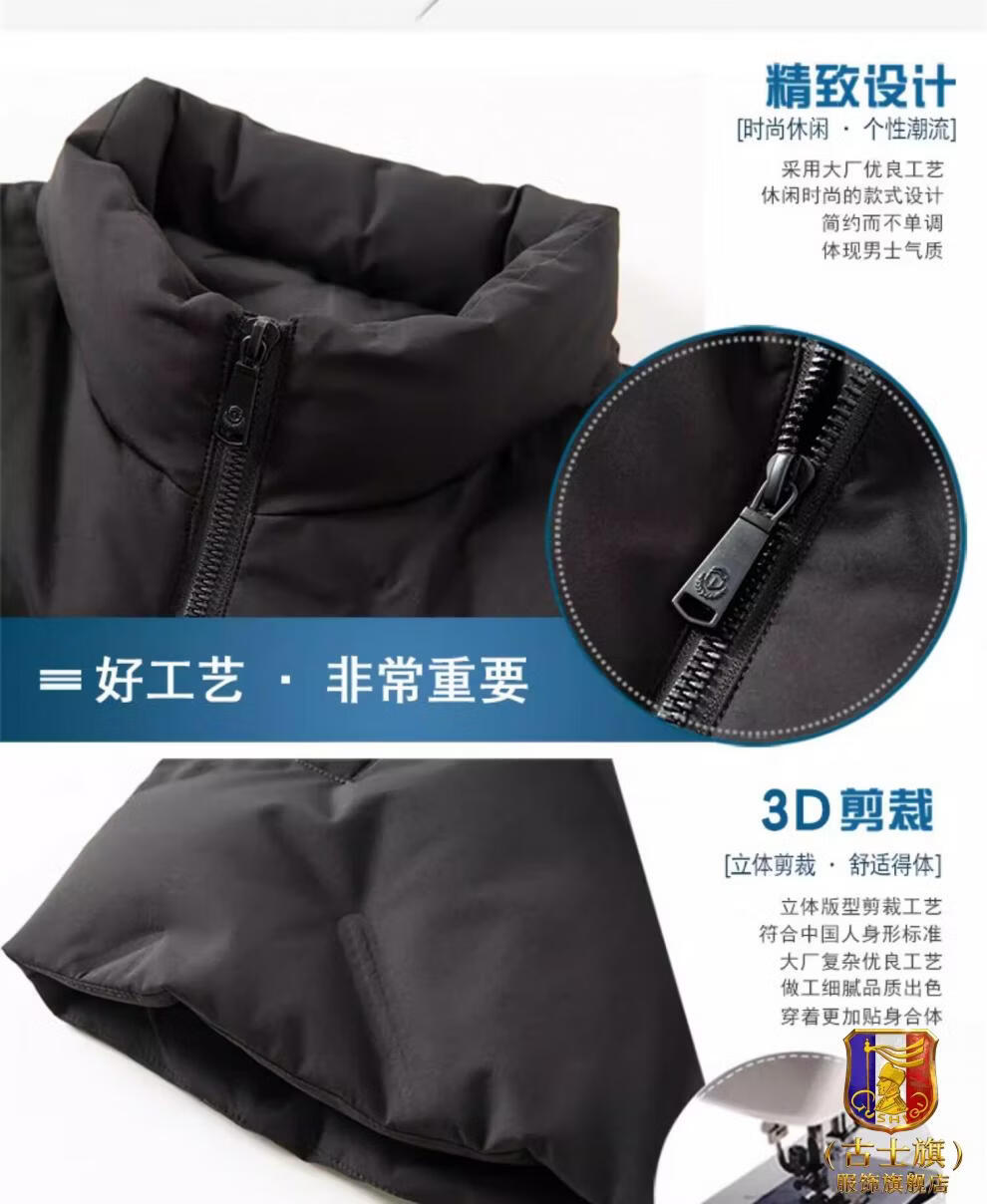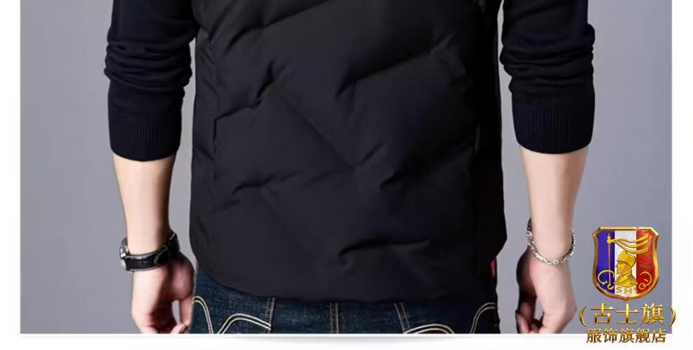 GUSKI luxury high-end brand down vest men's stand-up collar thickened vest versatile vest casual warm jacket black - exquisite gift box XL (180)