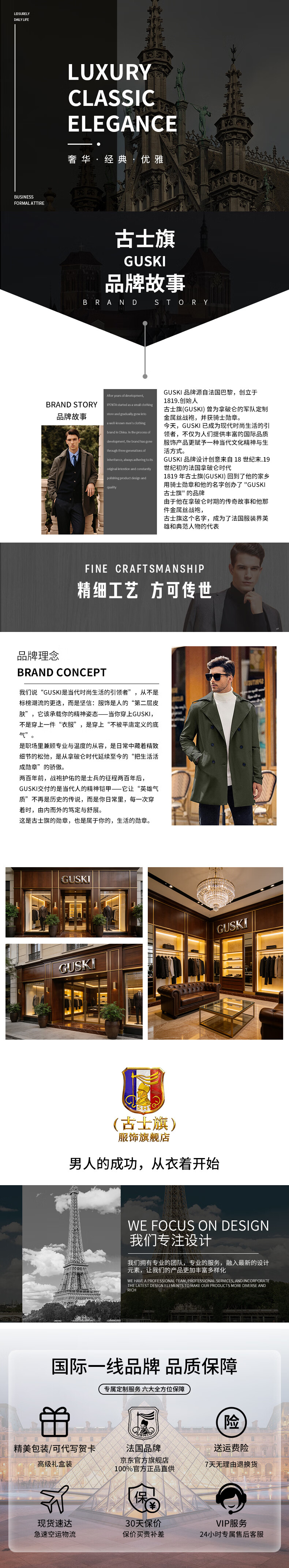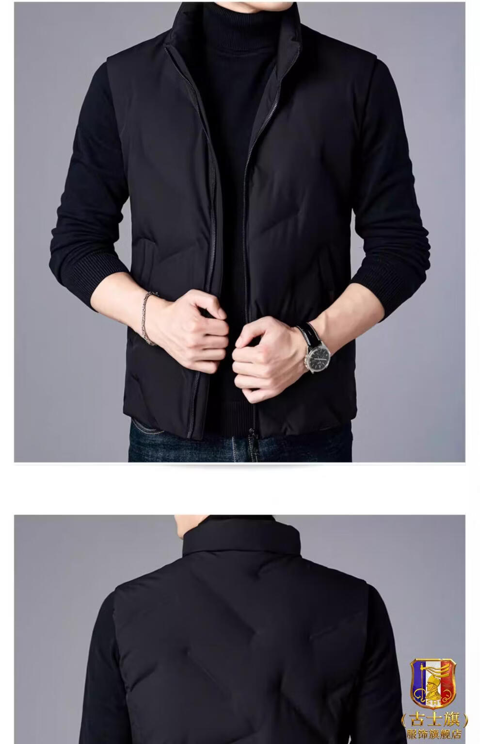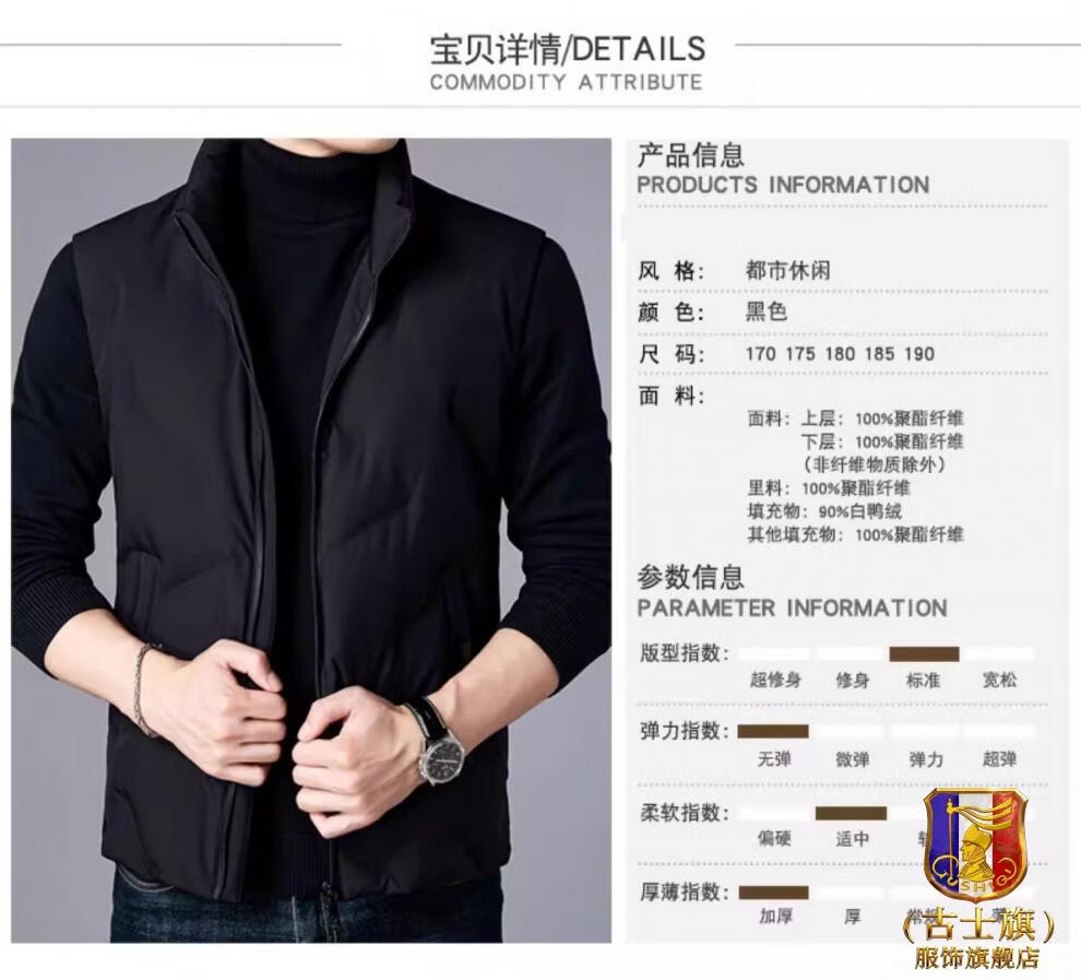 GUSKI luxury high-end brand down vest men's stand-up collar thickened vest versatile vest casual warm jacket black - exquisite gift box XL (180)