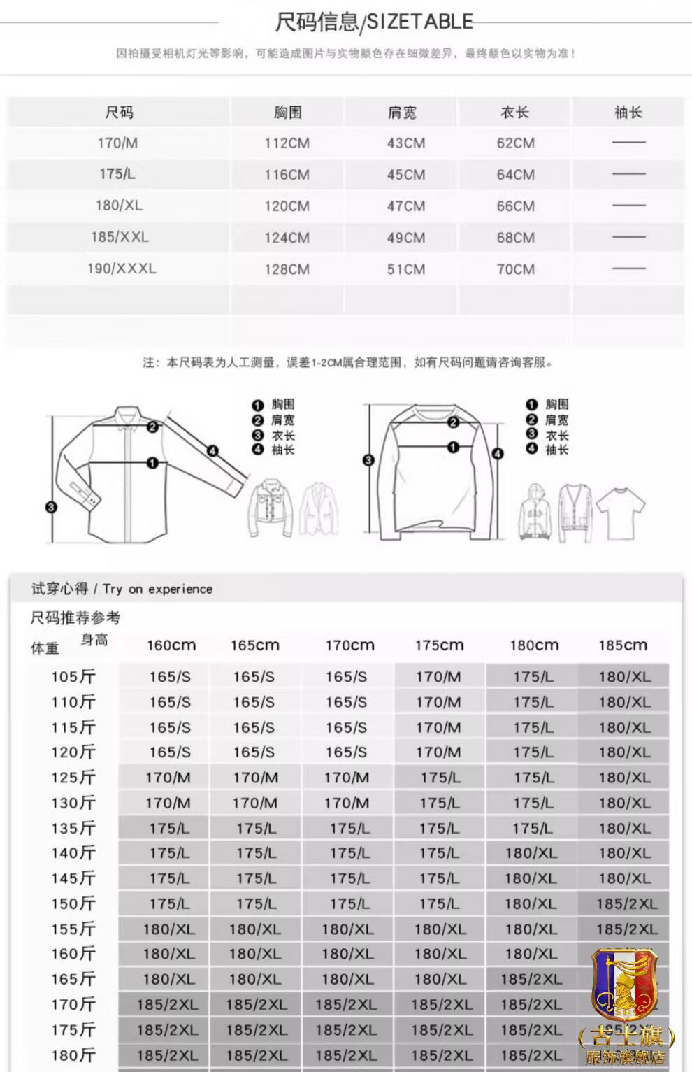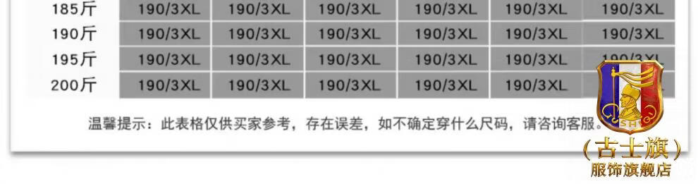 China (cm) 165 / 88-90 170 / 96-98 175 / 108-110 180 / 118-122 185 / 126-130