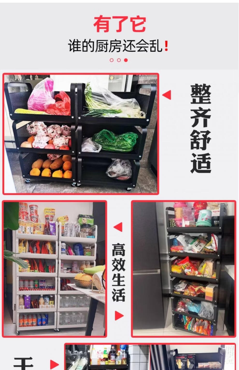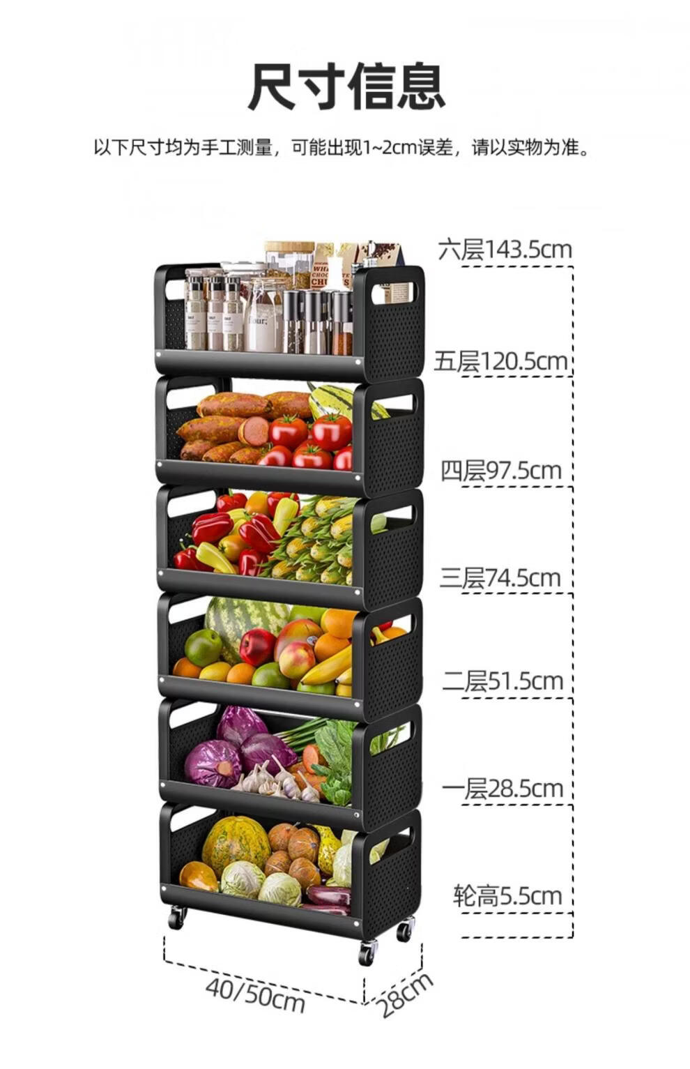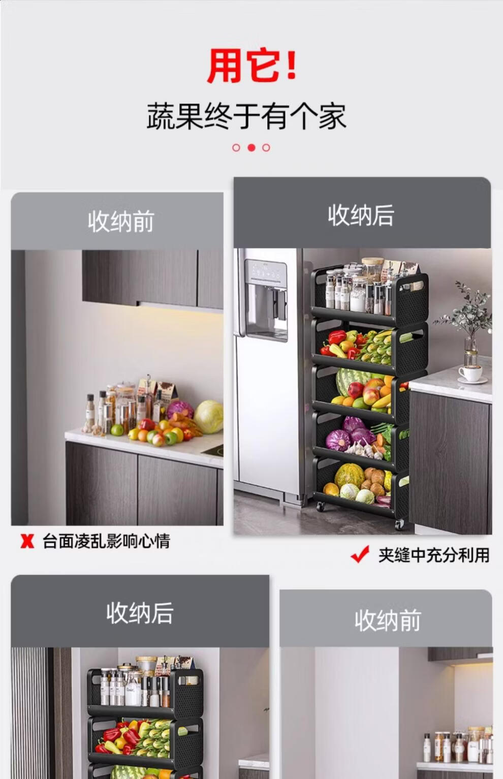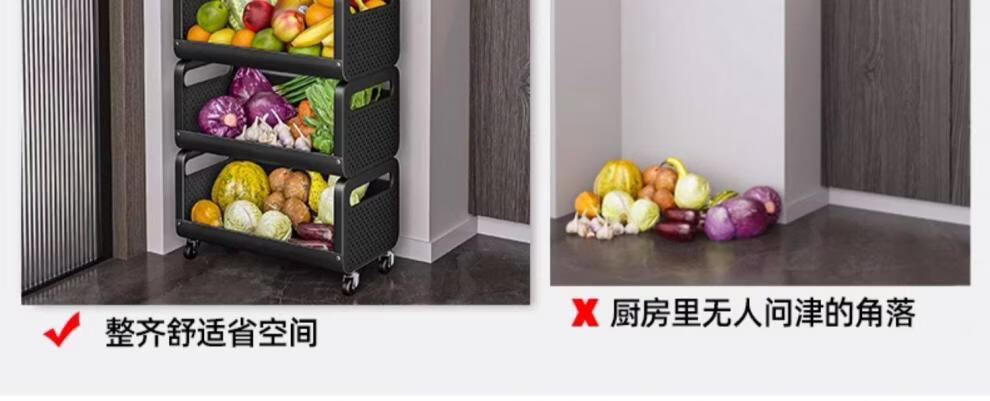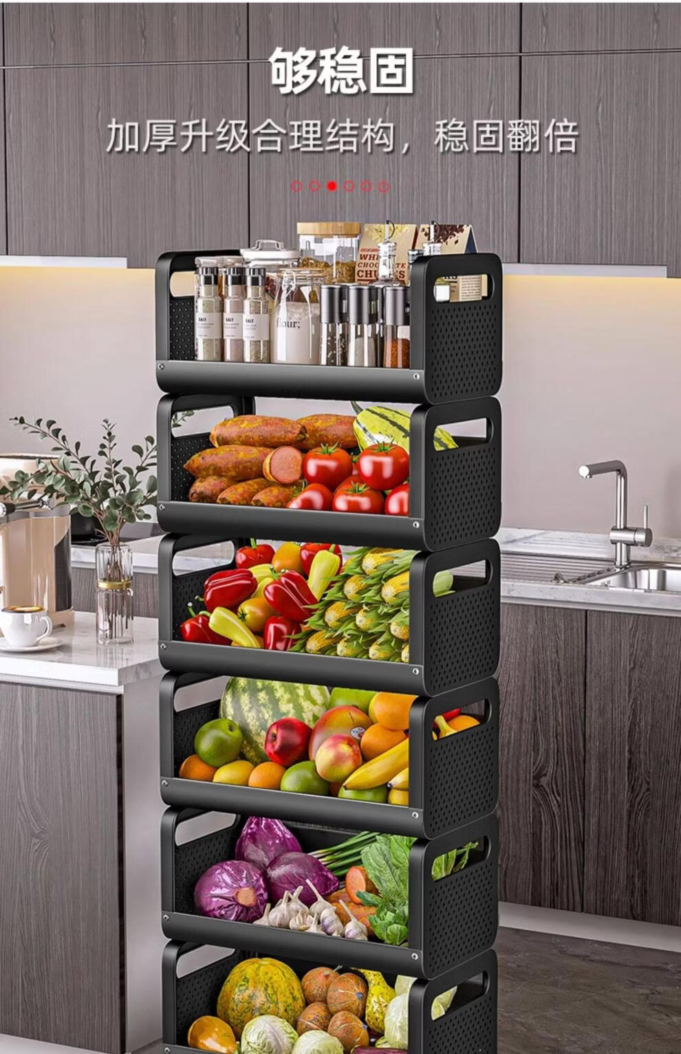 Tuojin kitchen vegetable basket rack multi-layer floor-standing removable fruit and vegetable storage household multi-functional trolley with top extra thick 40CM large four-layer charcoal black SF Express