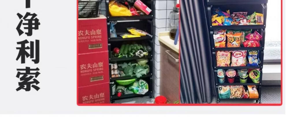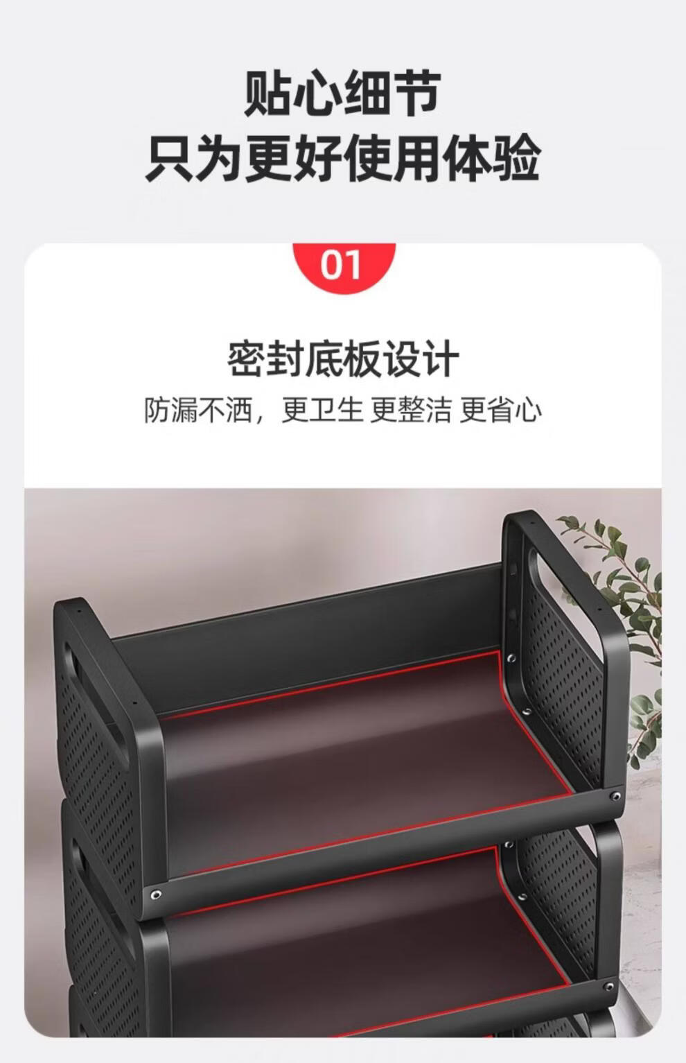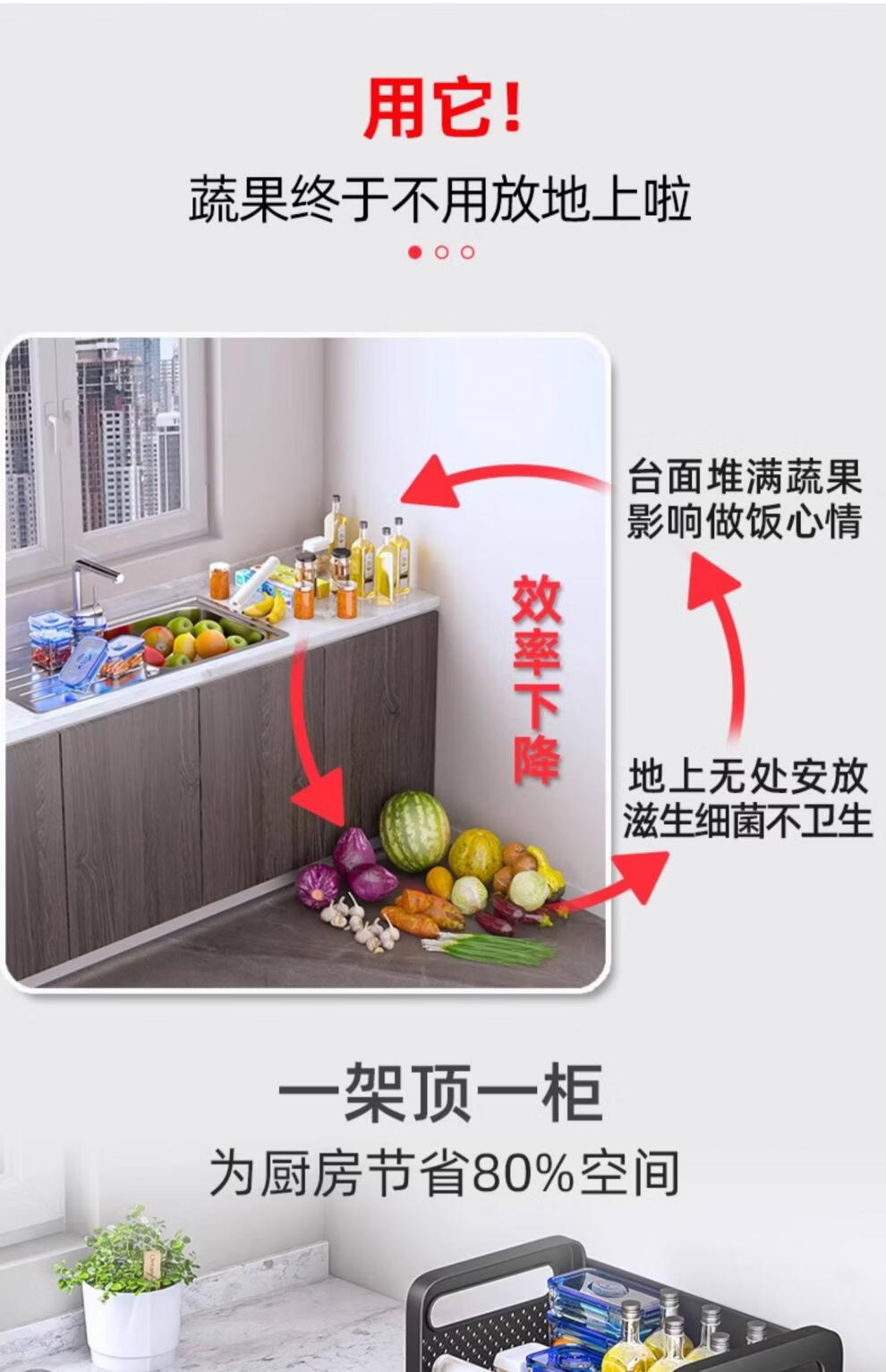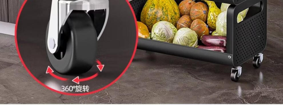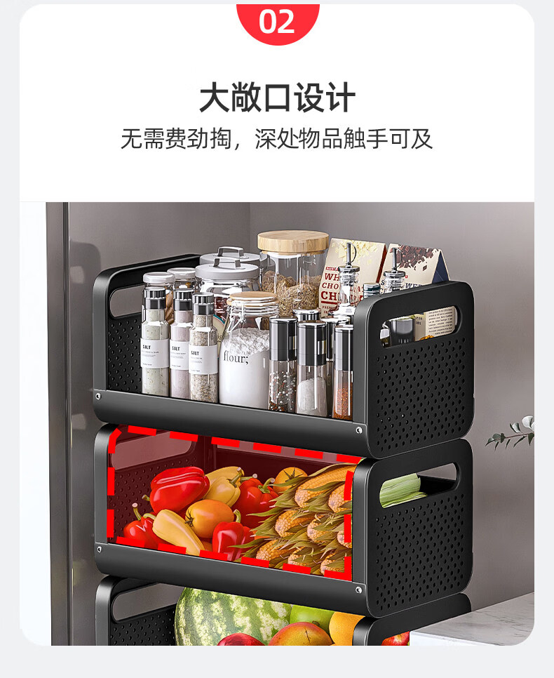Tuojin kitchen vegetable basket rack multi-layer floor-standing removable fruit and vegetable storage household multi-functional trolley with top extra thick 40CM large four-layer charcoal black SF Express