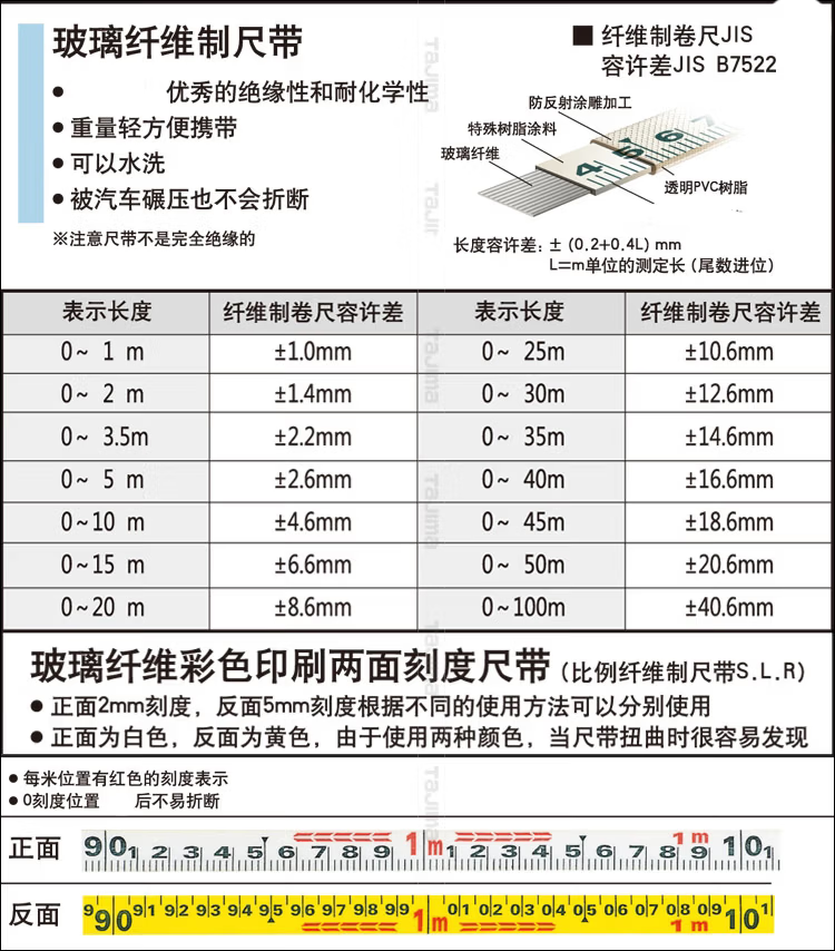 RSRDDY tape measure 10 meters 20 meters 50 meters soft tape Japanese fiber ruler shake engineering S-50U