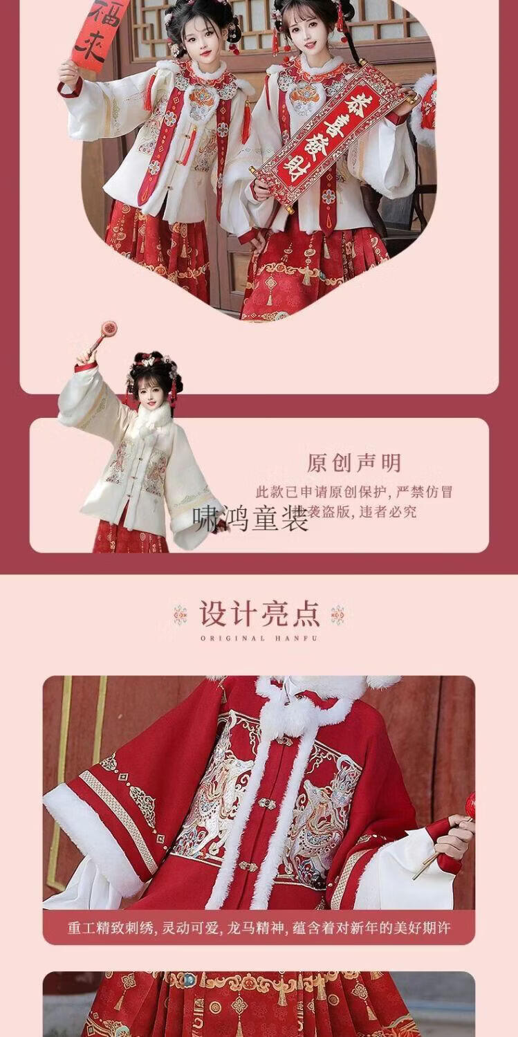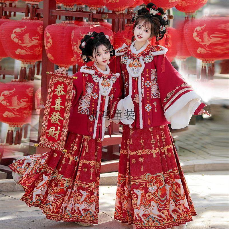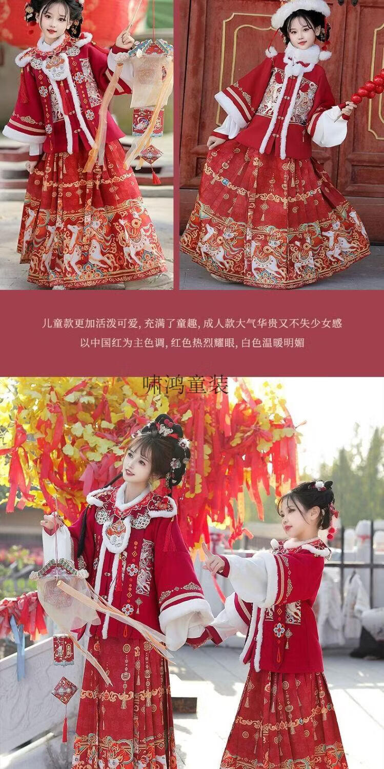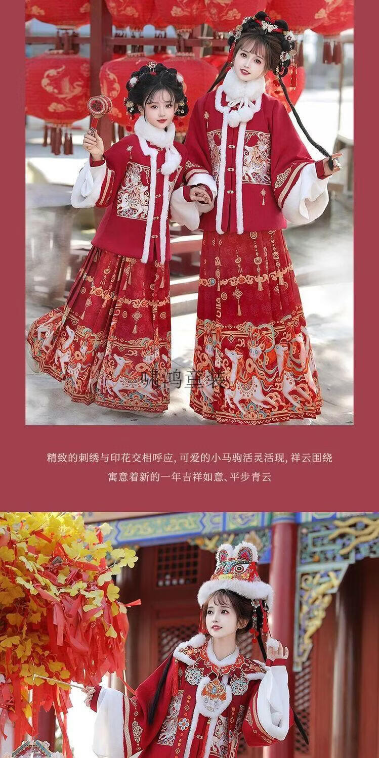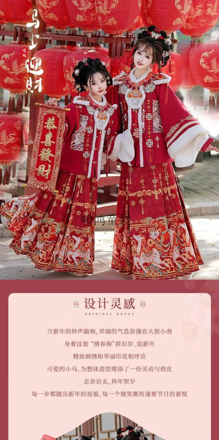Wooden wooden house original winter style parent-child clear-cut cloud shoulder red festive New Year's Hanfu for women with velvet and thickened heavy embroidery style red single-piece jacket for welcoming wealth 120