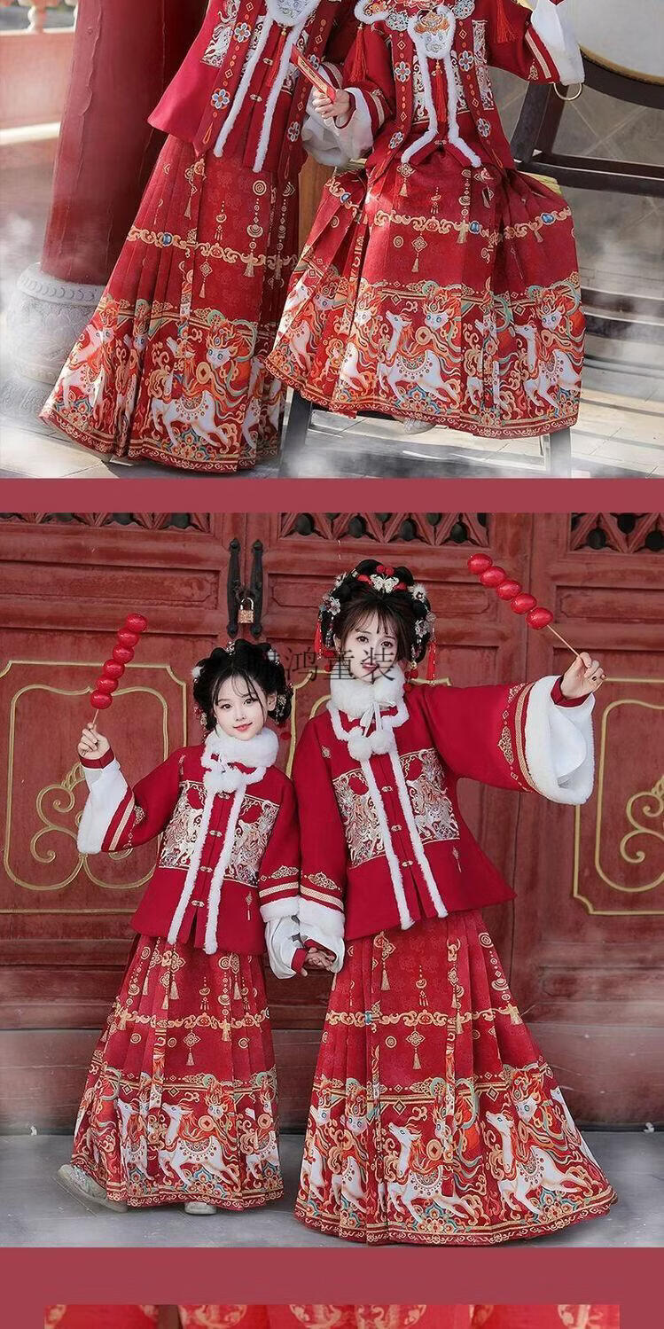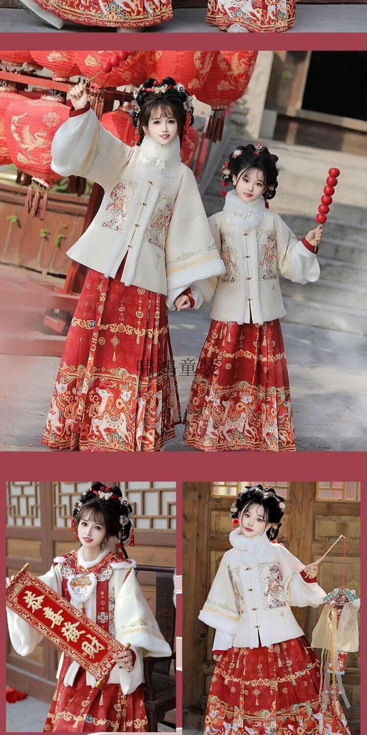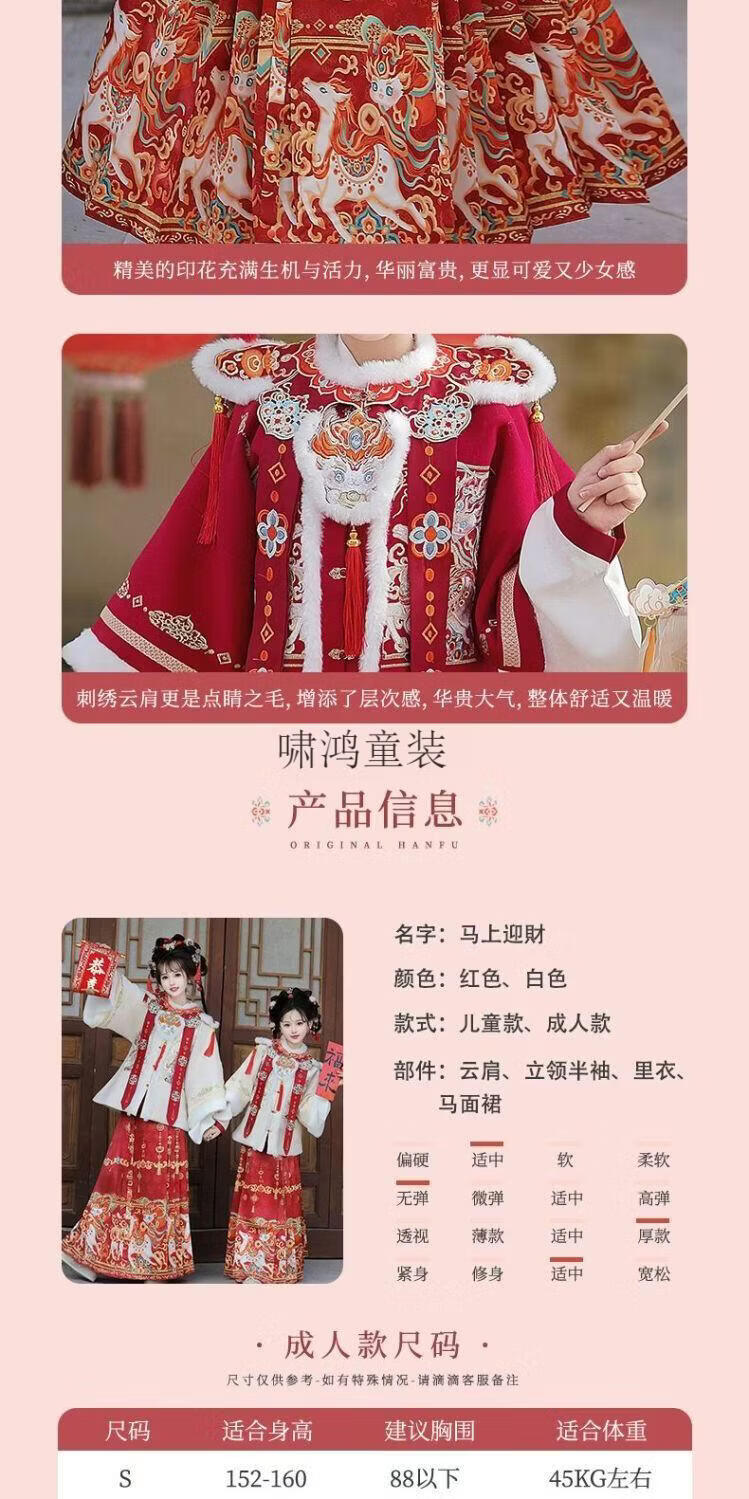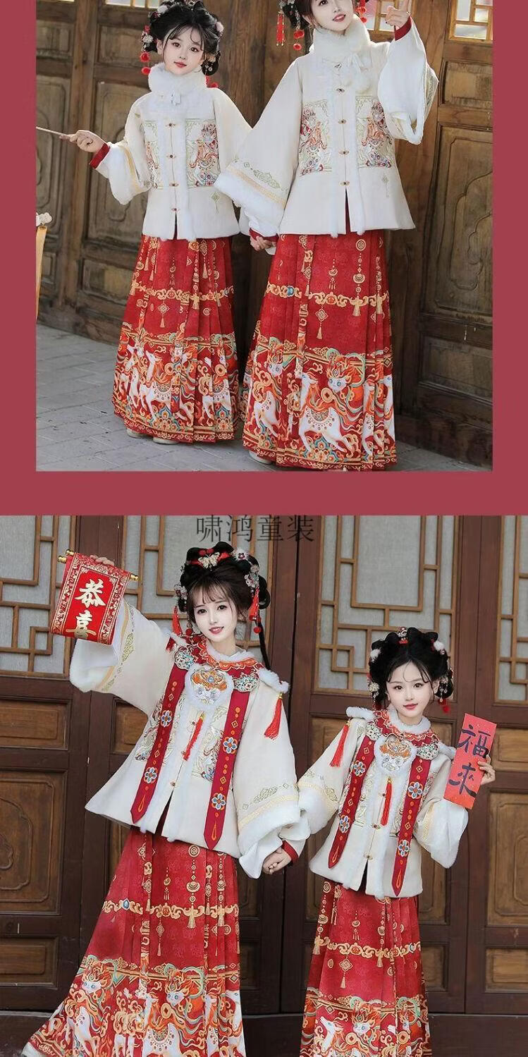 Wooden wooden house original winter style parent-child clear-cut cloud shoulder red festive New Year's Hanfu for women with velvet and thickened heavy embroidery style red single-piece jacket for welcoming wealth 120