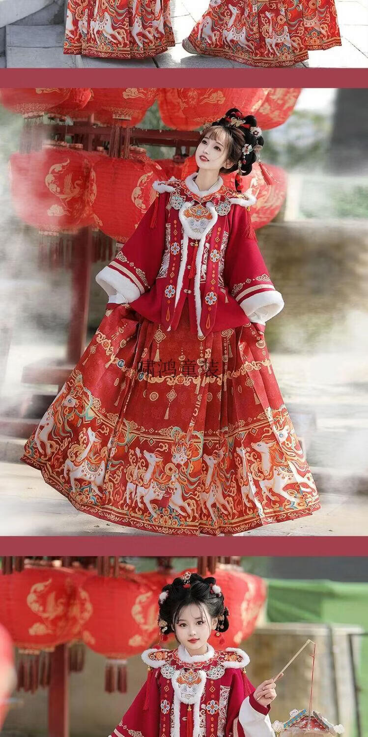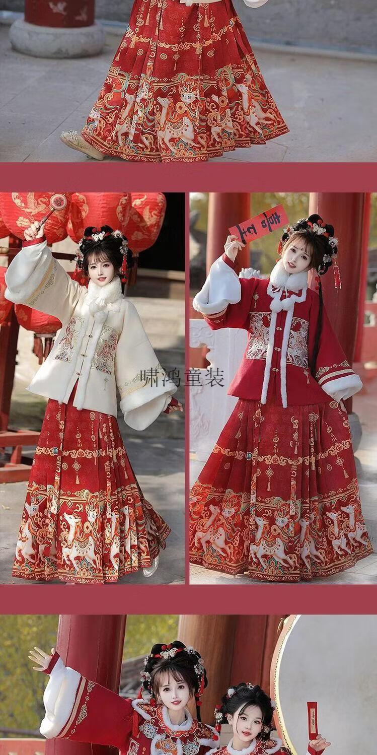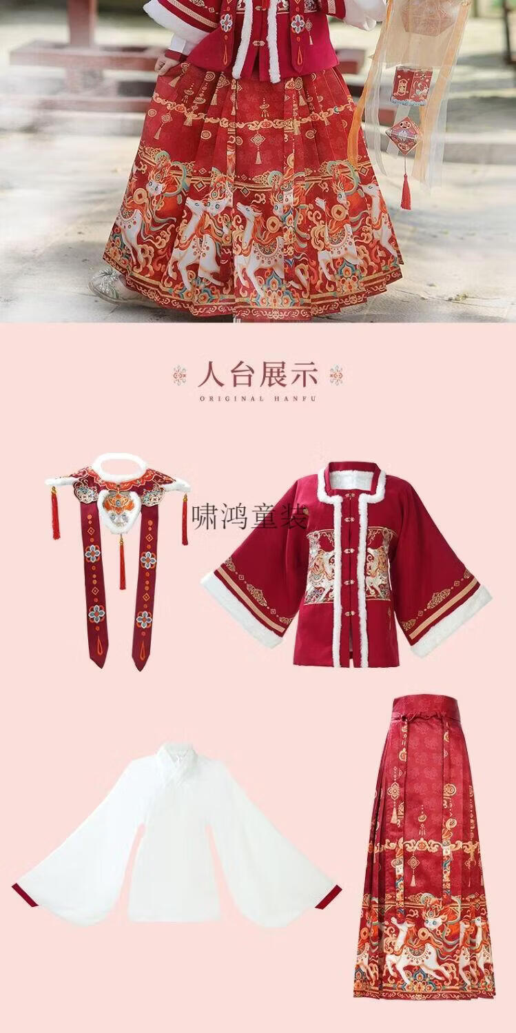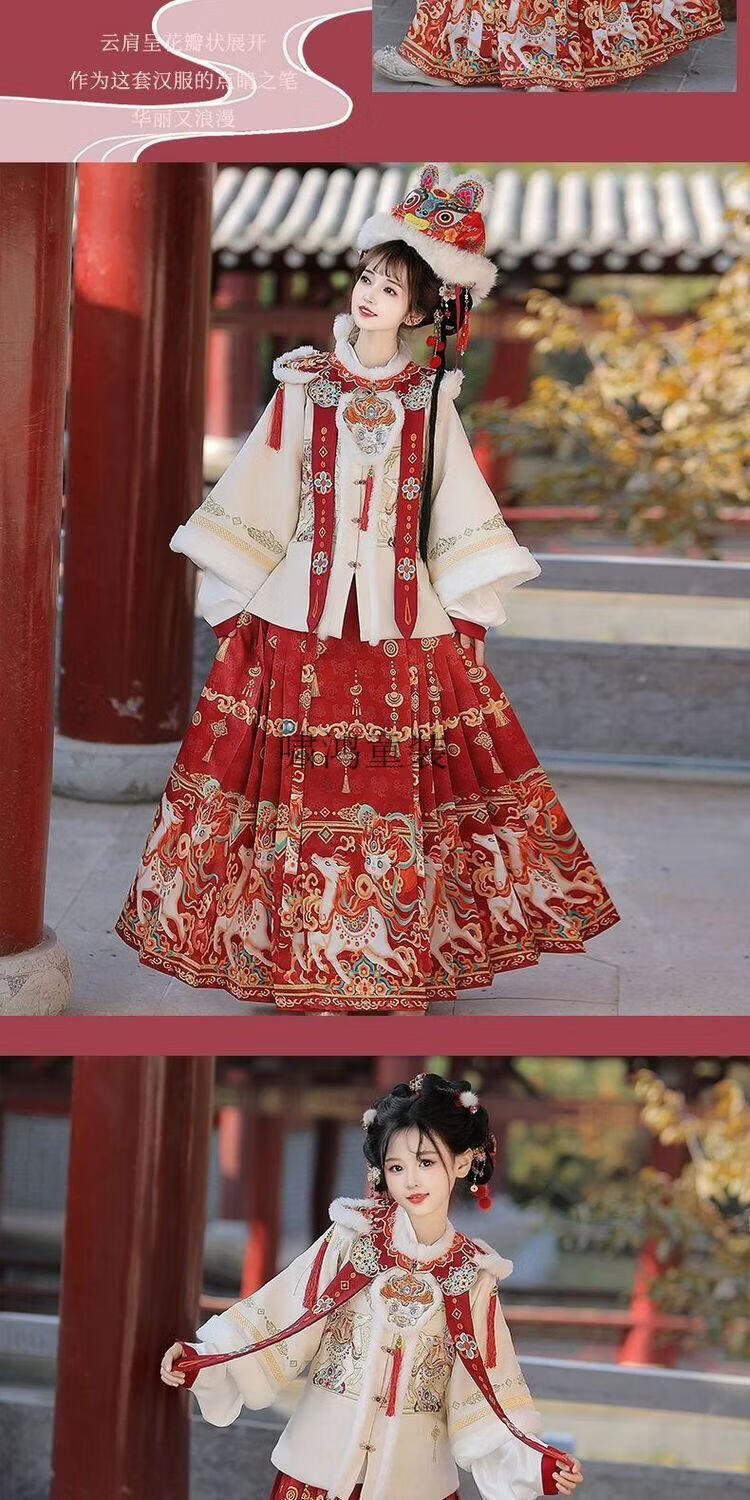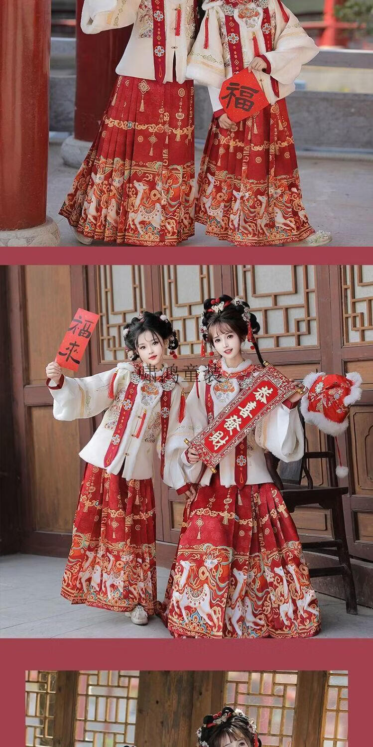 Wooden wooden house original winter style parent-child clear-cut cloud shoulder red festive New Year's Hanfu for women with velvet and thickened heavy embroidery style red single-piece jacket for welcoming wealth 120