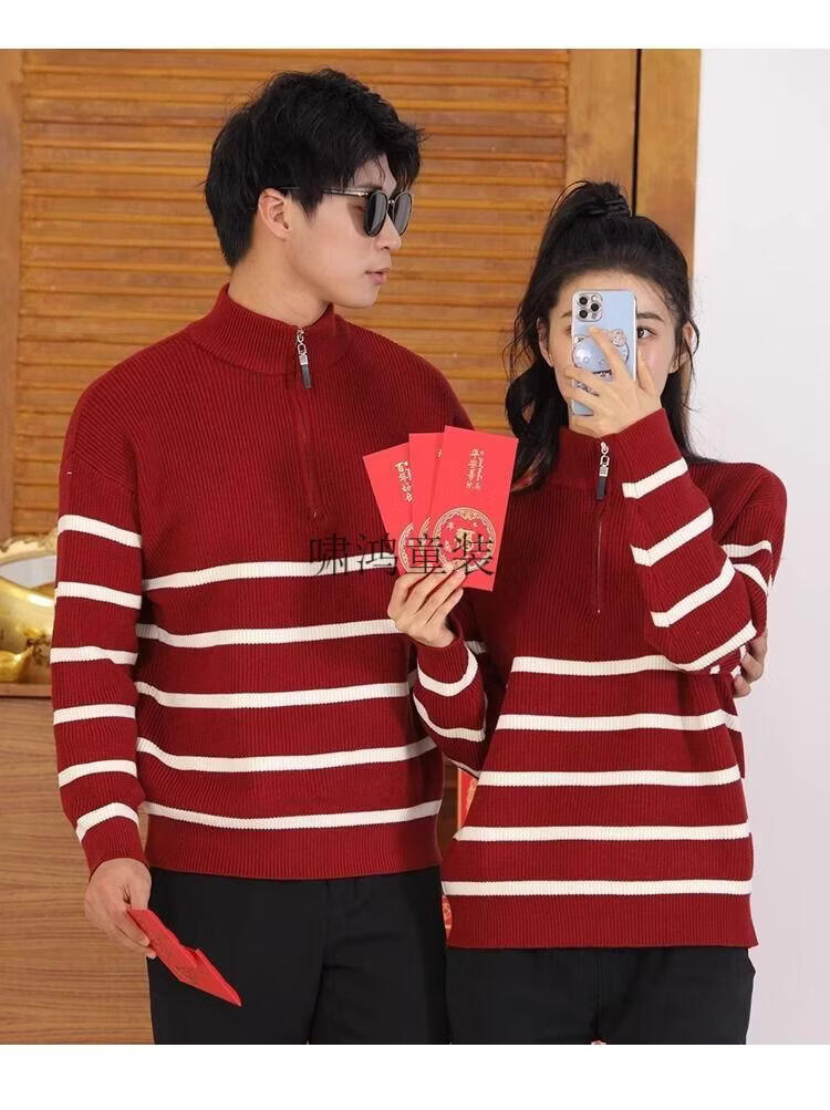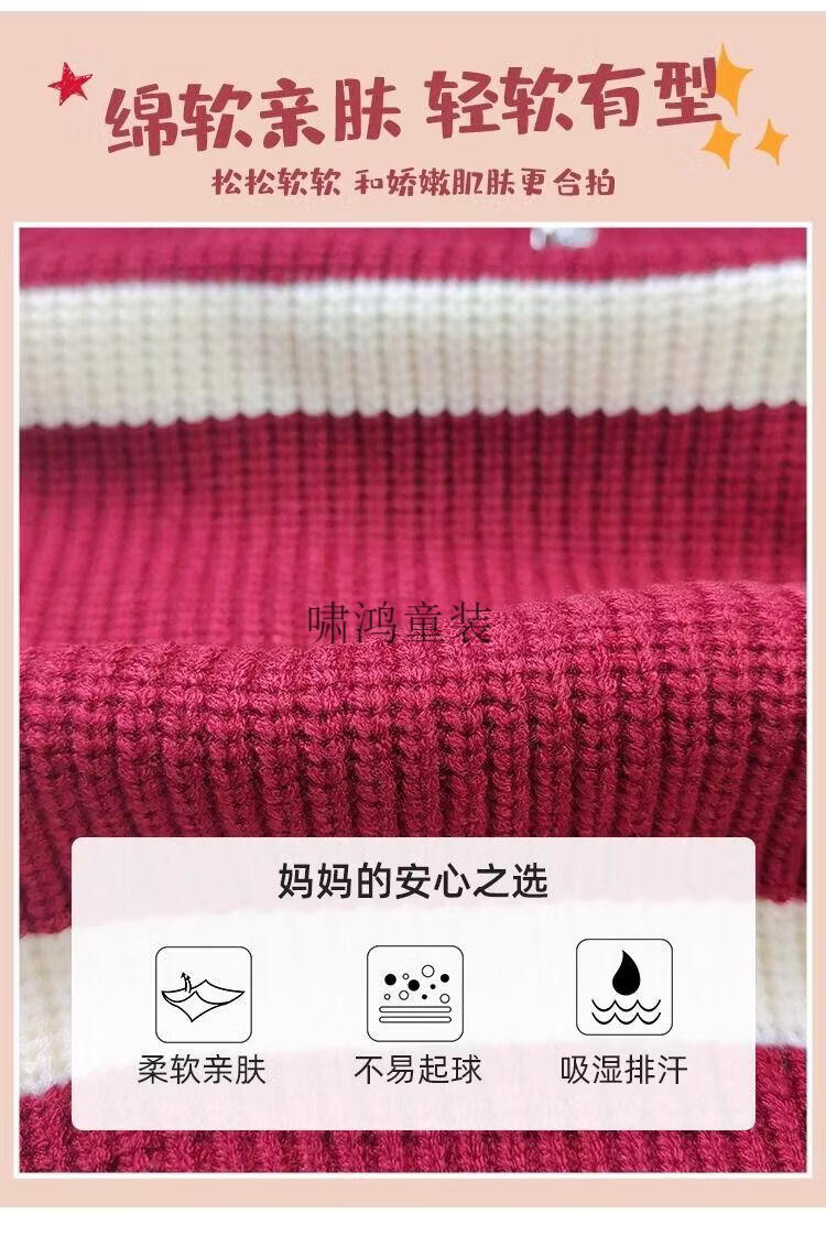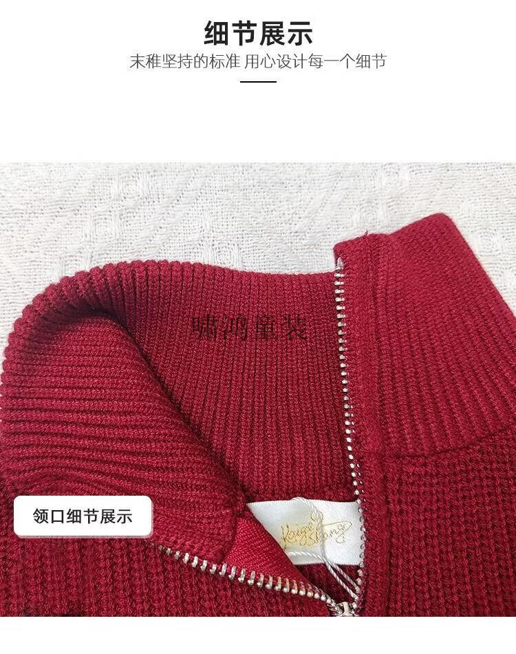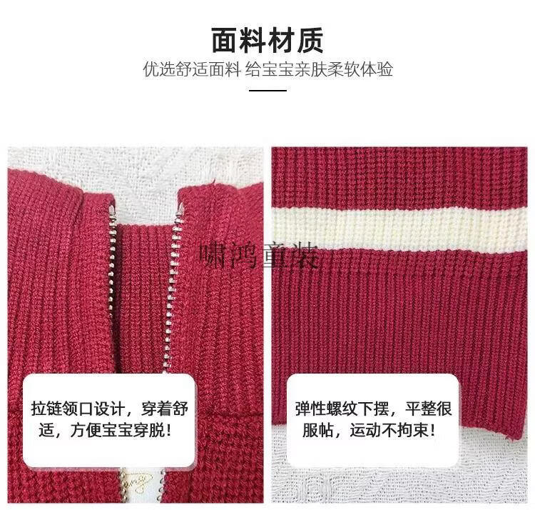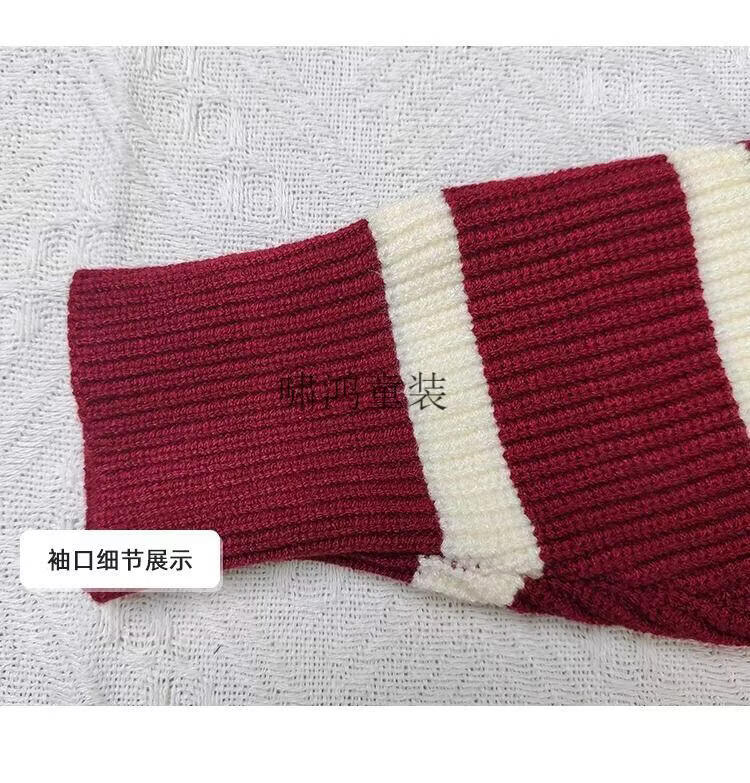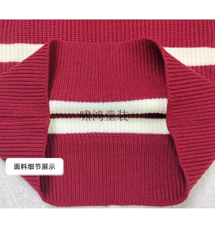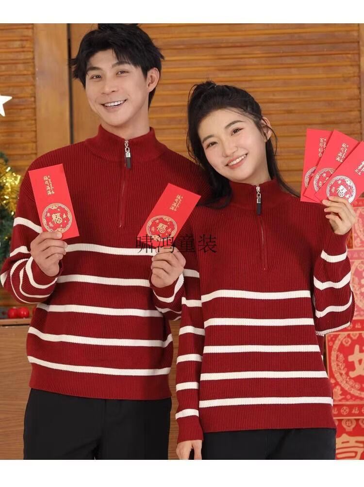 Wooden house parent-child clothing for a family of three and four, striped half-zip autumn, winter and Spring Festival mother-daughter clothing, mother-child knitted sweater, New Year sweater, burgundy sweater 140 children's clothing