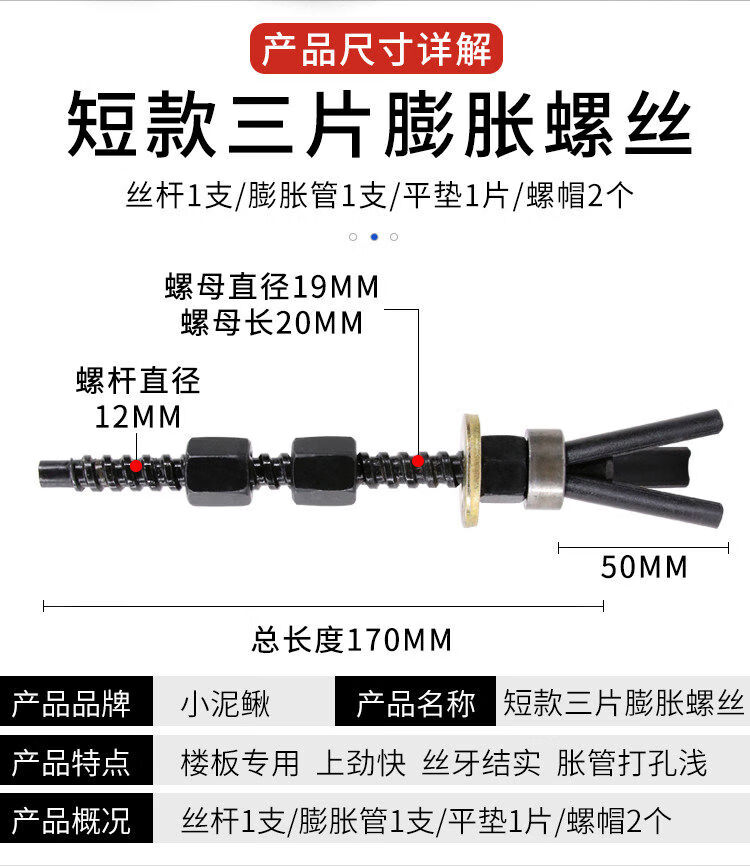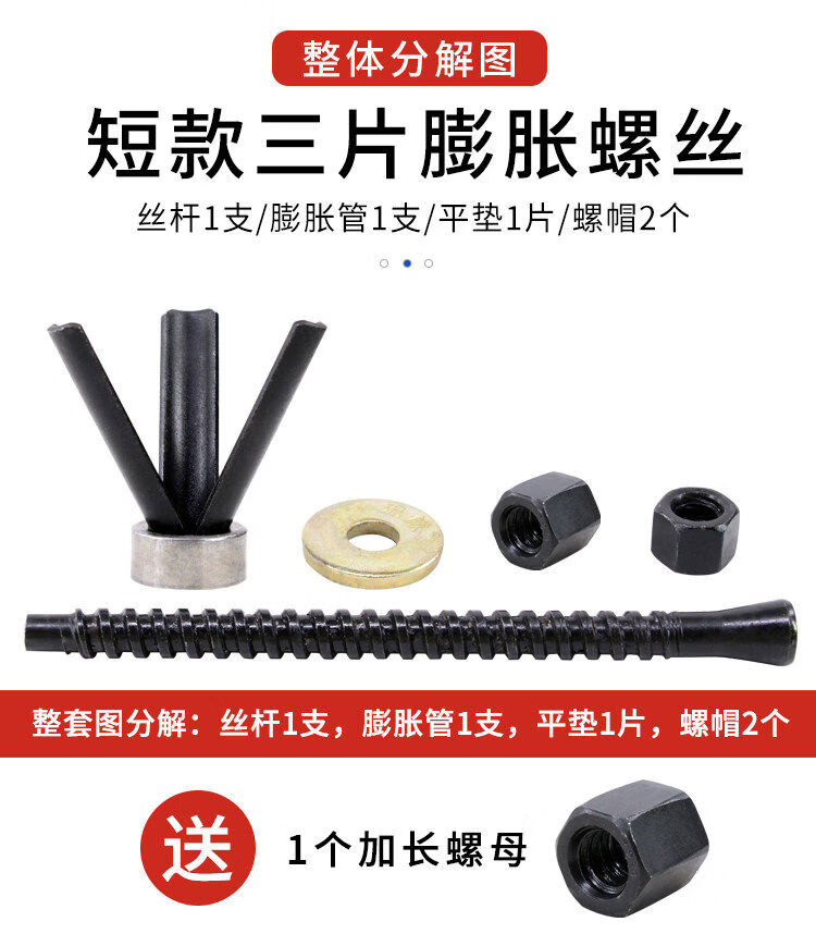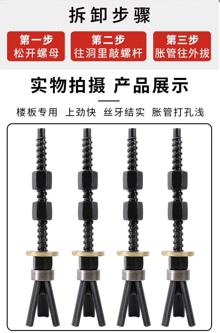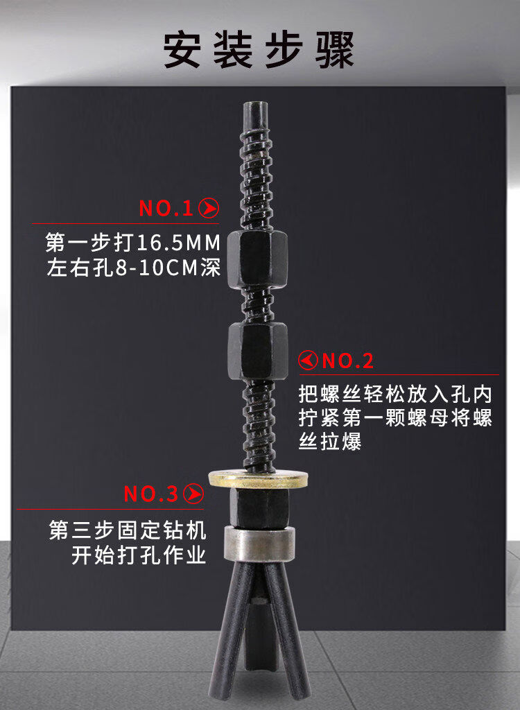 Water drill machine with short three-piece reusable expansion screws and thick wire pipe bolt brackets for fixing repeated floor slabs. Short three-piece thick wire 5 pieces + 5 expansion tubes.