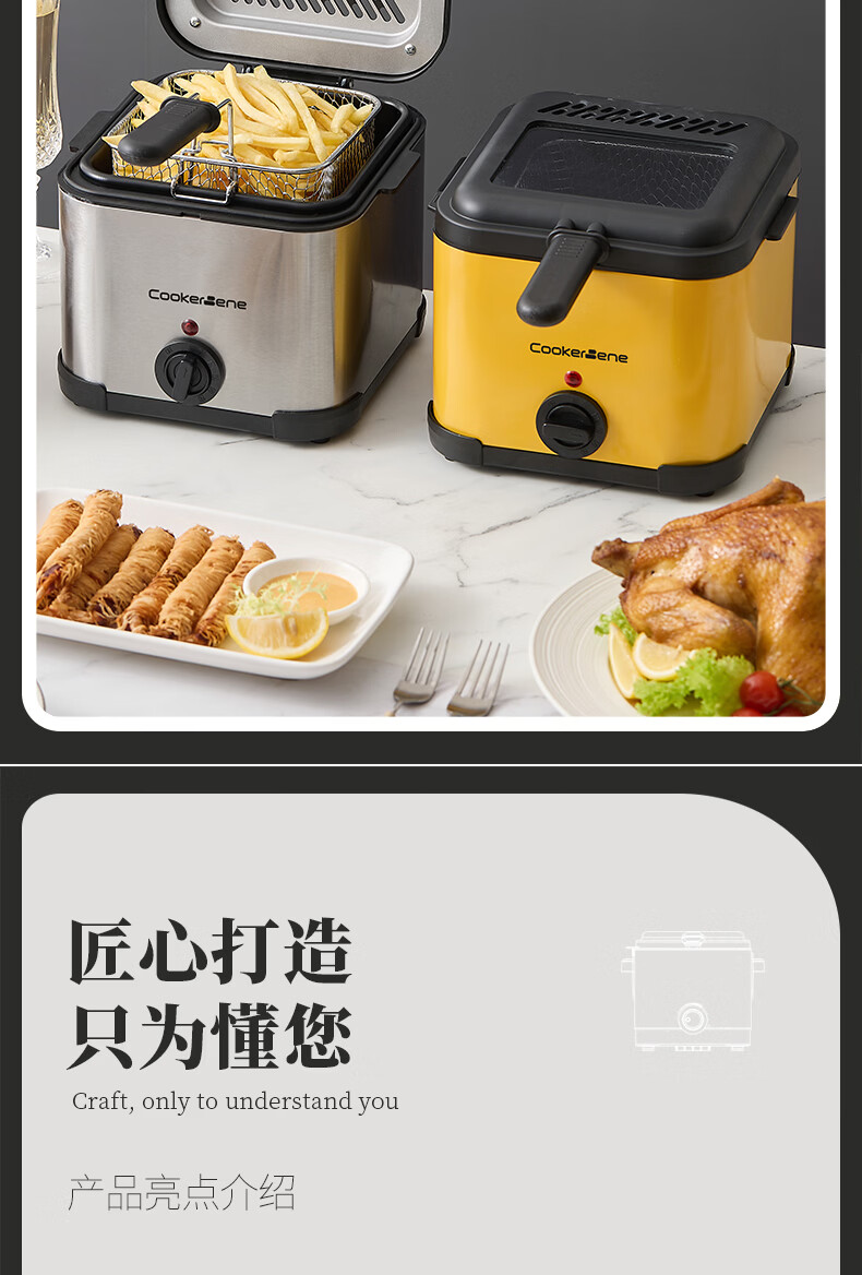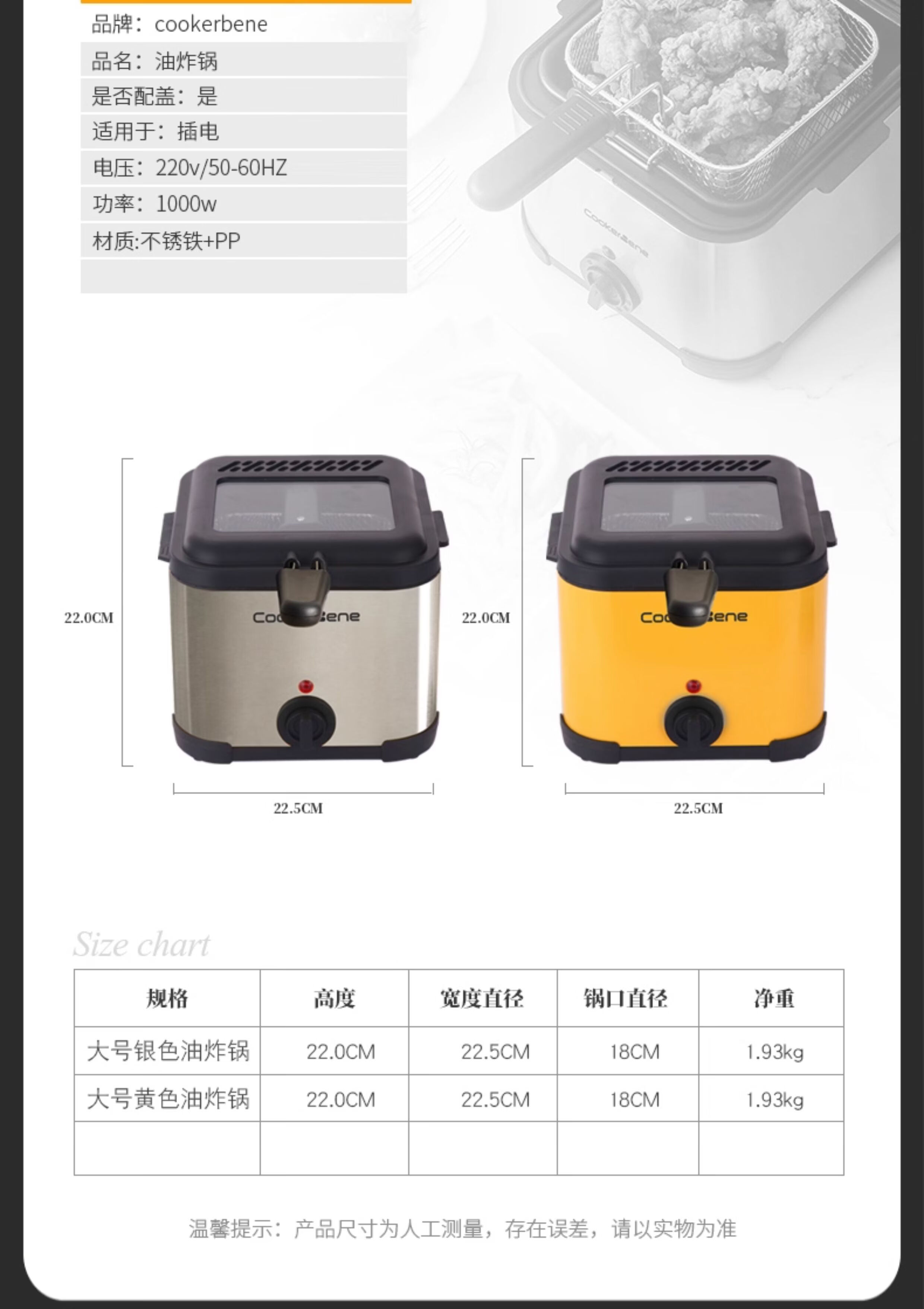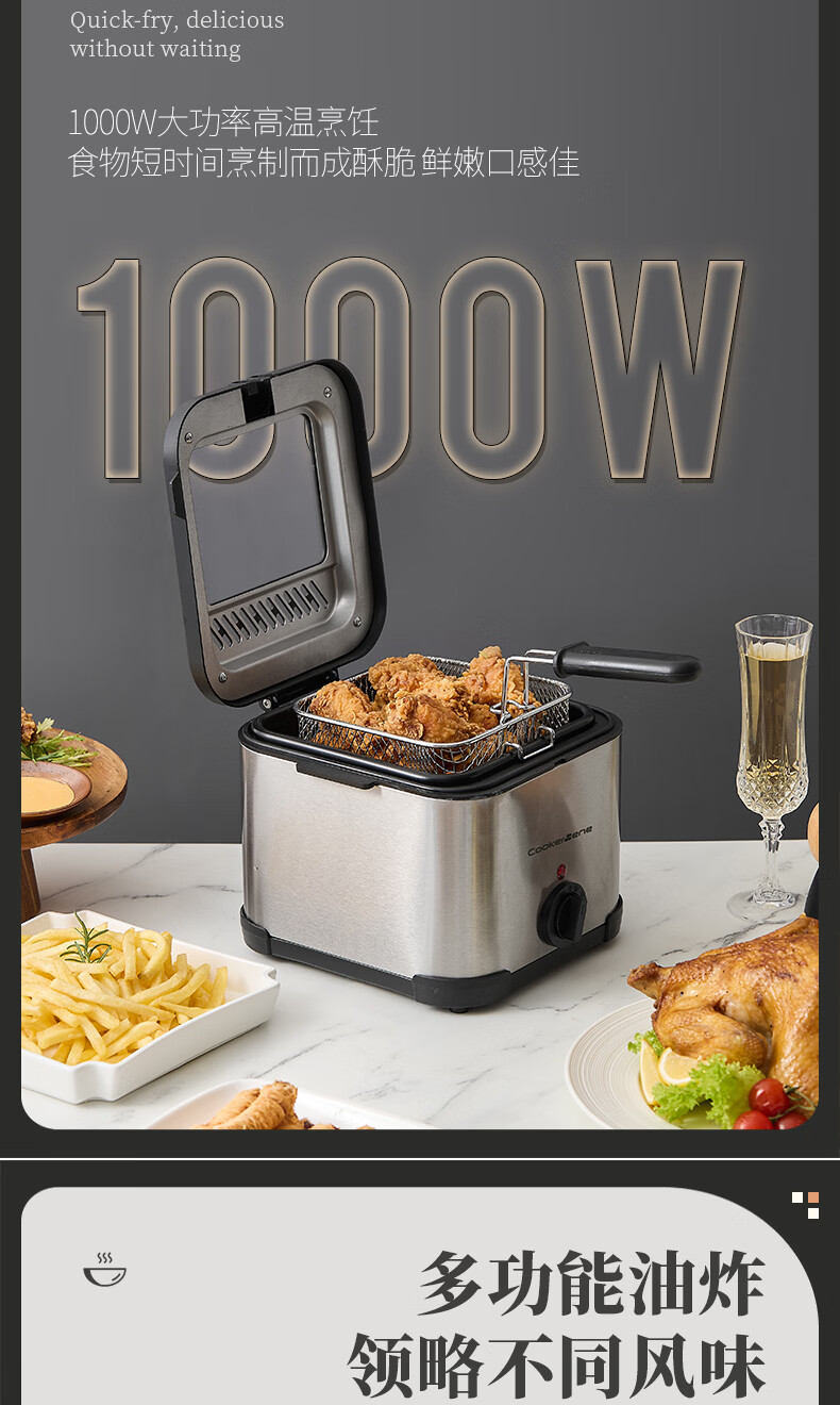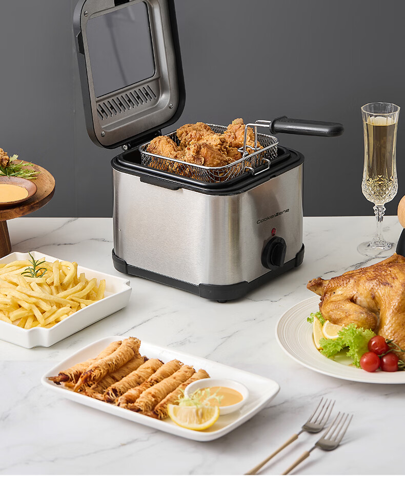 Yingtang Household Fryer Small Electric Fryer Multi-Function with Strainer French Fries and Skewers 1cm Silver