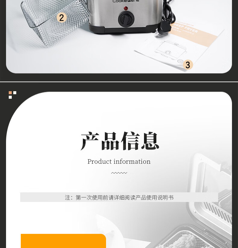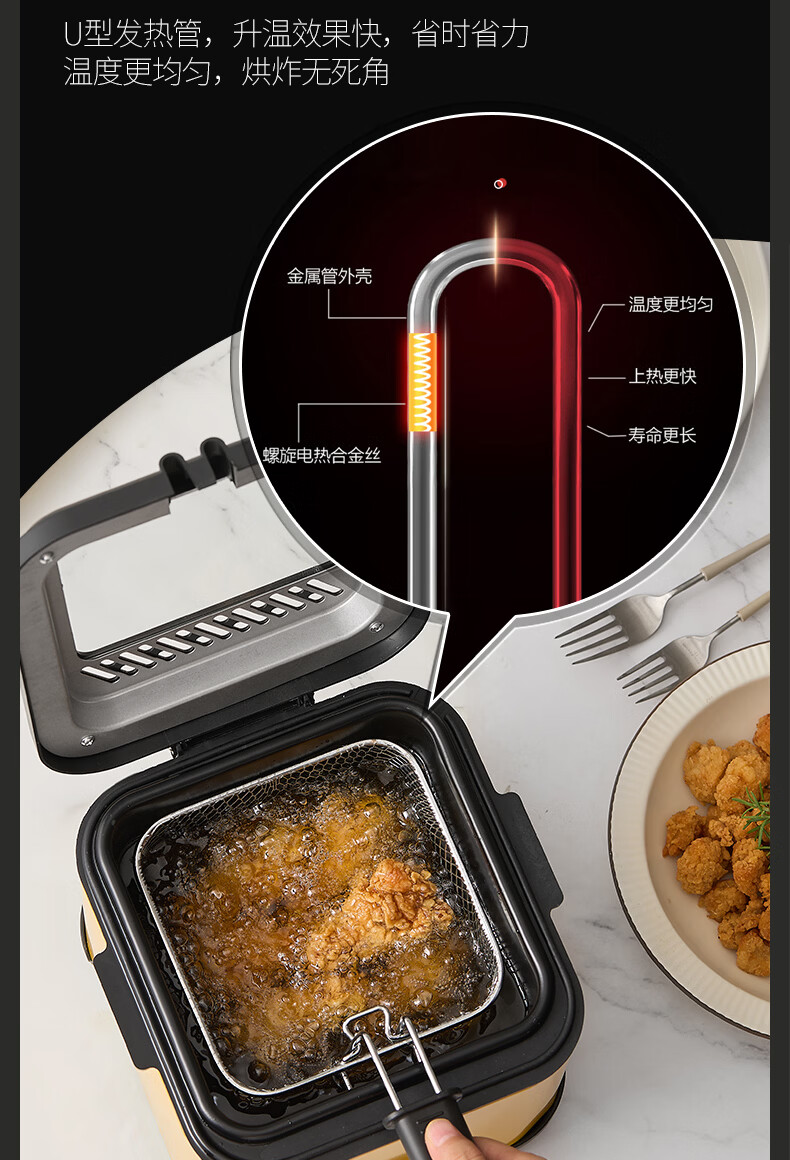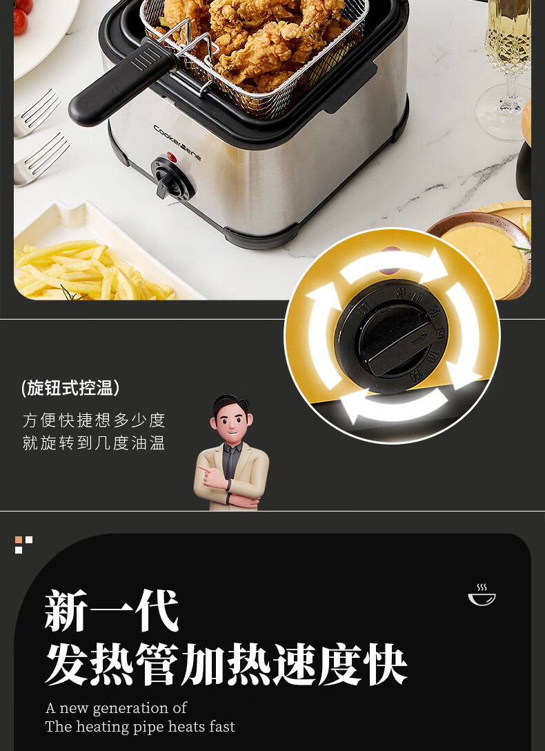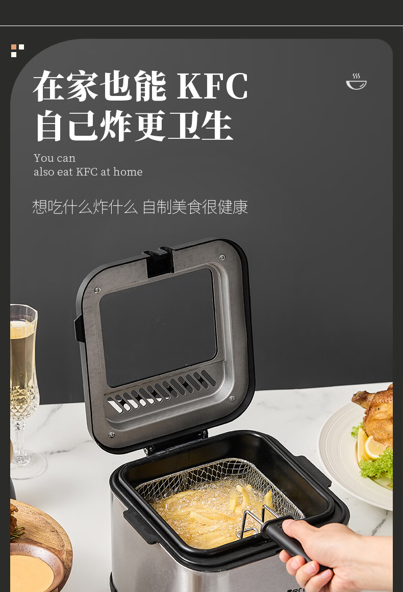 Yingtang Household Fryer Small Electric Fryer Multi-Function with Strainer French Fries and Skewers 1cm Silver