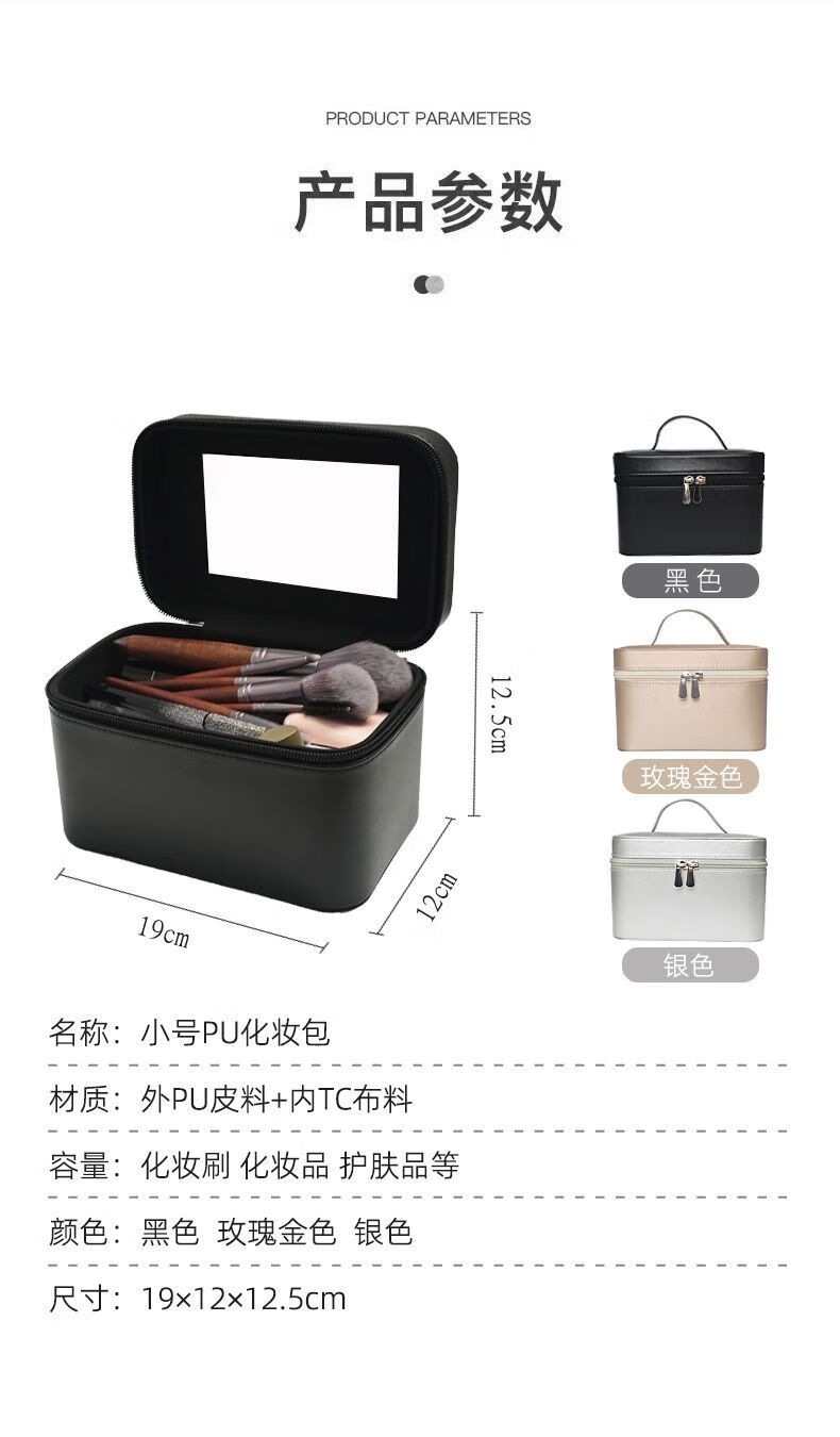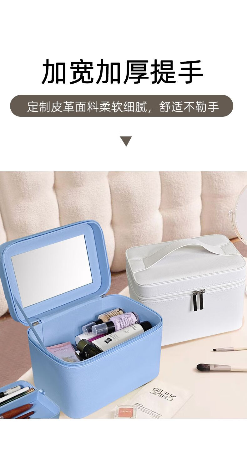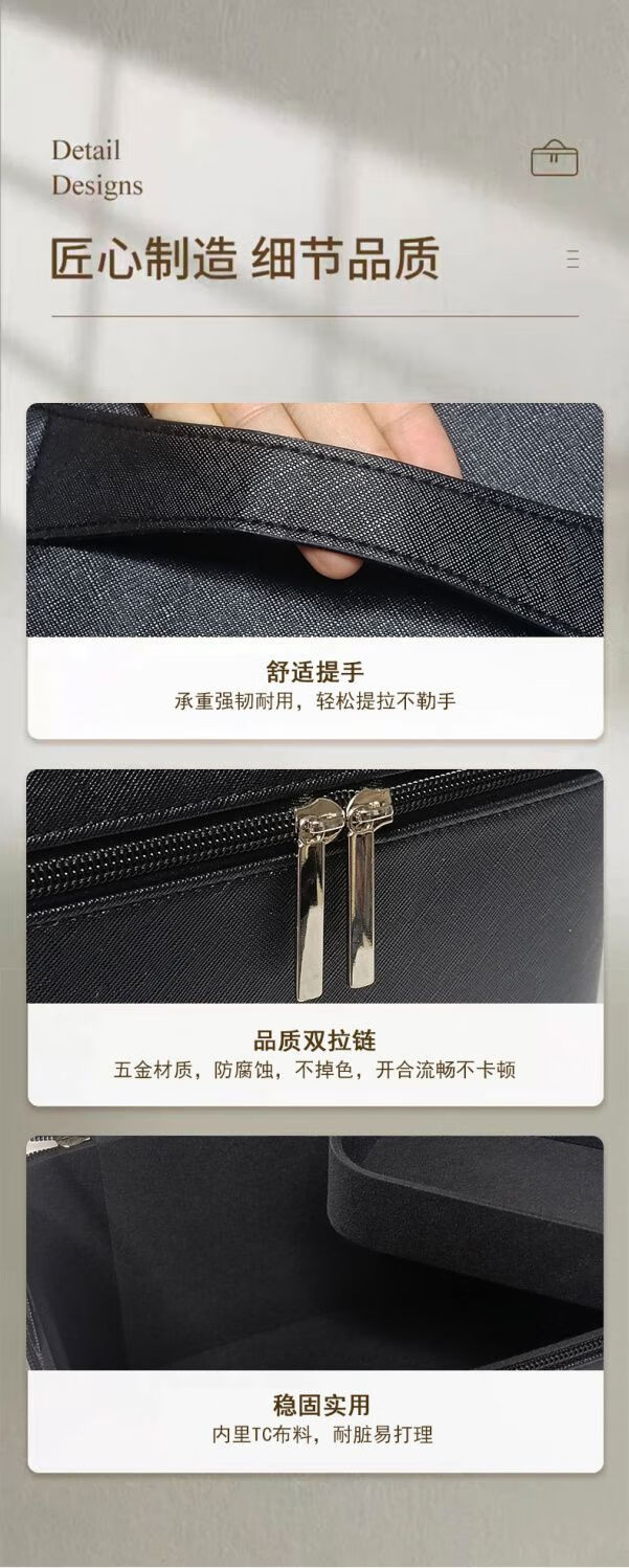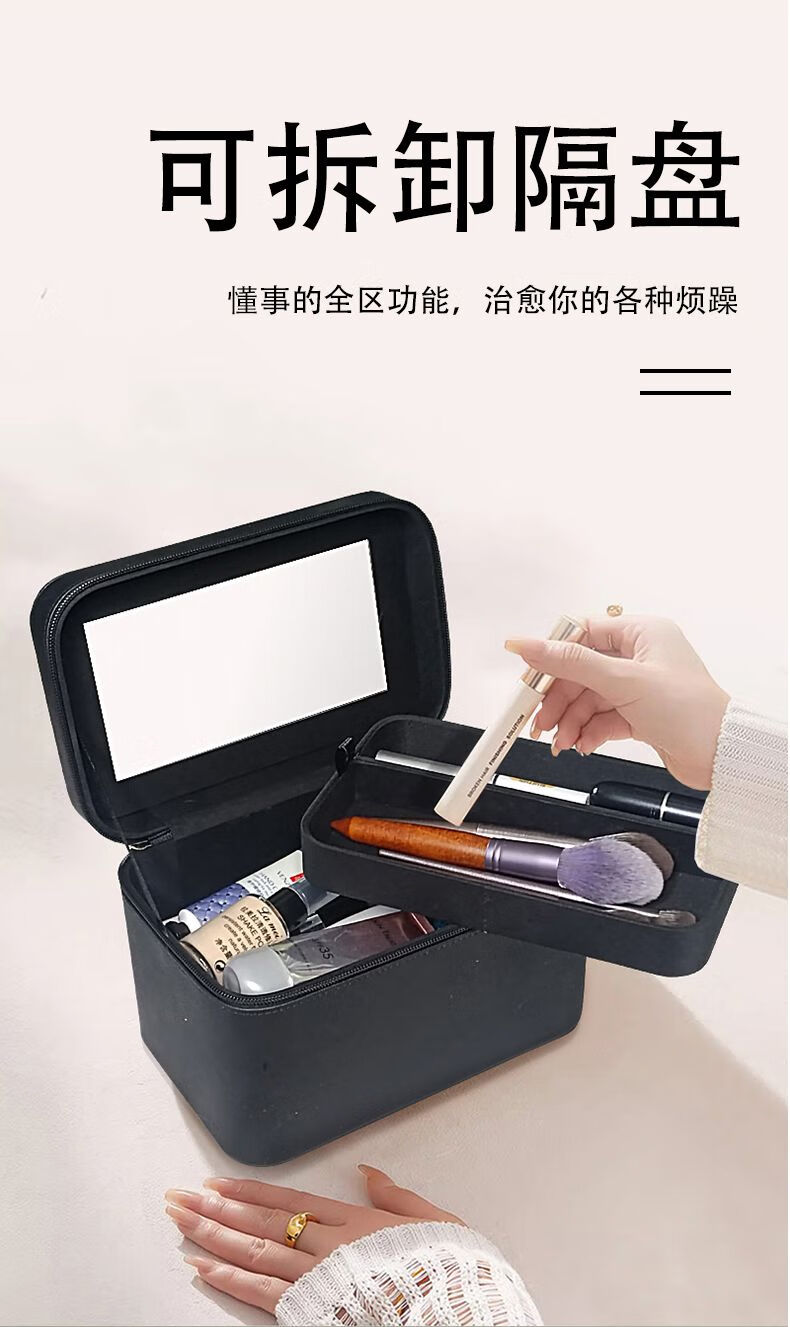 Cosmetic case with multifunctional capacity, simple and portable double-layered hand cosmetic bag, Internet celebrity cosmetics storage box with mirror, black cross pattern with partition mirror