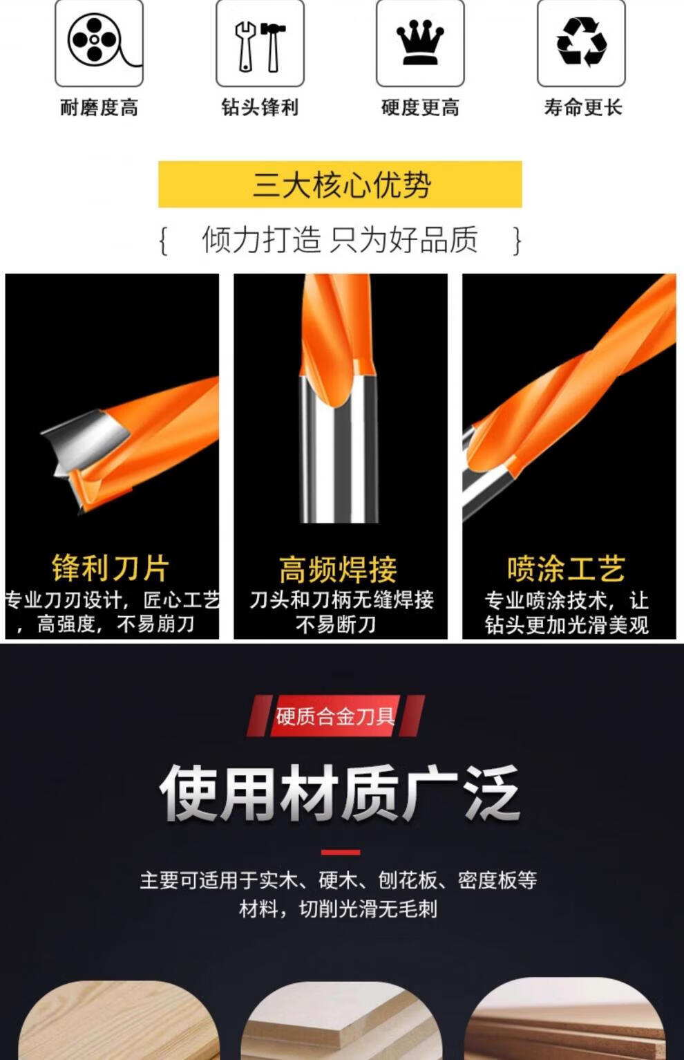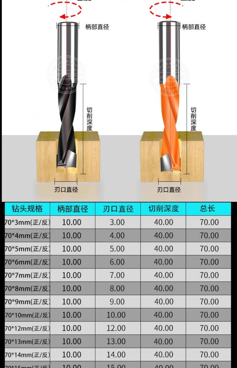 Yufu woodworking row drill three-in-one drill split crown drill CNC row drill six-sided drill hinge drill bit 35 opening drill split drill-70*26mm two pack