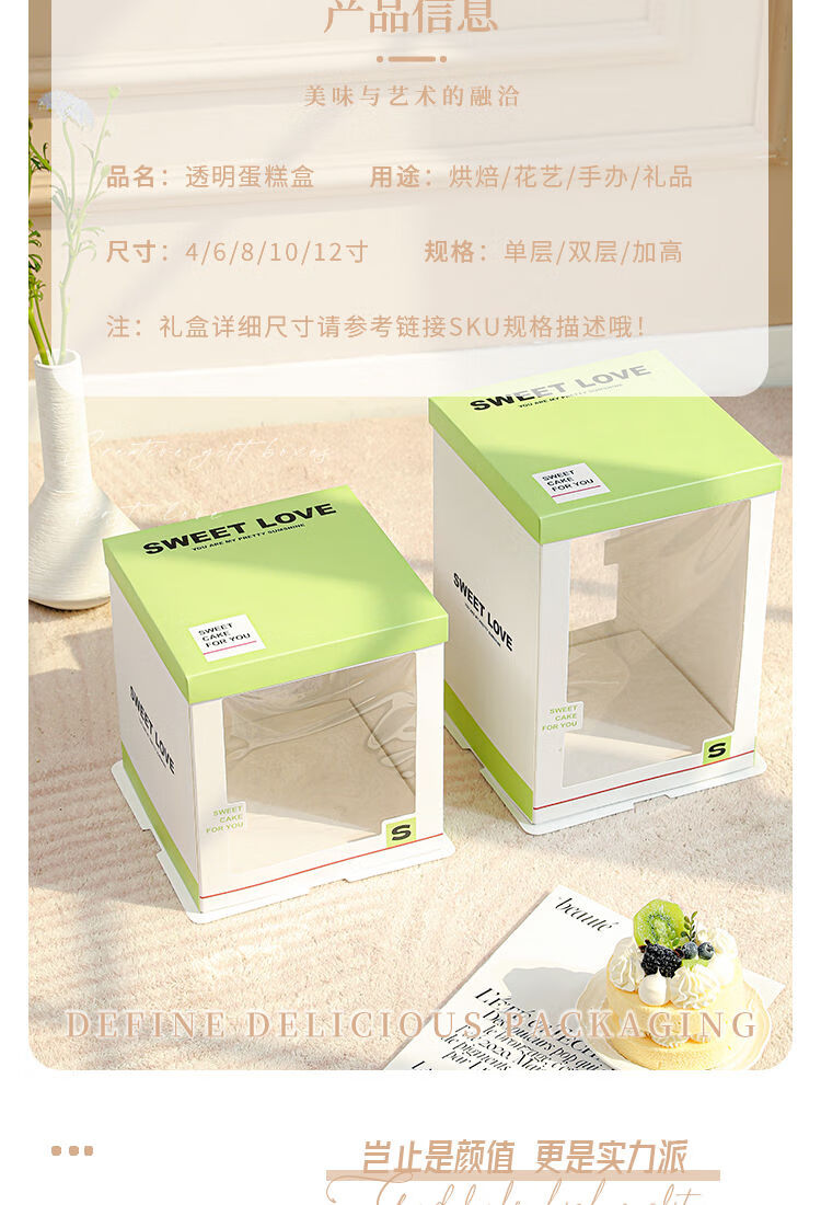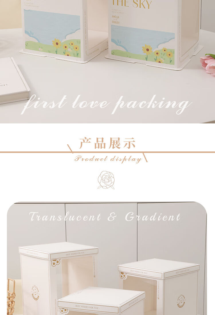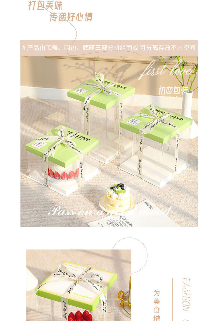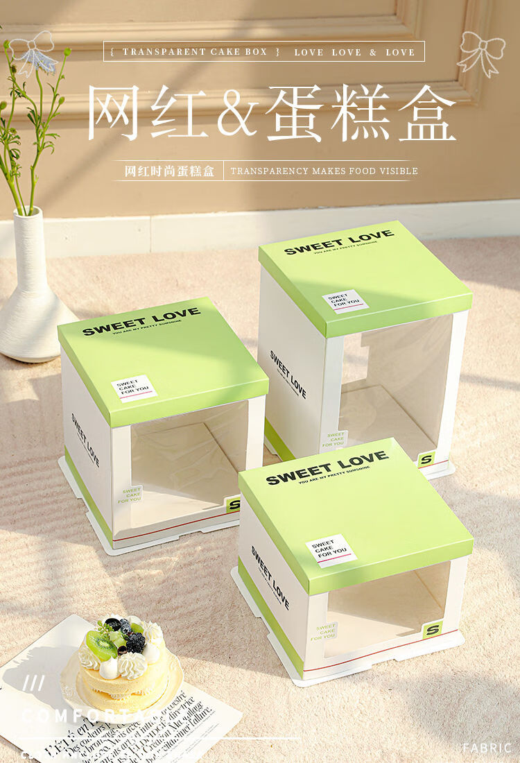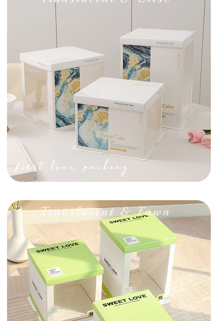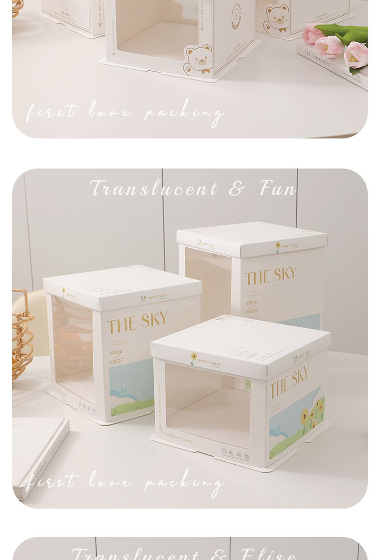 Wing Fantasy 50 sets of transparent window birthday cake box packaging box 6 six 8 eight 10 ten 12 inch double-layer portable double-layer portable window + stars 12-inch double layer 50 sets 34x34x26