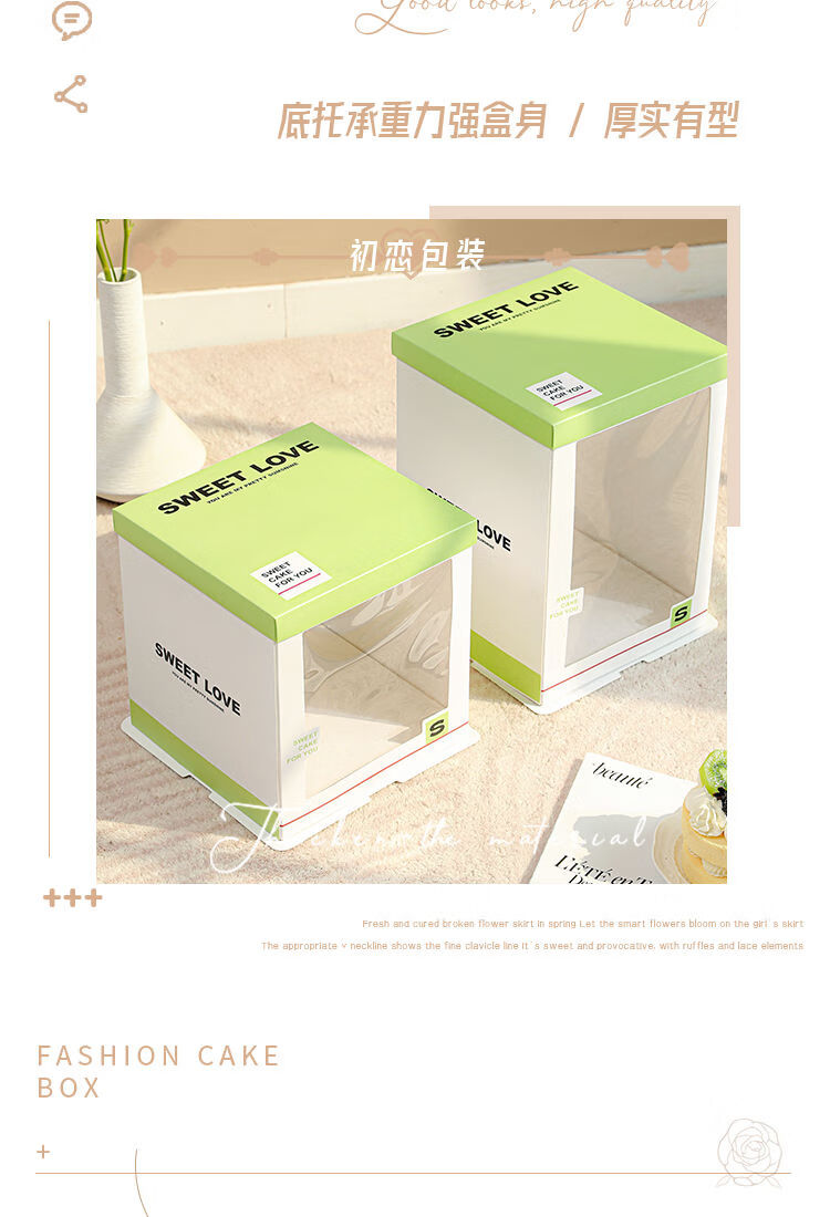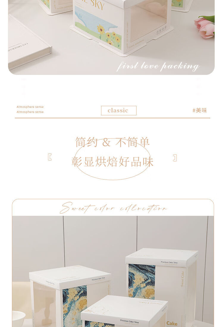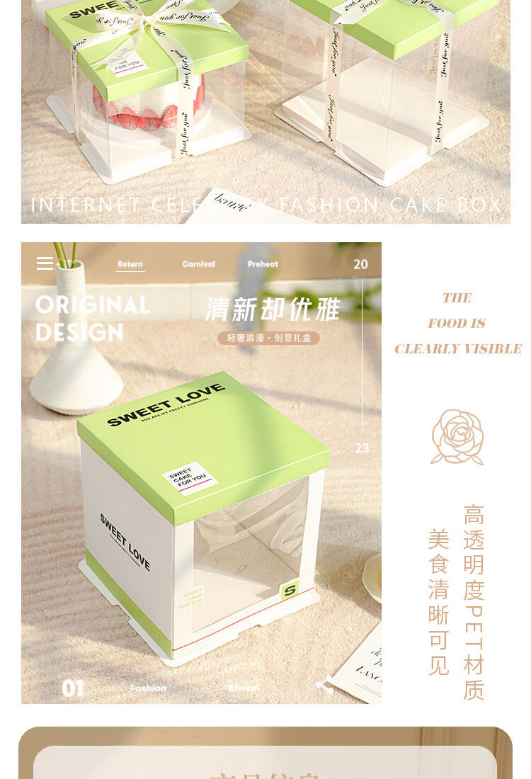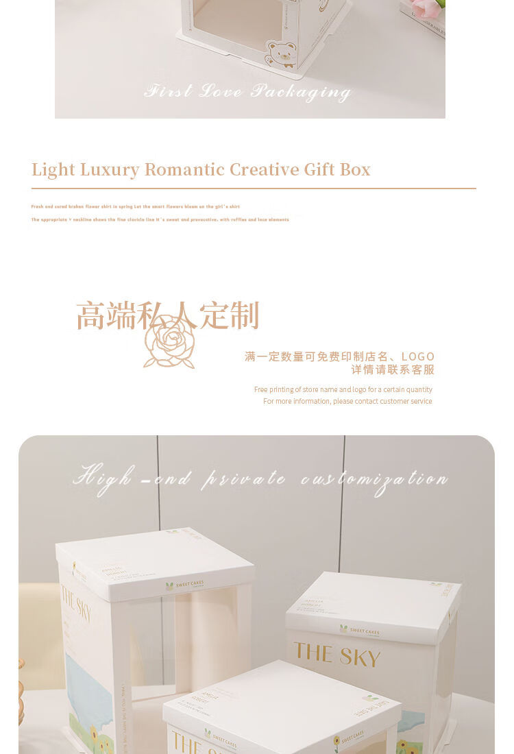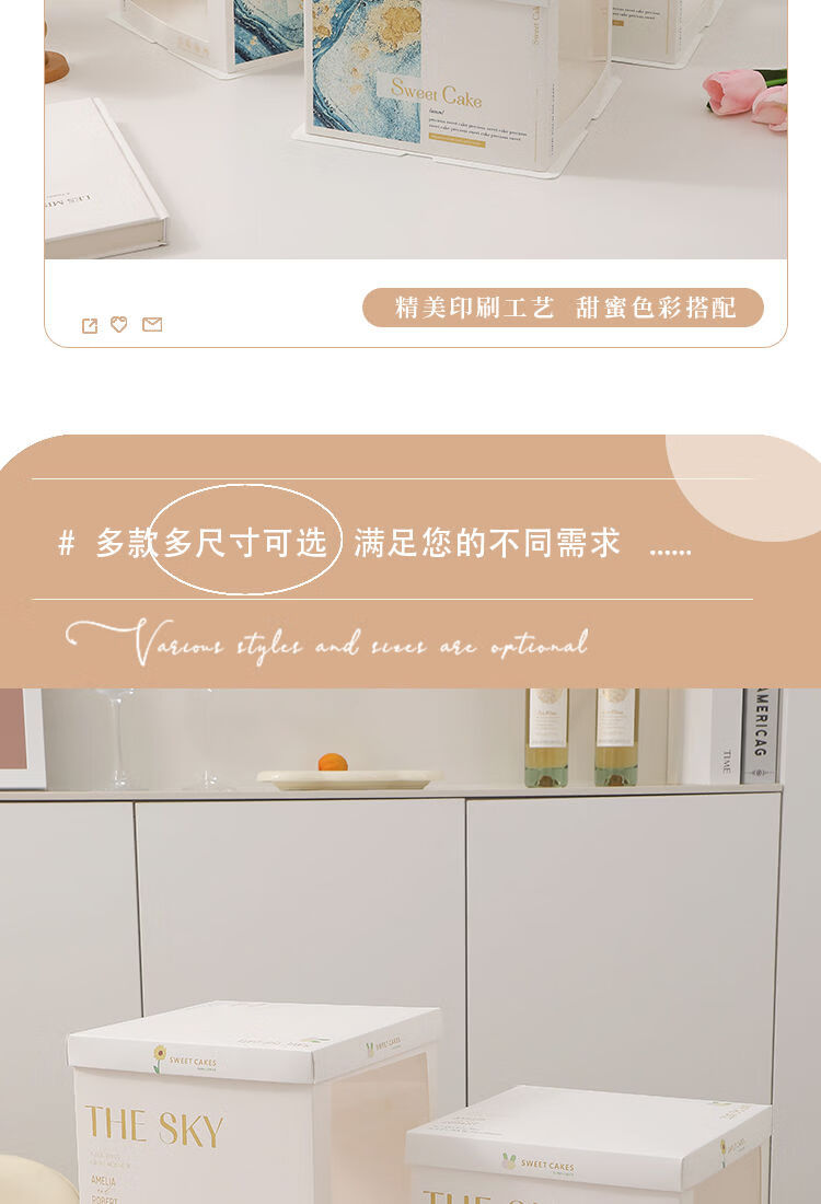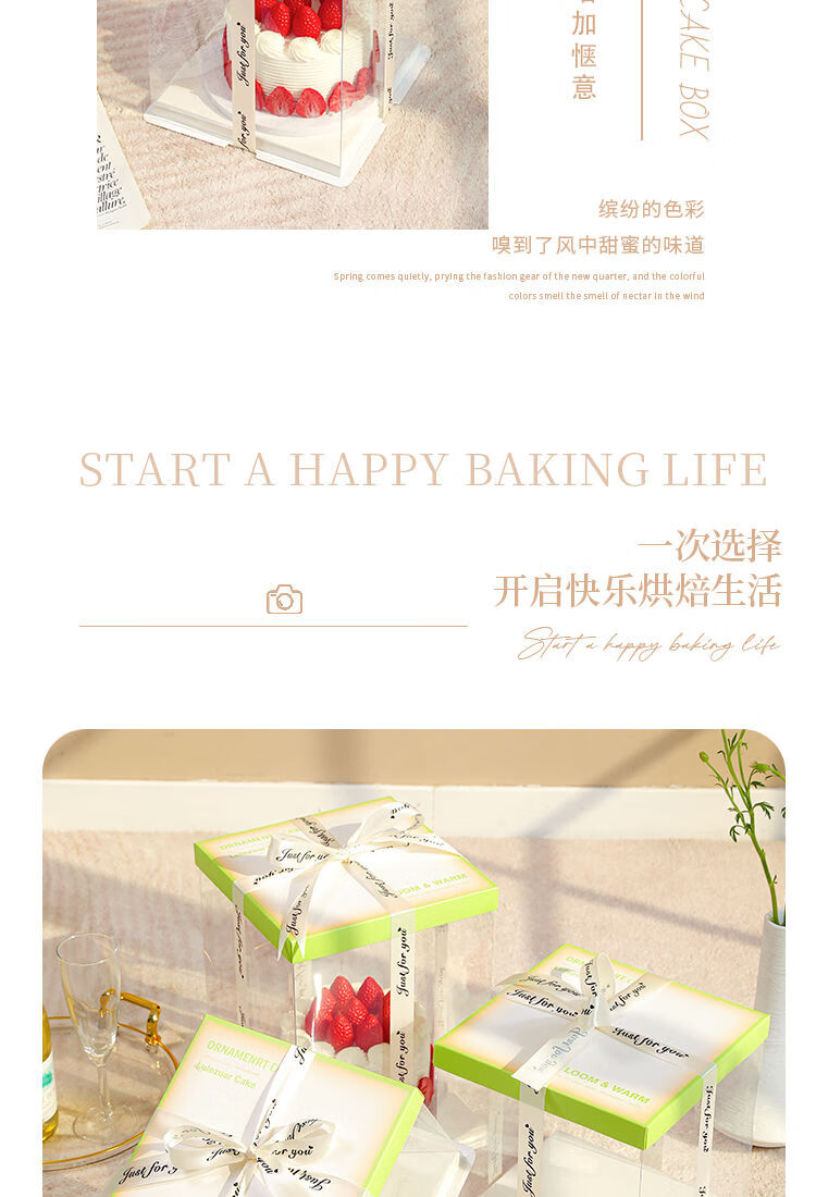 Wing Fantasy 50 sets of transparent window birthday cake box packaging box 6 six 8 eight 10 ten 12 inch double-layer portable double-layer portable window + stars 12-inch double layer 50 sets 34x34x26