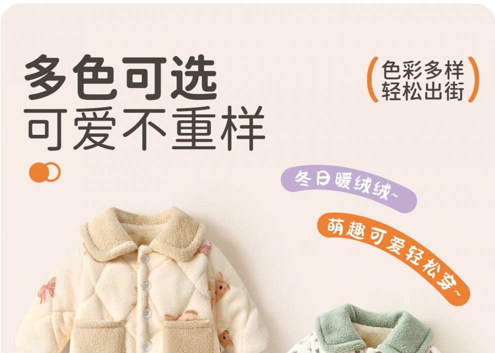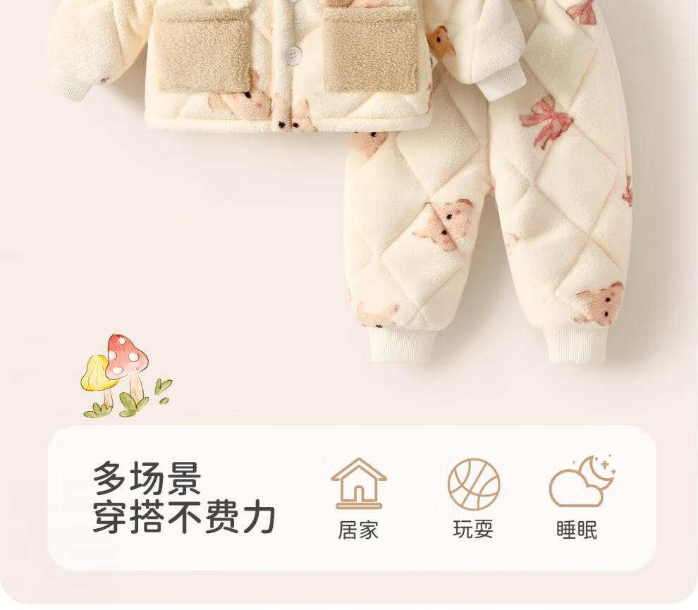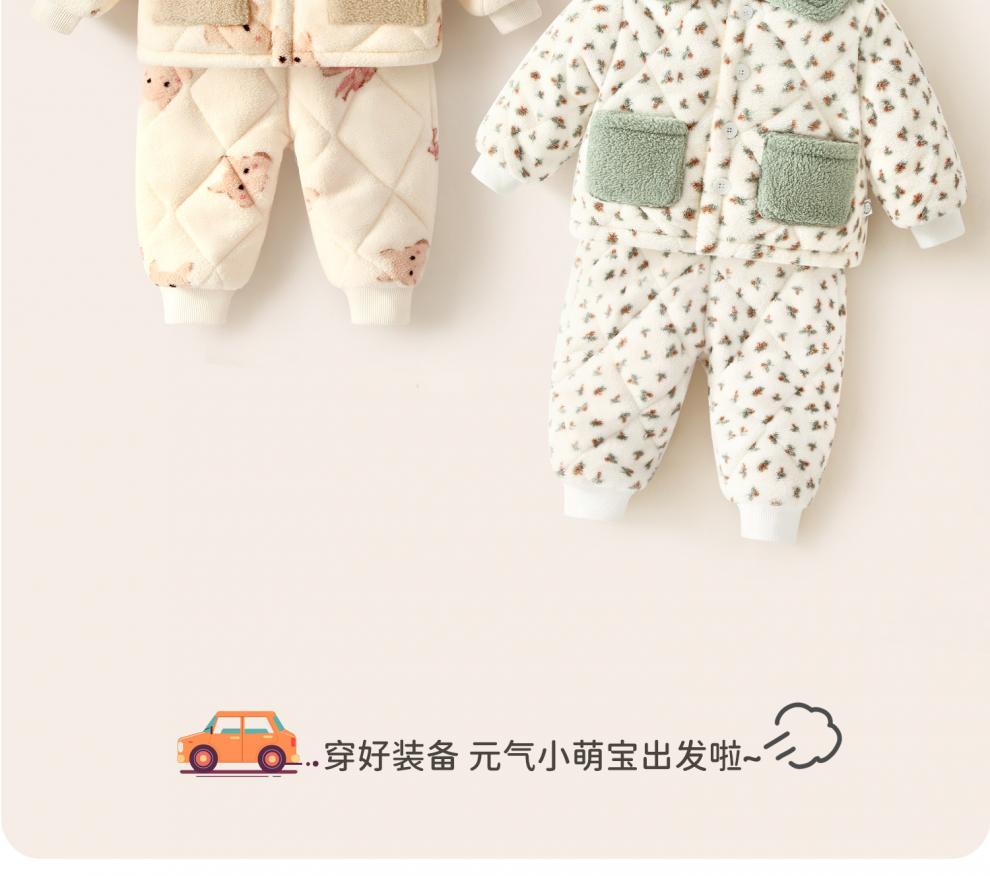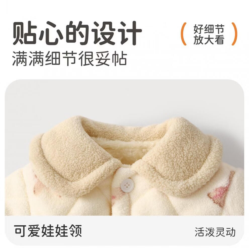 Huanmi Le Girls' Warm Clothes Set Baby Winter Plush Thickened Set Baby Autumn and Winter Long Sleeve Jacket Newborn Pajamas Butterfly Bunny 90 cm