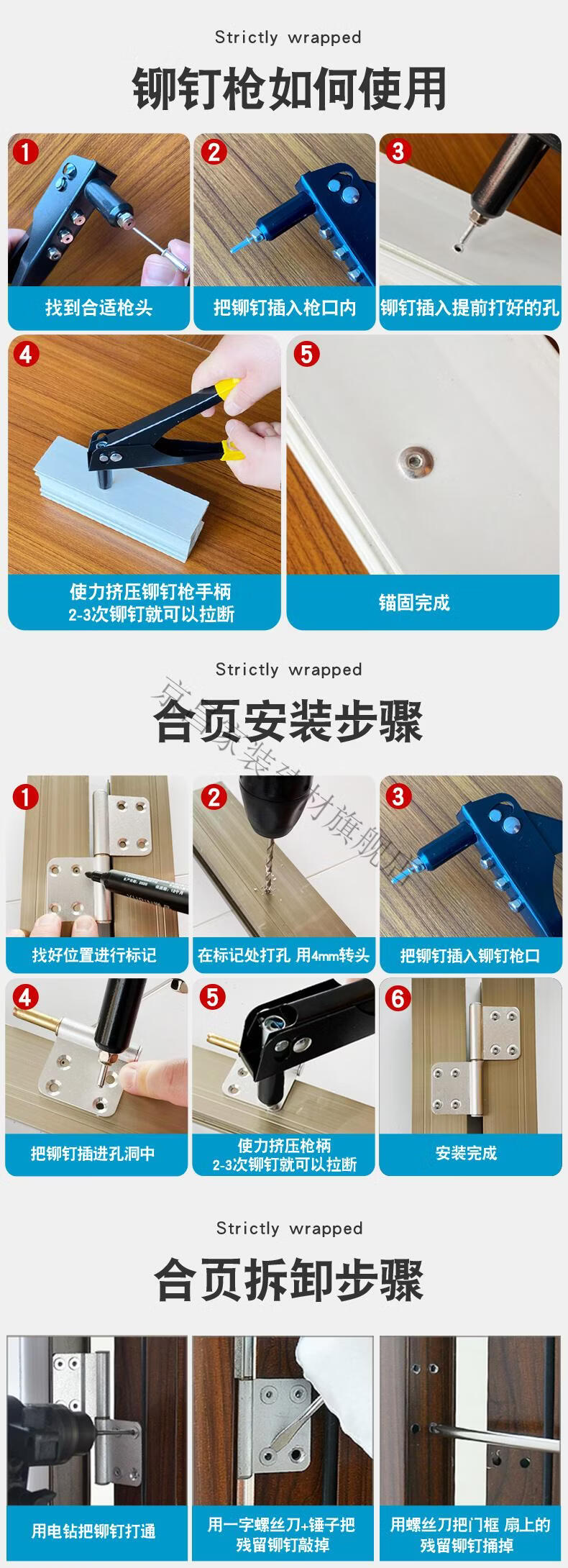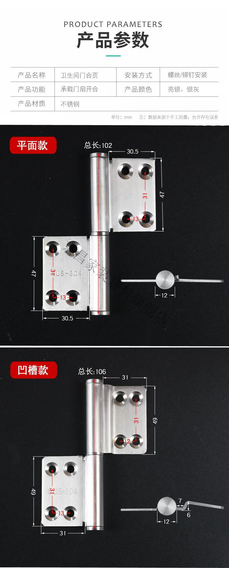 Du Zhunyu aluminum alloy swing door hinge bathroom toilet door stainless steel hinge hinge old fire door flat style - steel left 3 hinges + 30 rivets