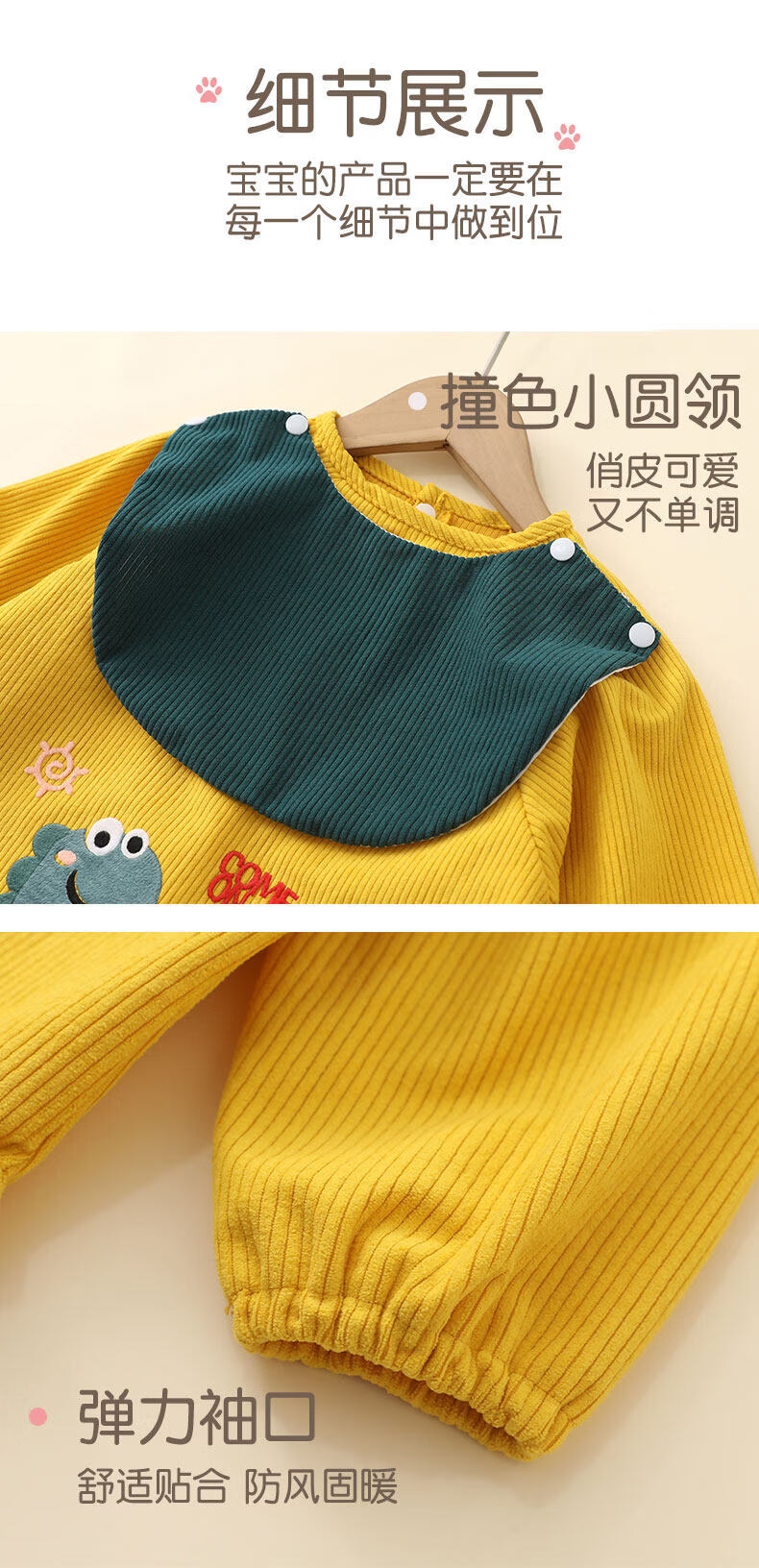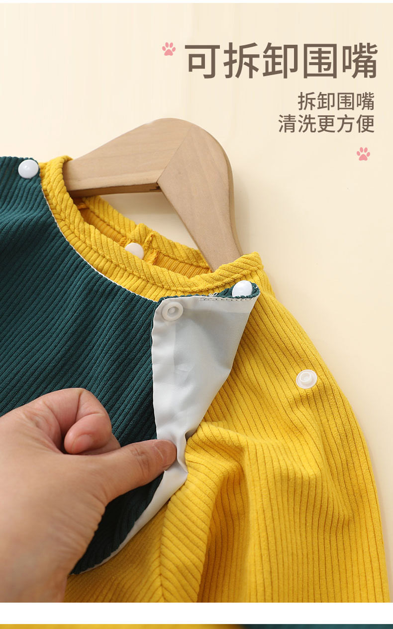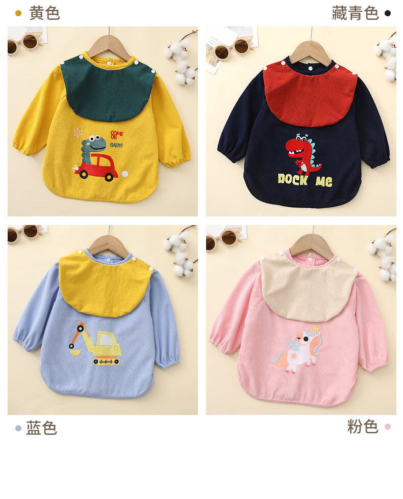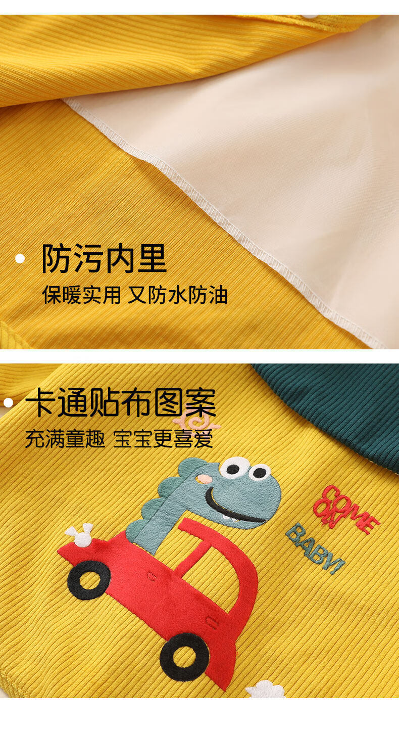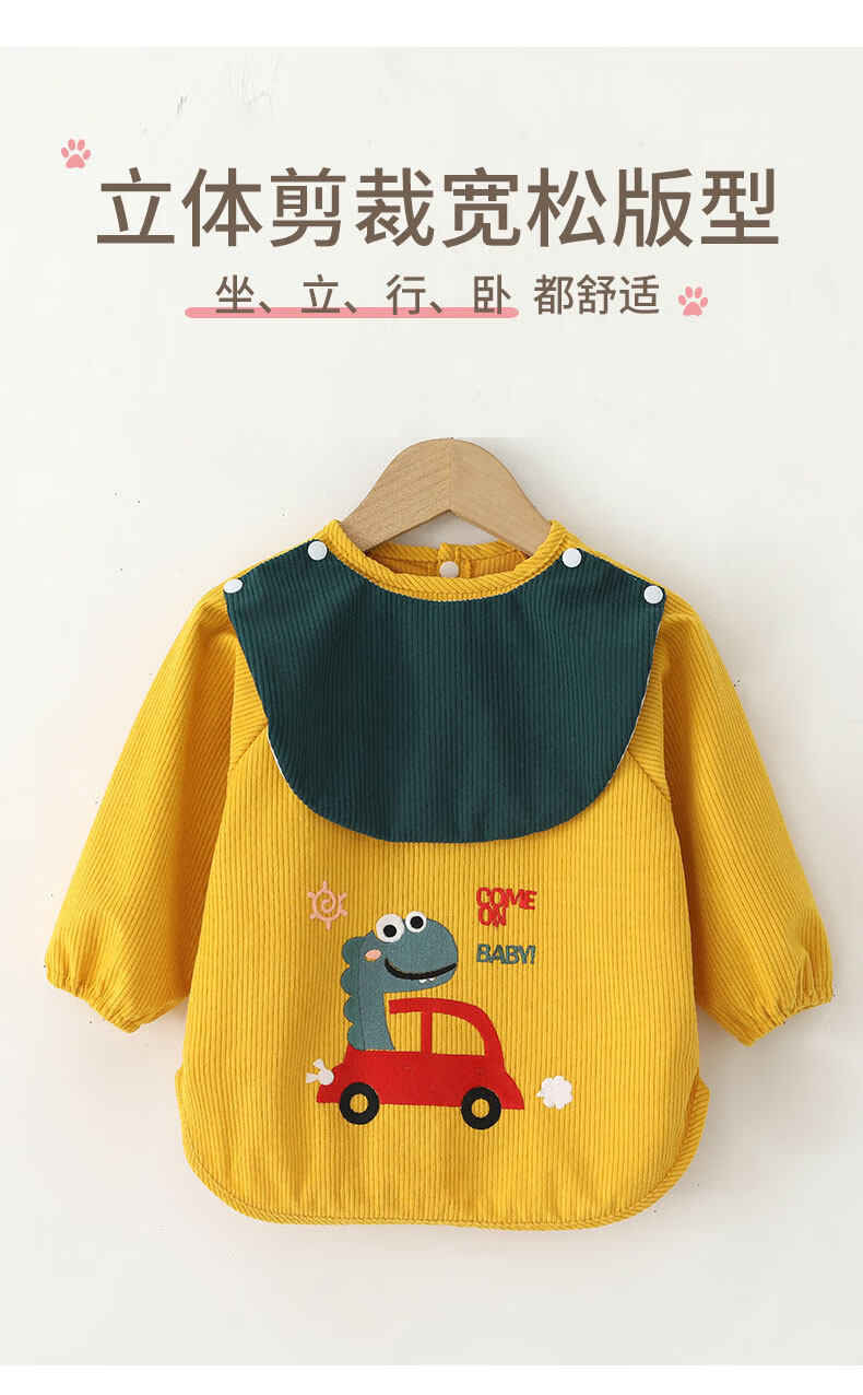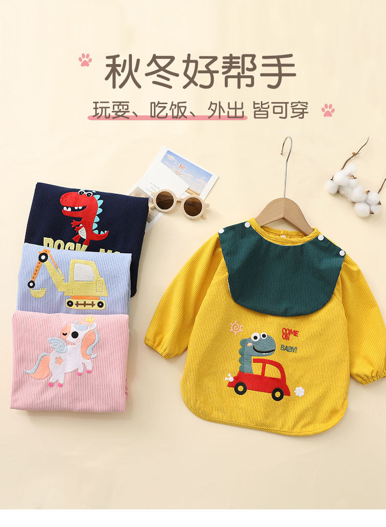 Baby smock for spring, autumn and winter, corduroy children's protective clothing, foreign-style apron, baby eating bib pocket, waterproof and waterproof, great value 2 pieces, blue lion + yellow dinosaur 90, recommended height 70-90cm
