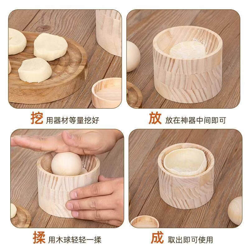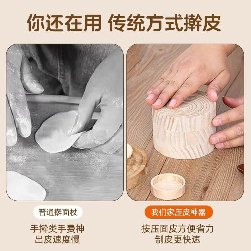 1 pack of dumpling artifact wooden dumpling wrapper kitchen household dumpling wrapper rolling and pressing easily and saving effort Large solid wood wrapper (10*10*7cm)-2 sets Day 2