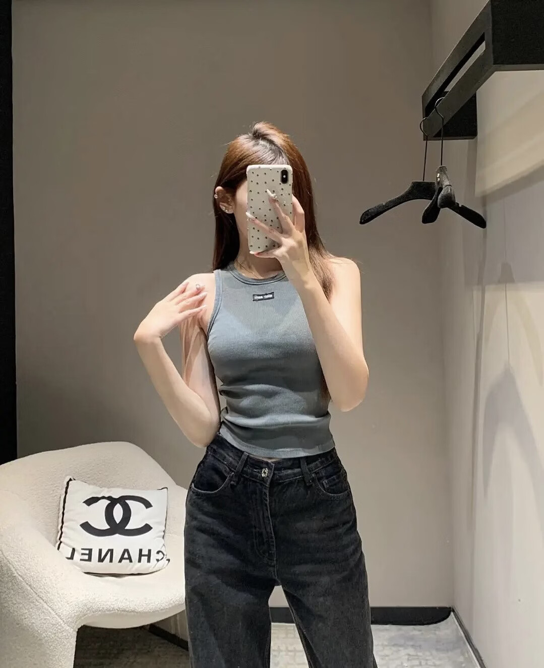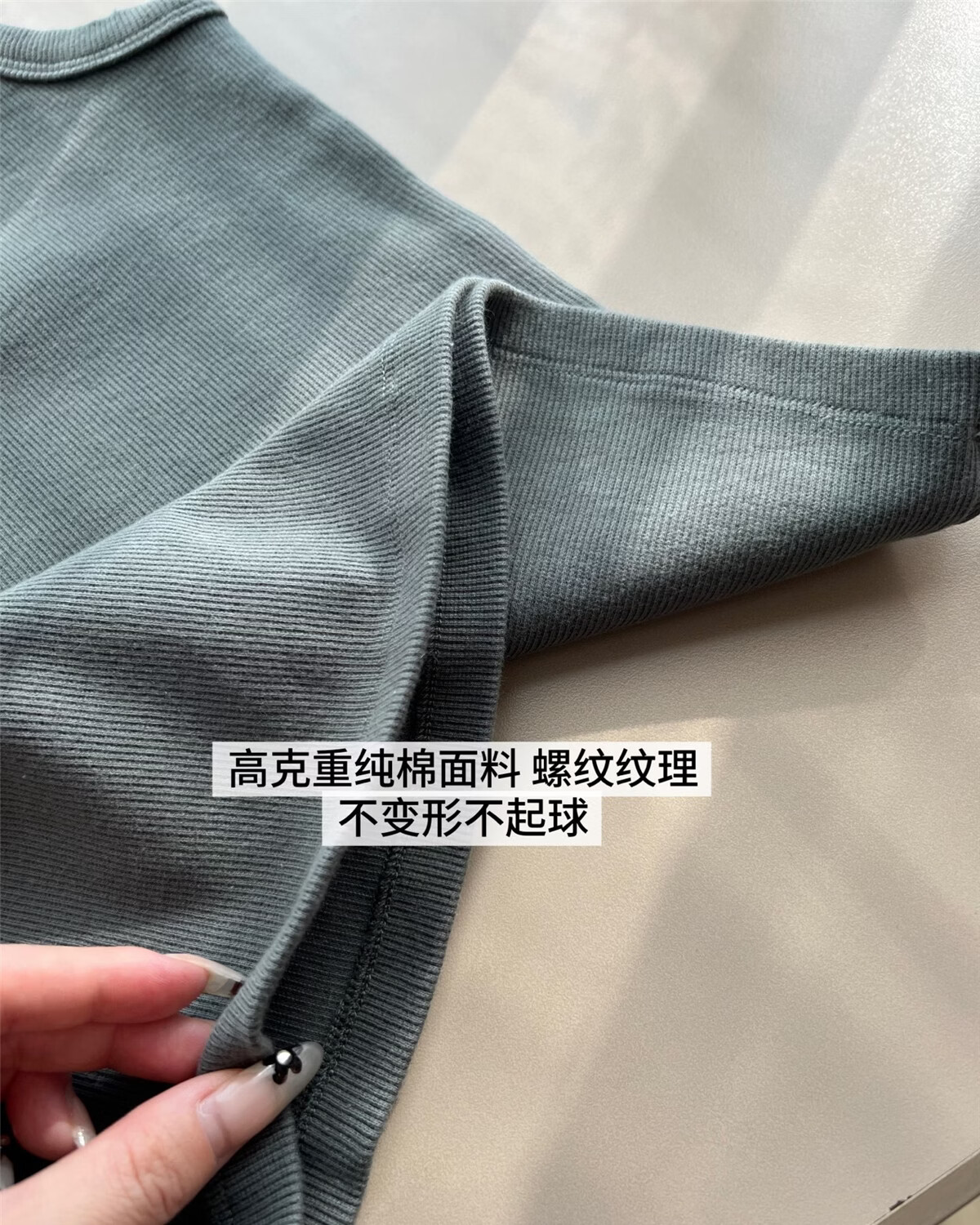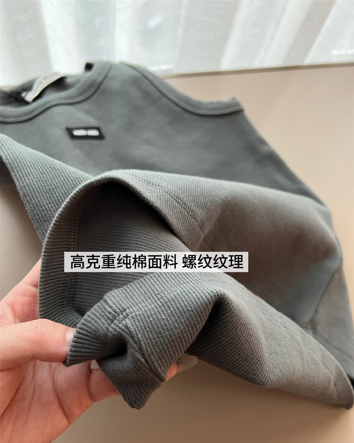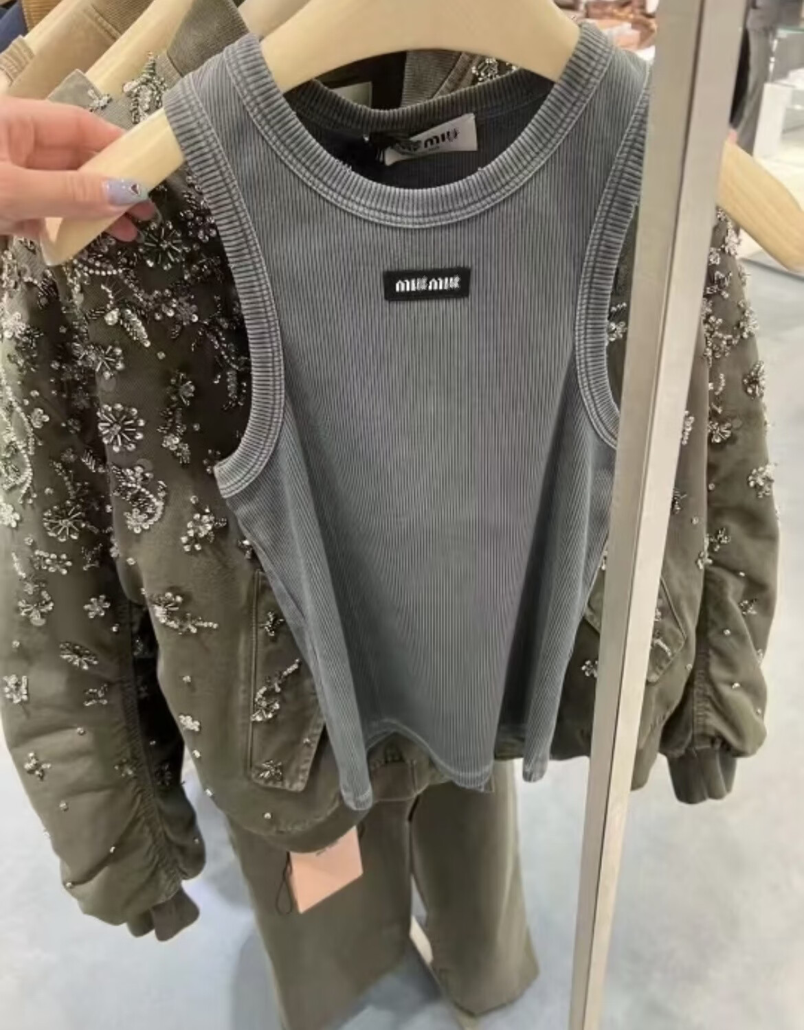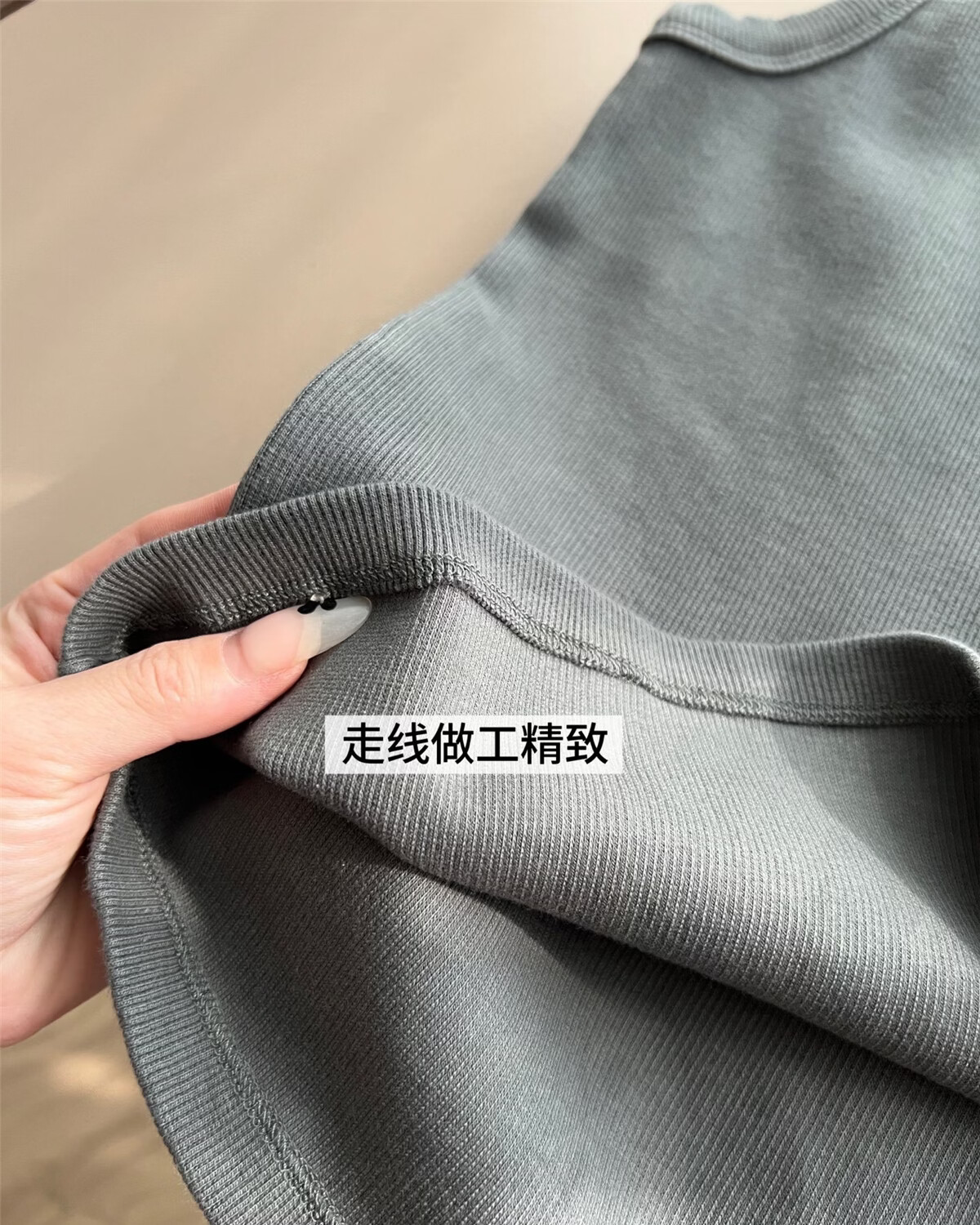 2025 new summer style fashionable and versatile slim micro-labeled ribbed jersey sleeveless vest Green S