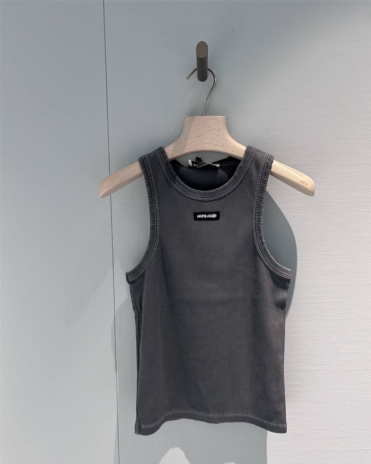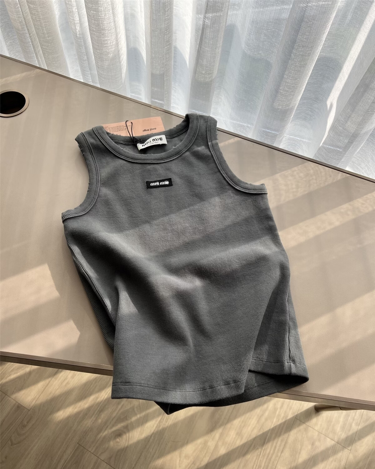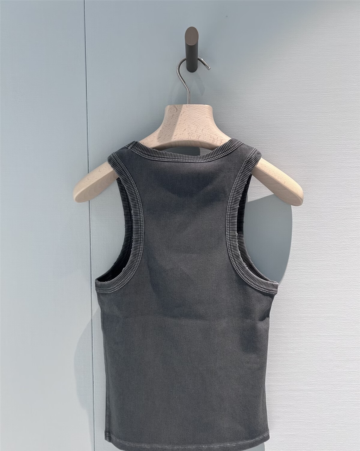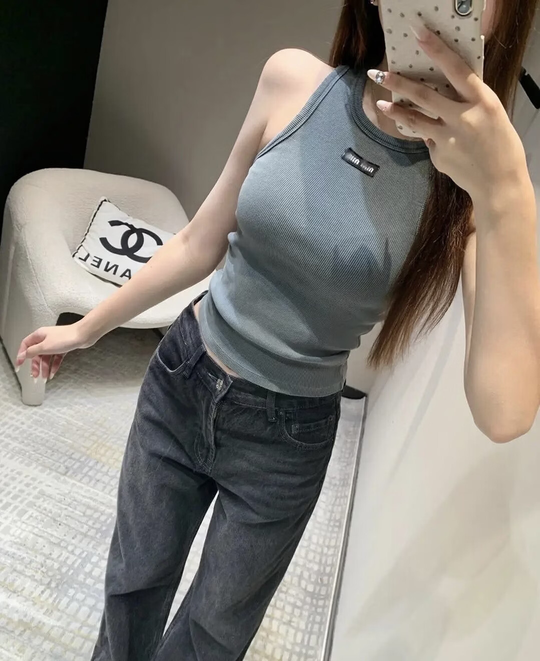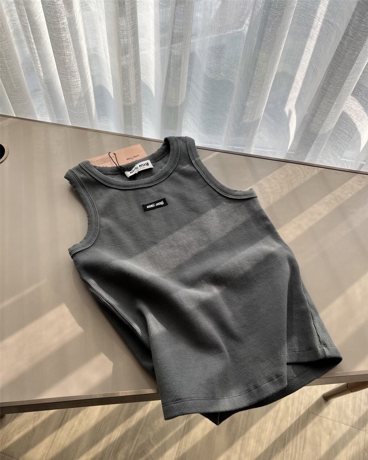 2025 new summer style fashionable and versatile slim micro-labeled ribbed jersey sleeveless vest Green S