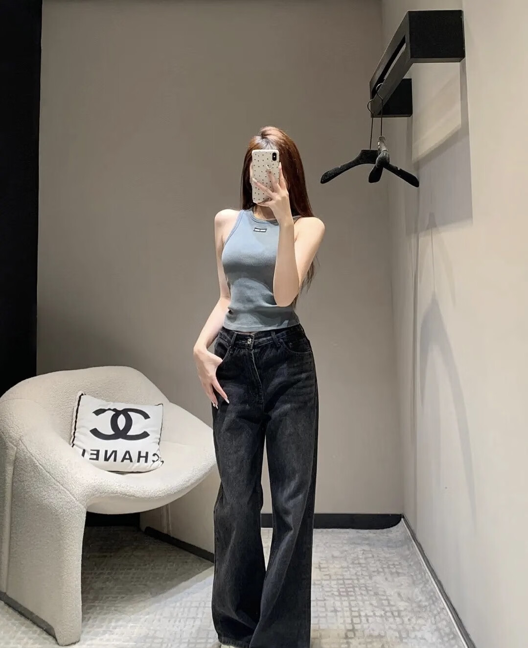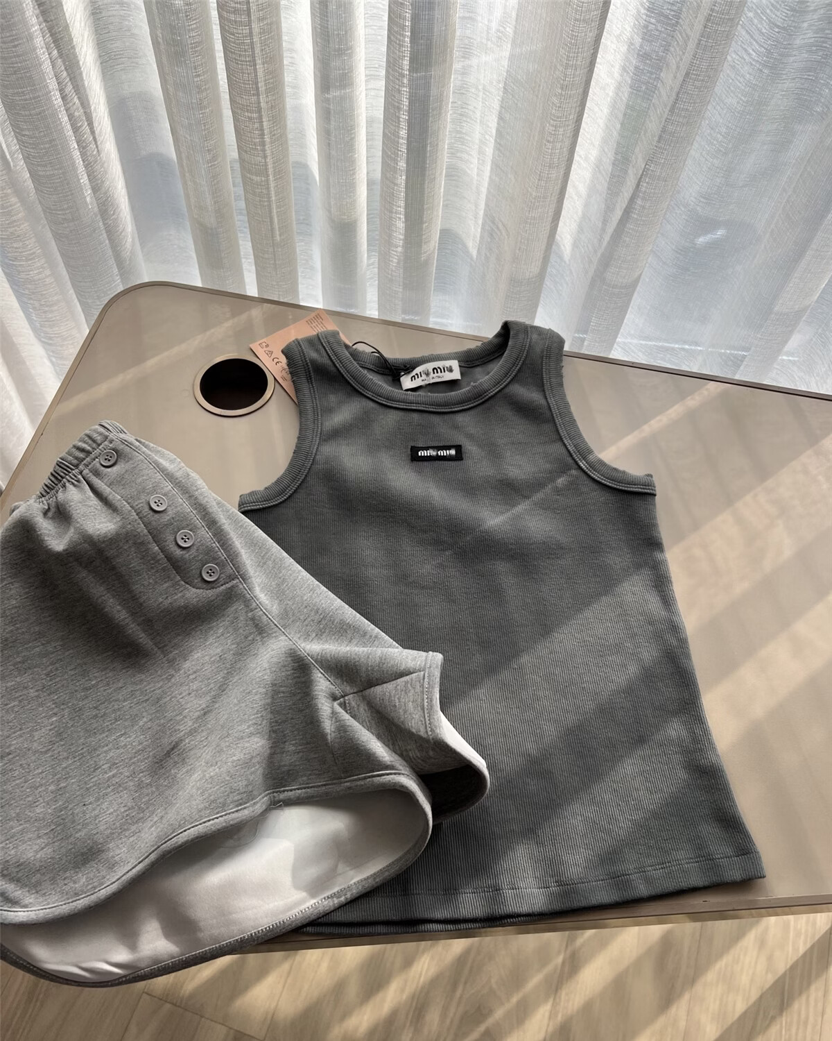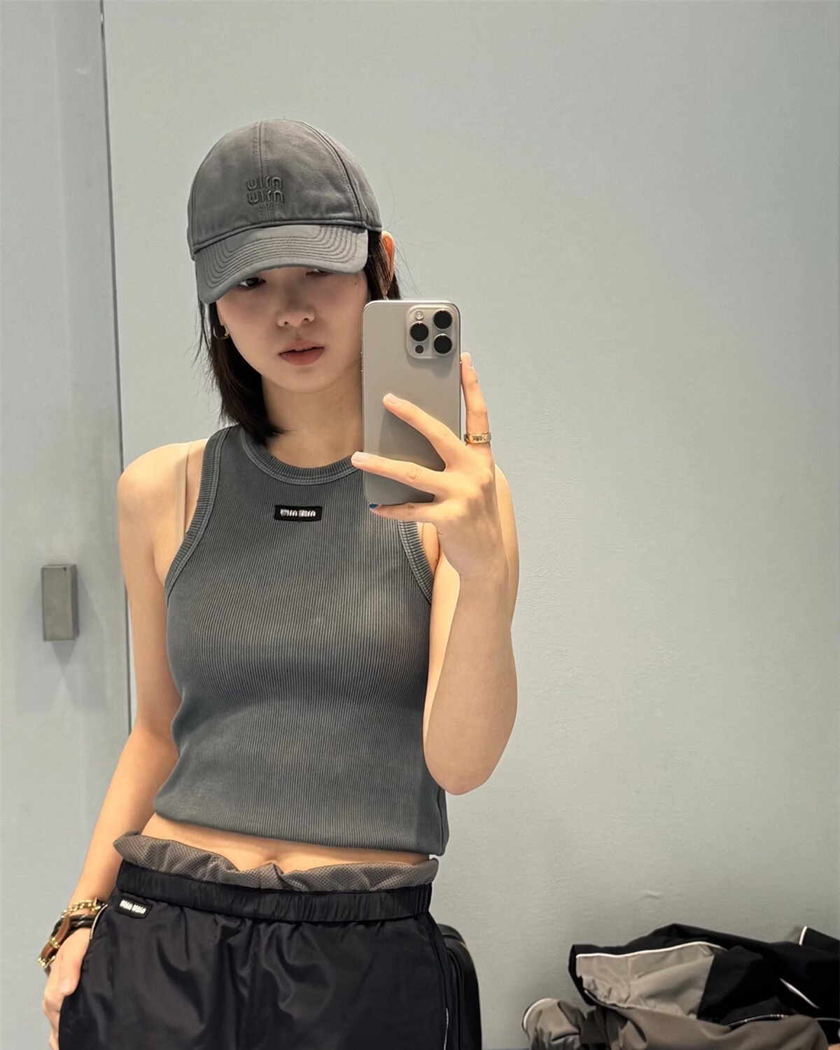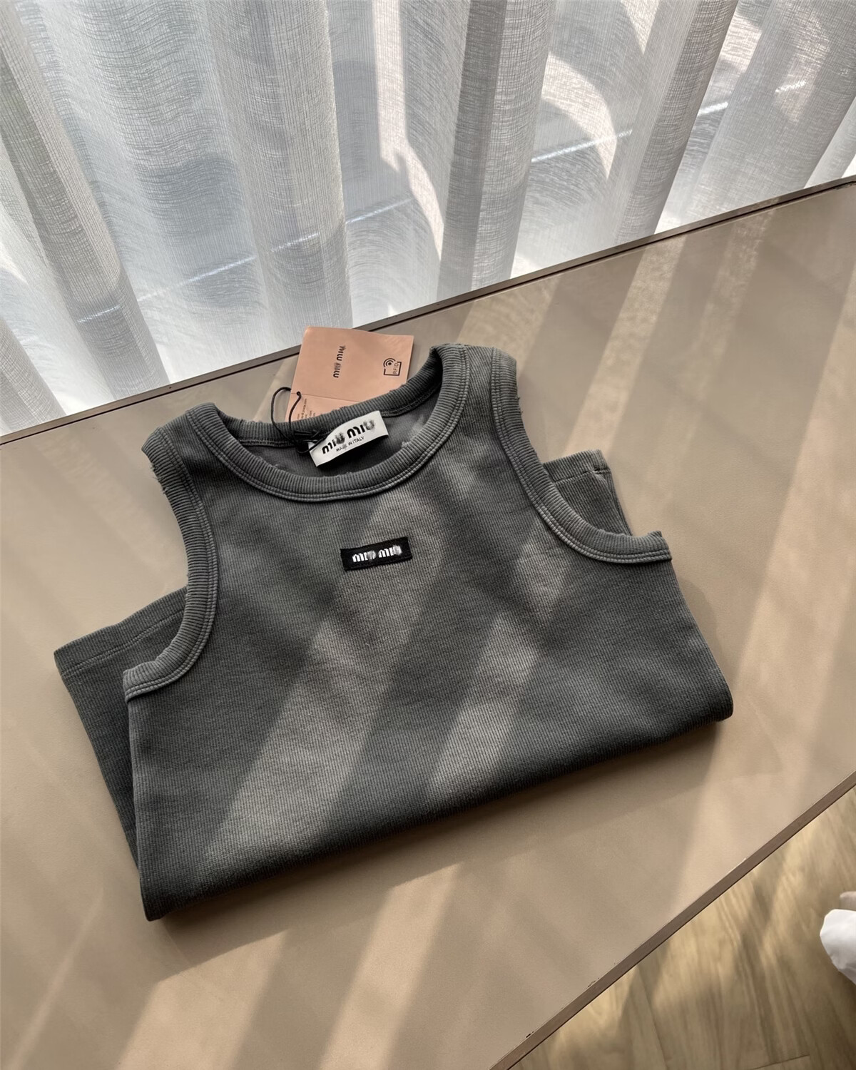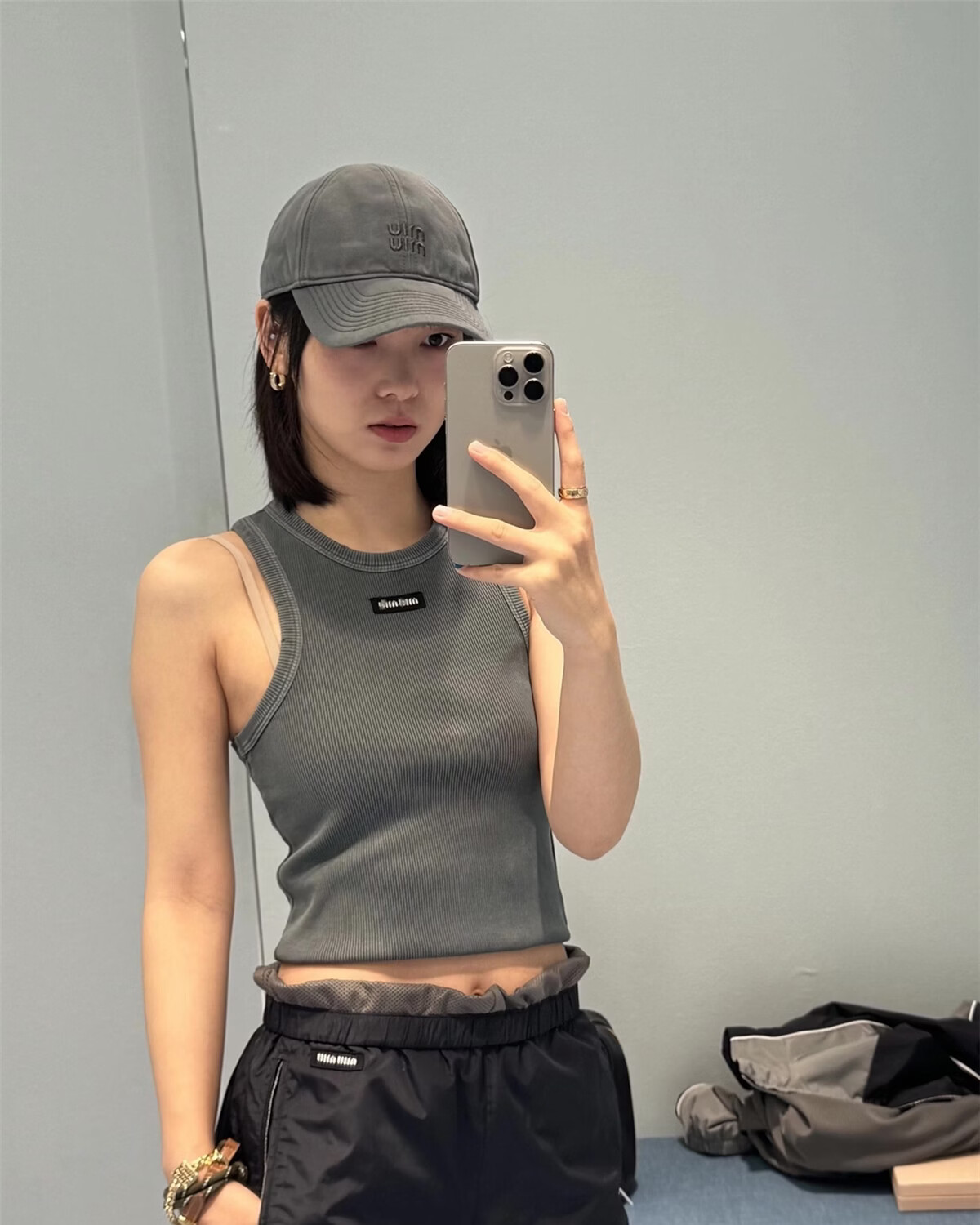 2025 new summer style fashionable and versatile slim micro-labeled ribbed jersey sleeveless vest Green S
