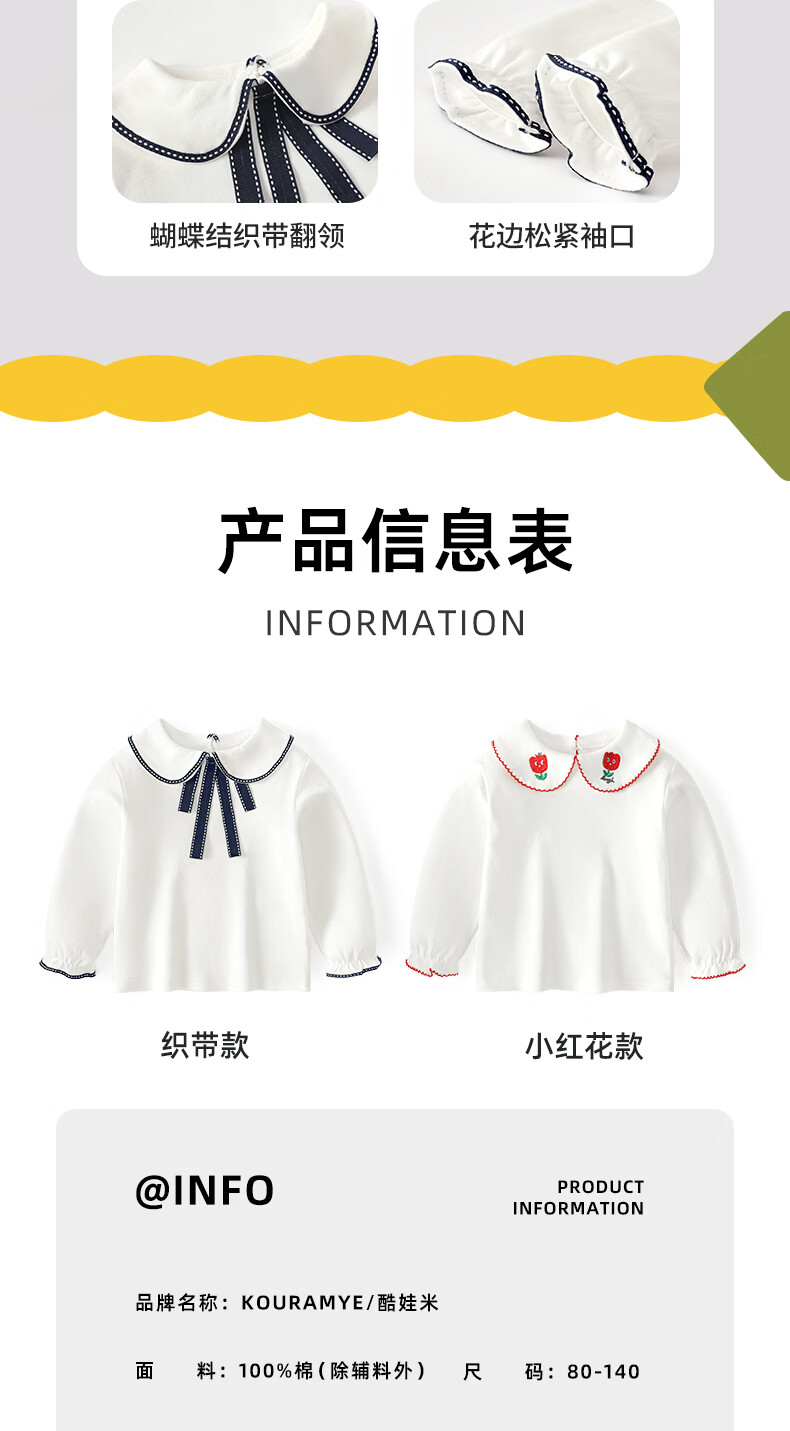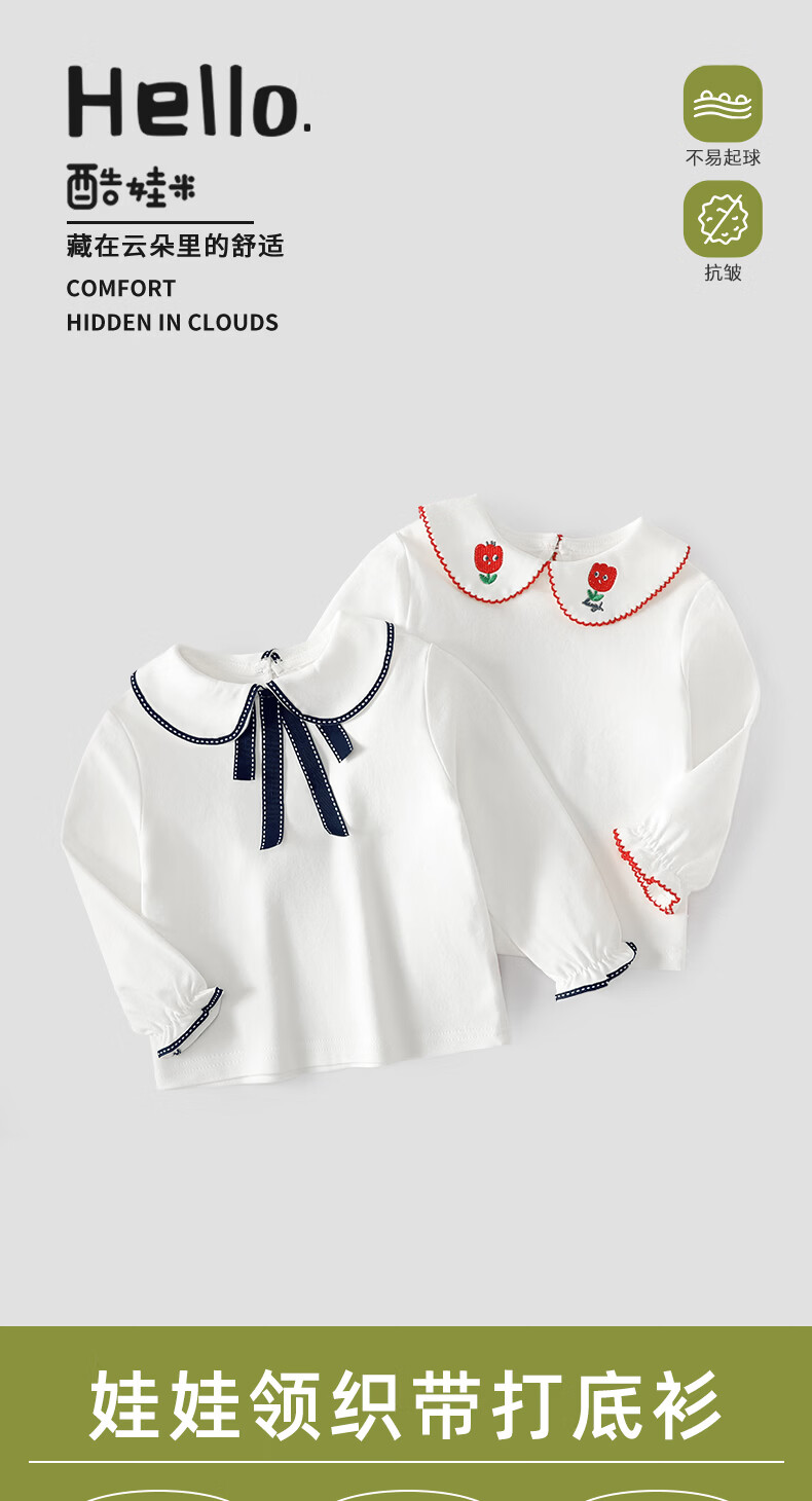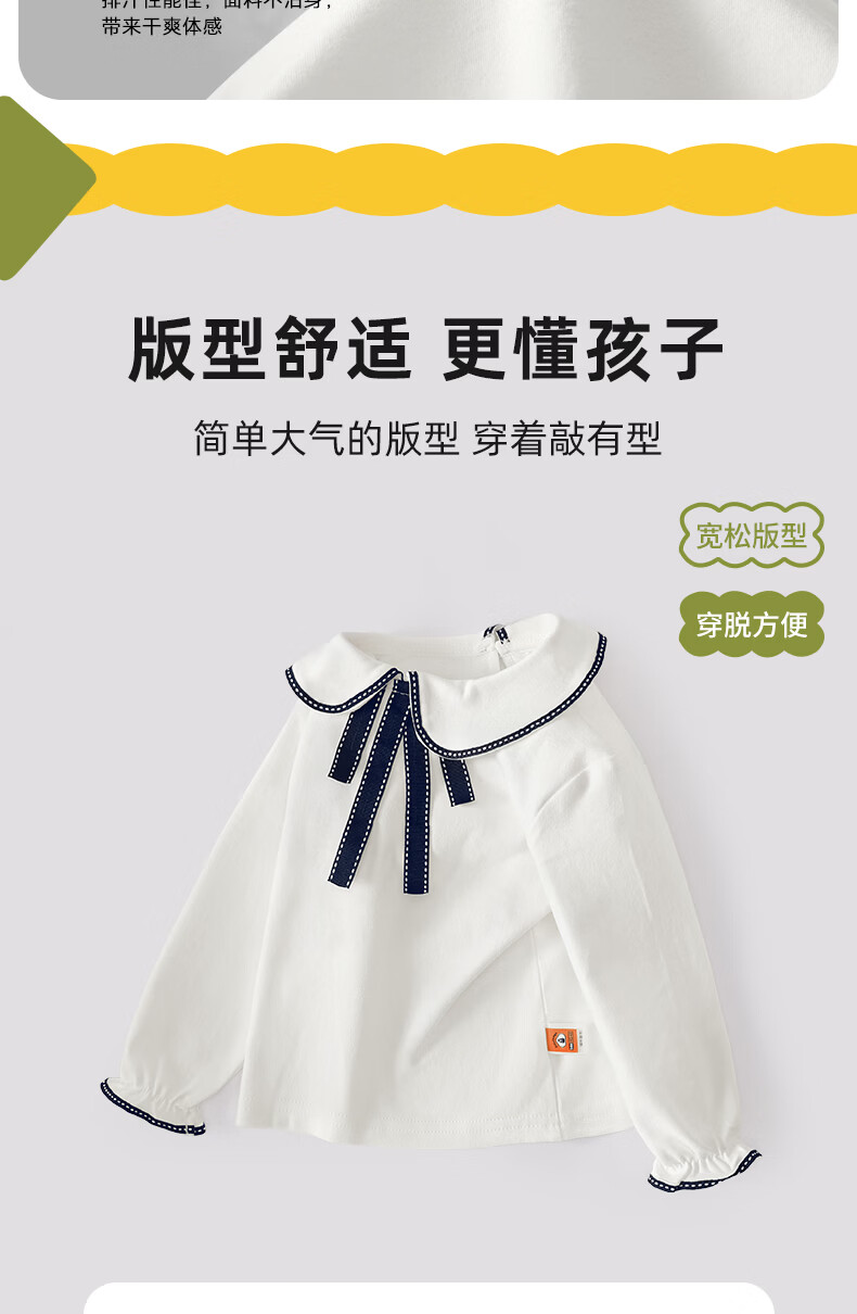Kuwami long-sleeved T-shirt 2026 spring and autumn new style children's style bottoming shirt for girls baby pullover sapphire ribbon 90