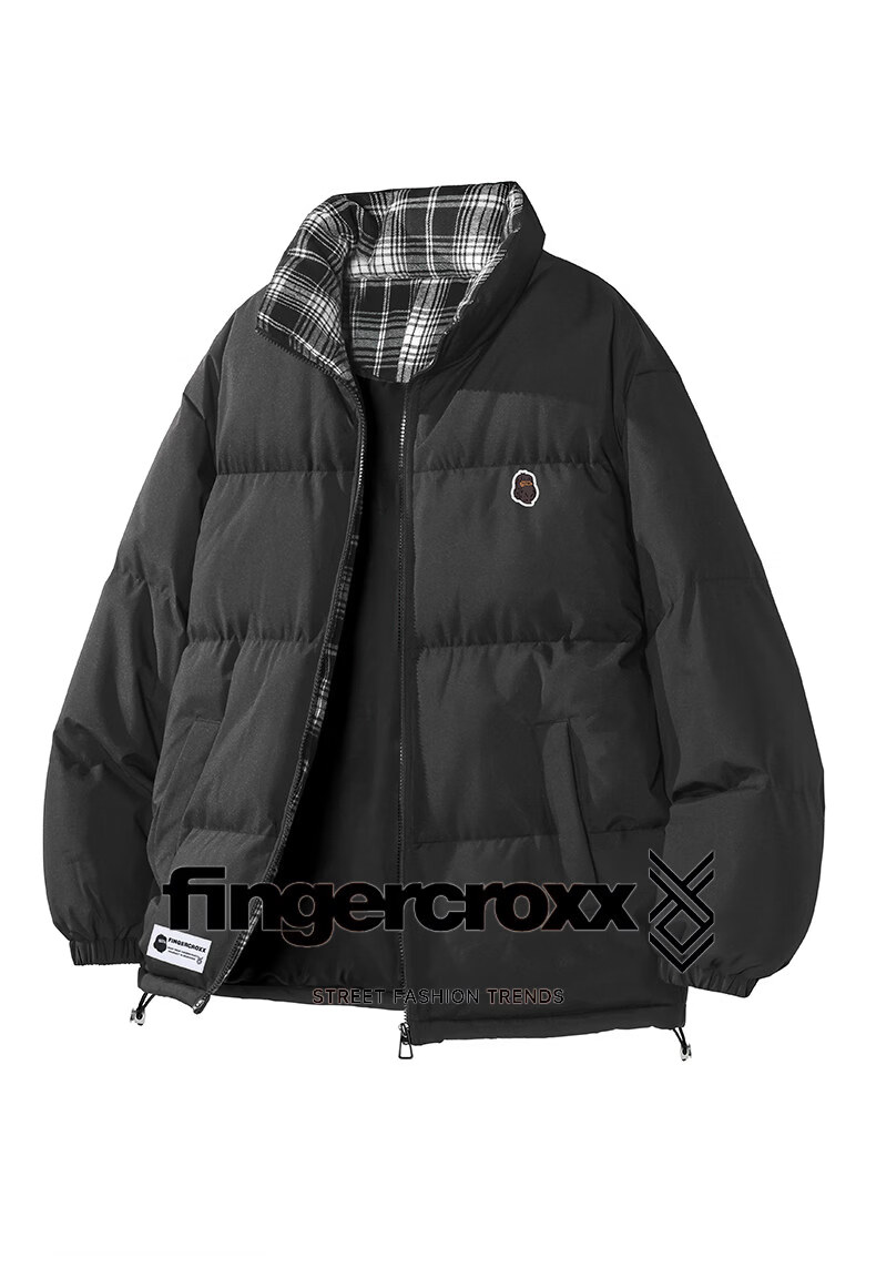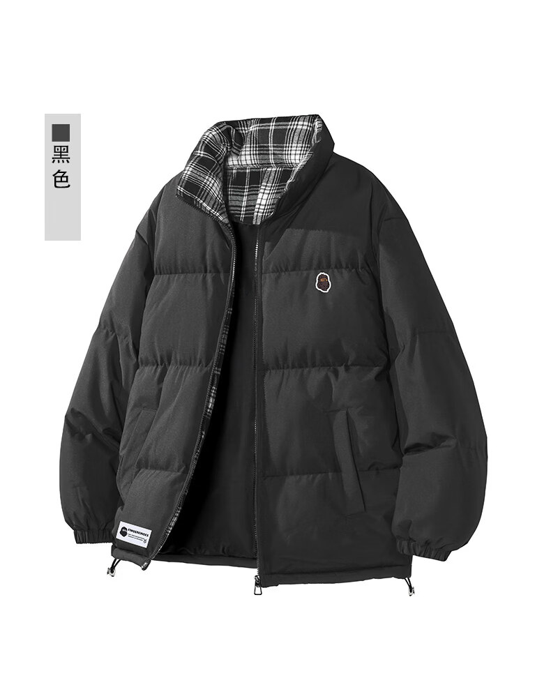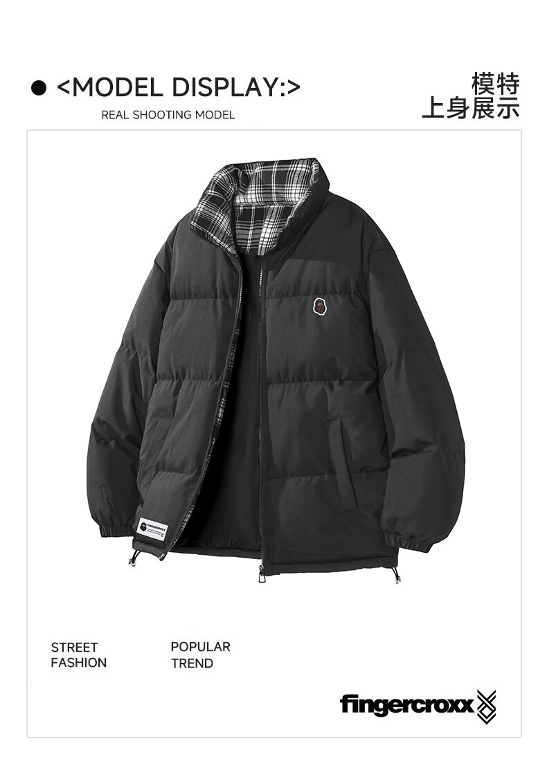 Fingercroxx it men's short cotton coat men's winter plaid bread coat thickened warm coat men's versatile fashionable cotton coat blue counter same style M 90-110Jin Jin equals 0.5 kg