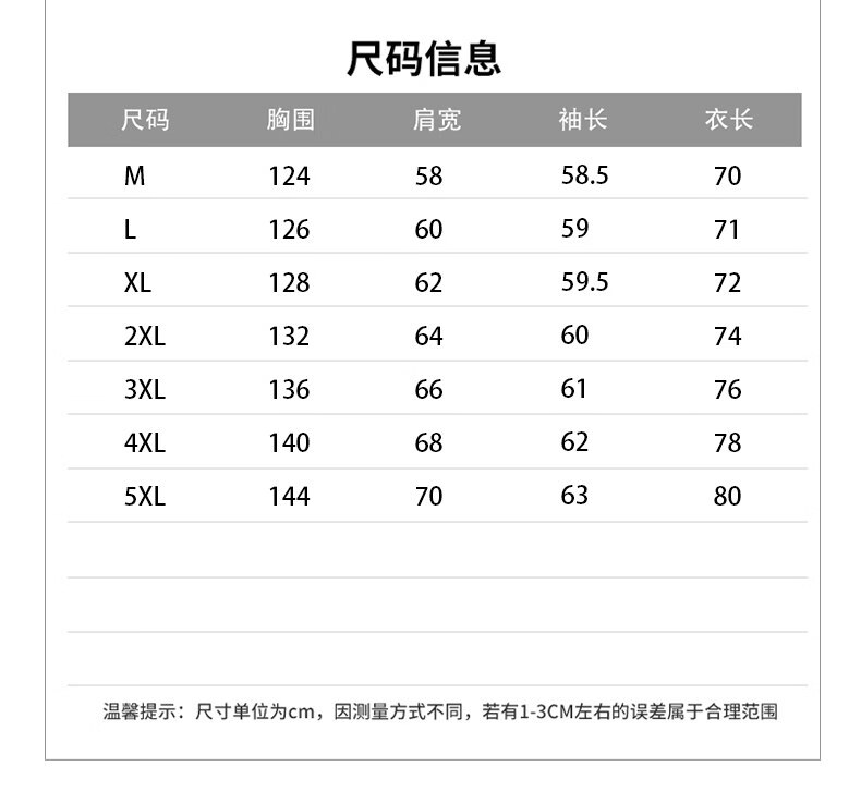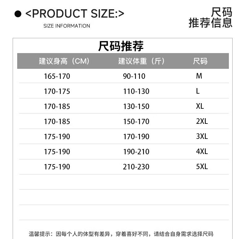 China (cm) 165 / 88-90 170 / 96-98 175 / 108-110 180 / 118-122 185 / 126-130