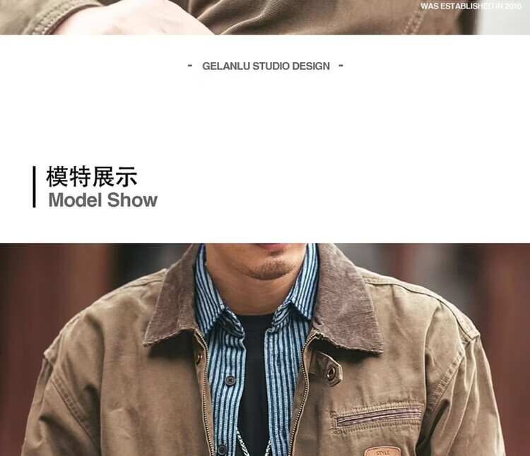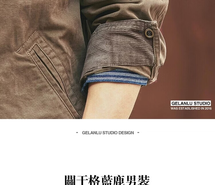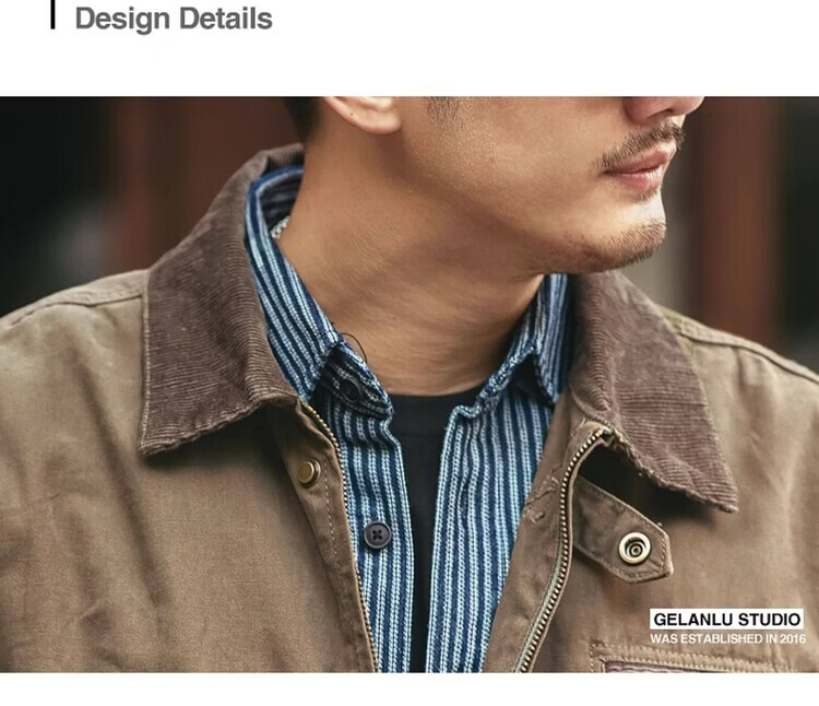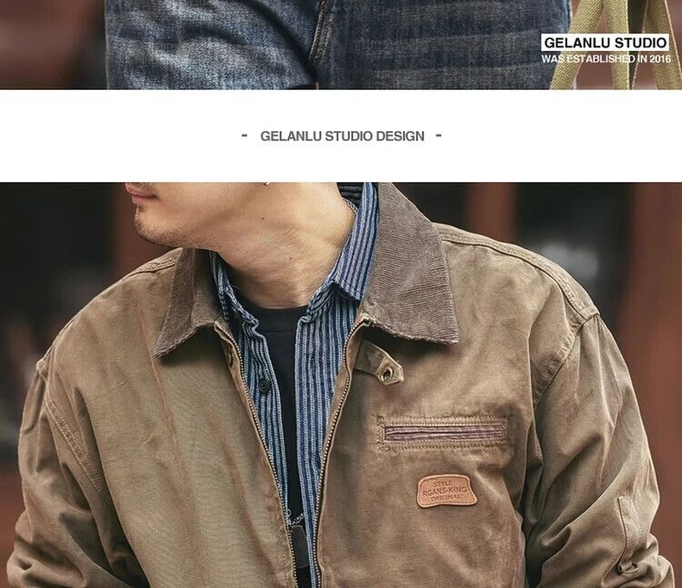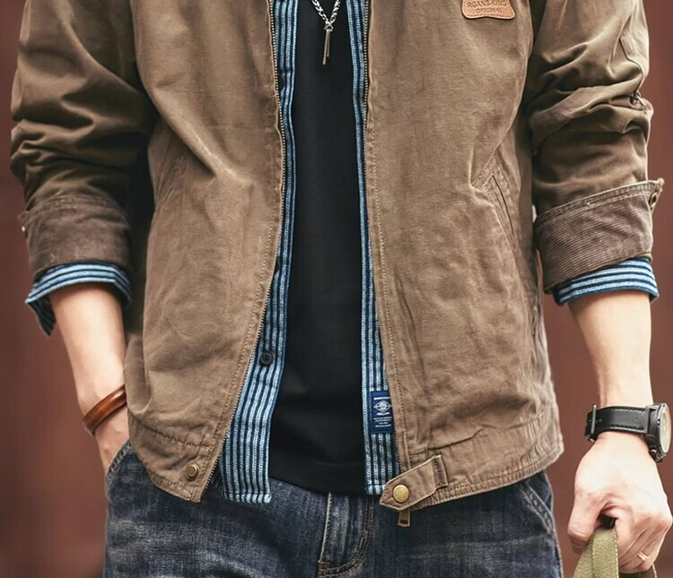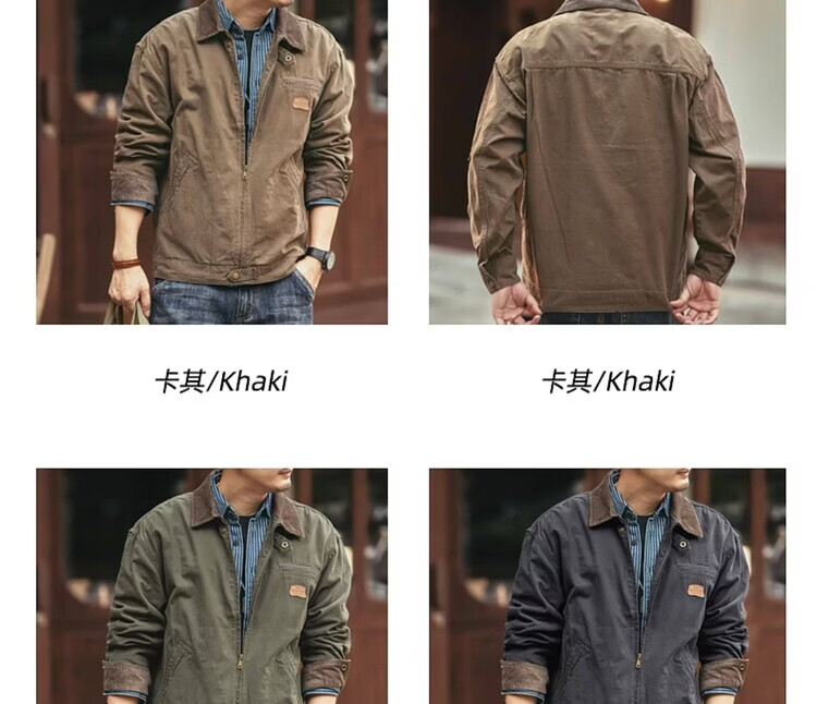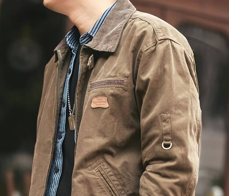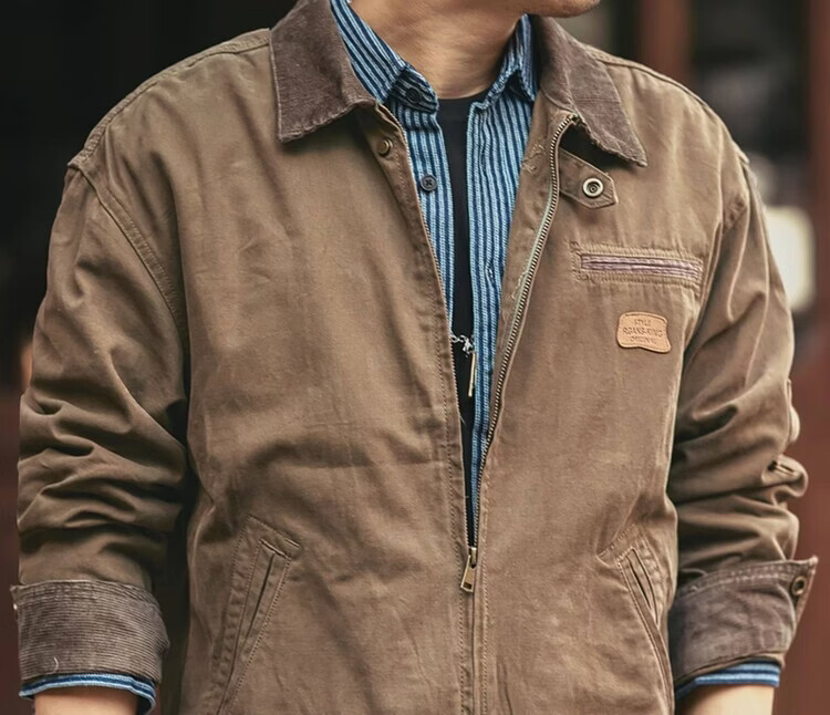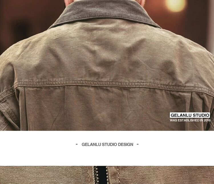 Green Deer American Retro Heavy Duty Work Jacket Men's Trendy Brand Spring and Autumn Pure Cotton Outdoor Hunting Jacket Khaki M Suitable for 115-135 Jin Jin equals 0.5 kg