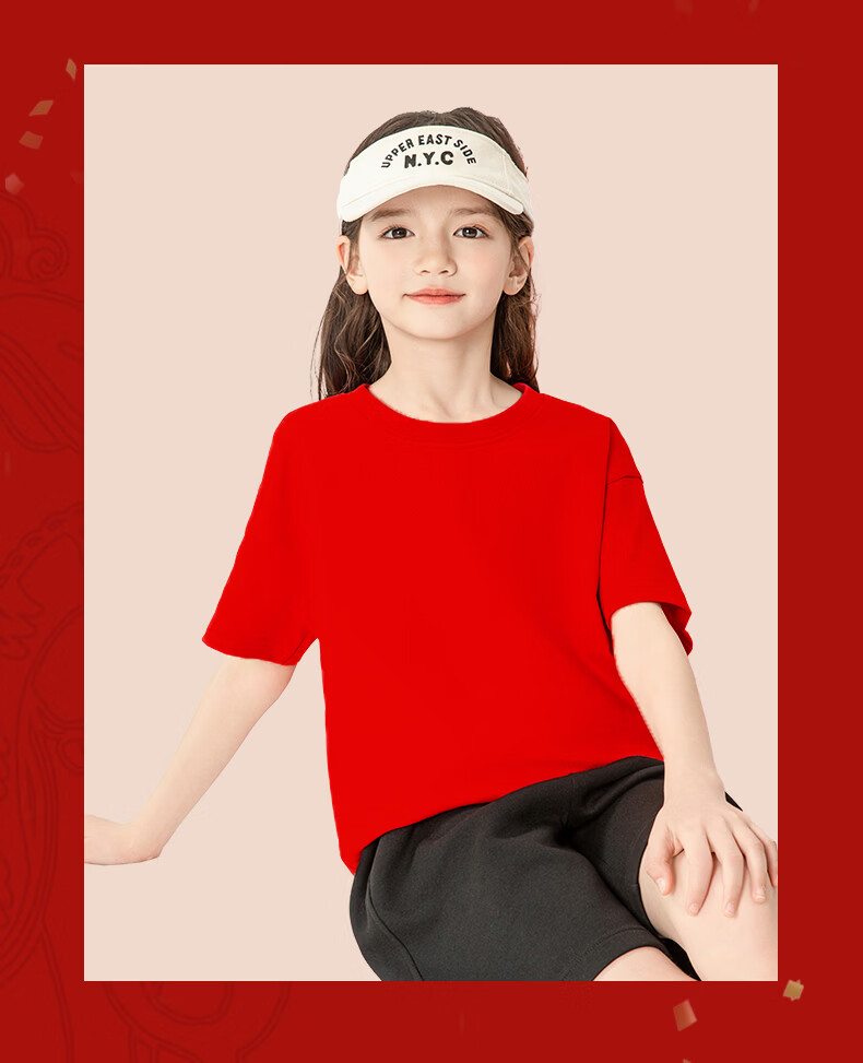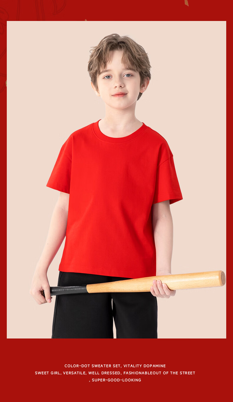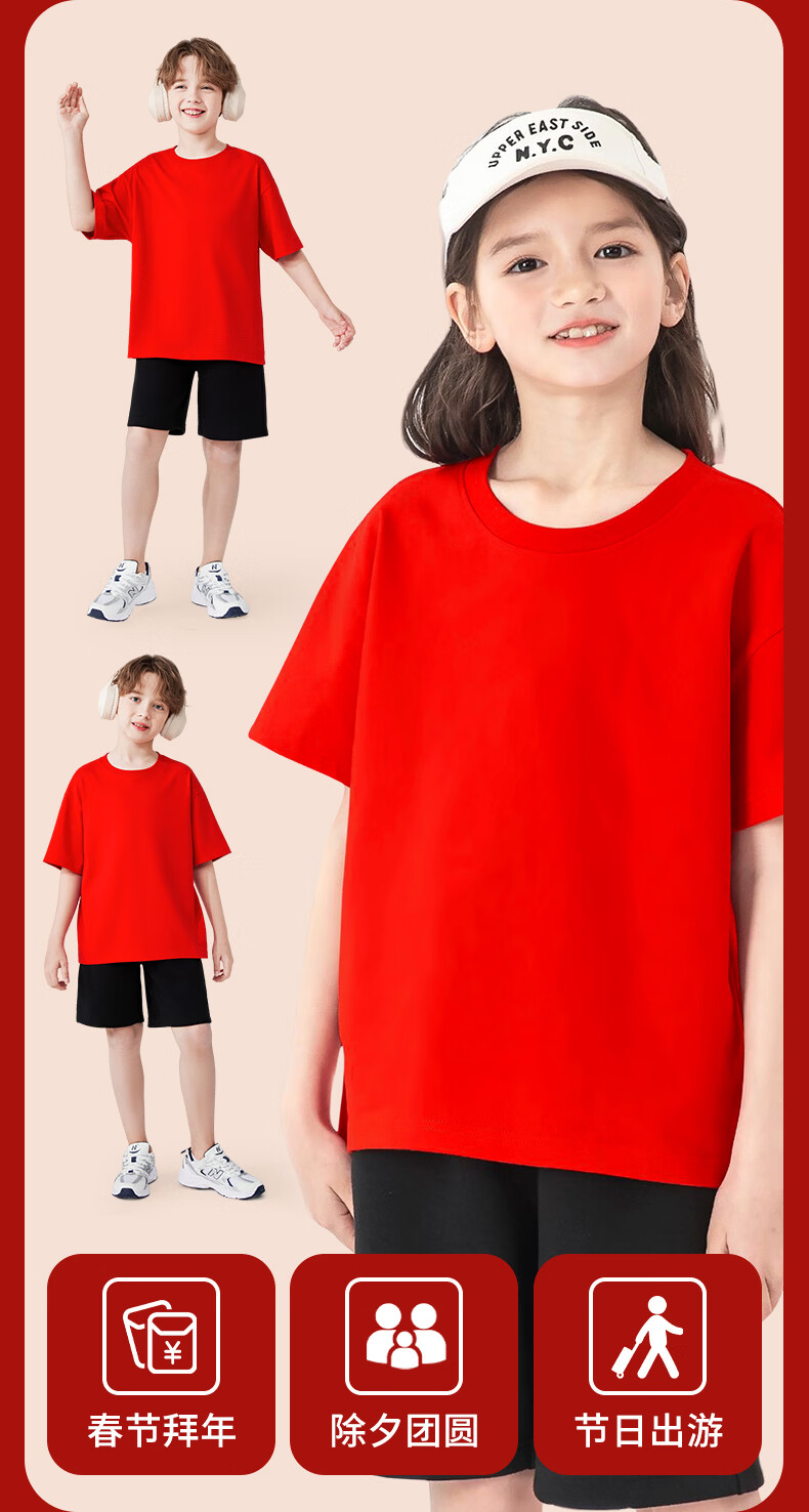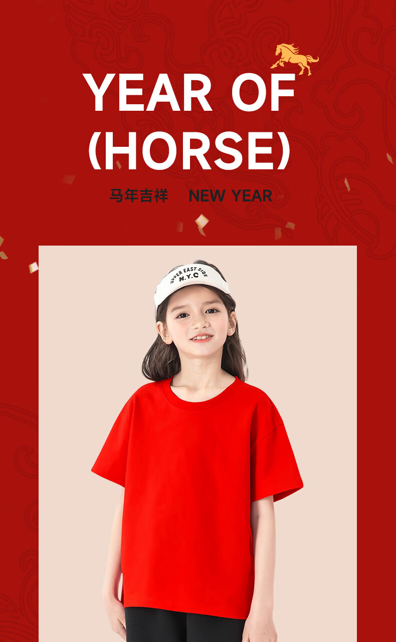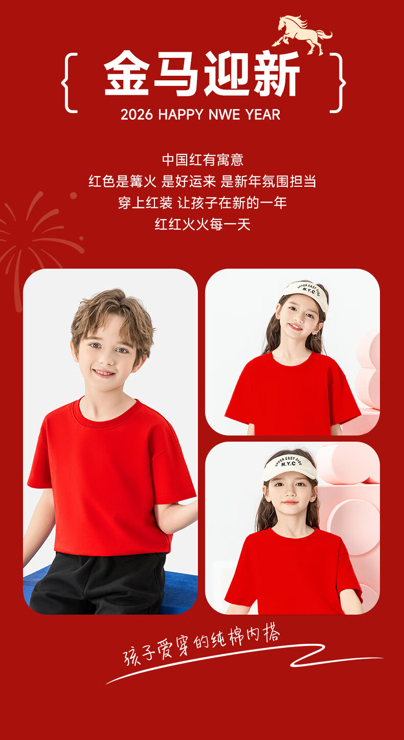 Jeanswest boys short-sleeved children's red t-shirt New Year's clothing pure cotton New Year's greetings girls' New Year's clothing festive Horse Year children's clothing 100% cotton red Lucky Apple Horse 90