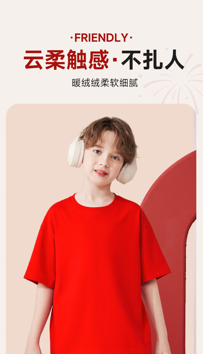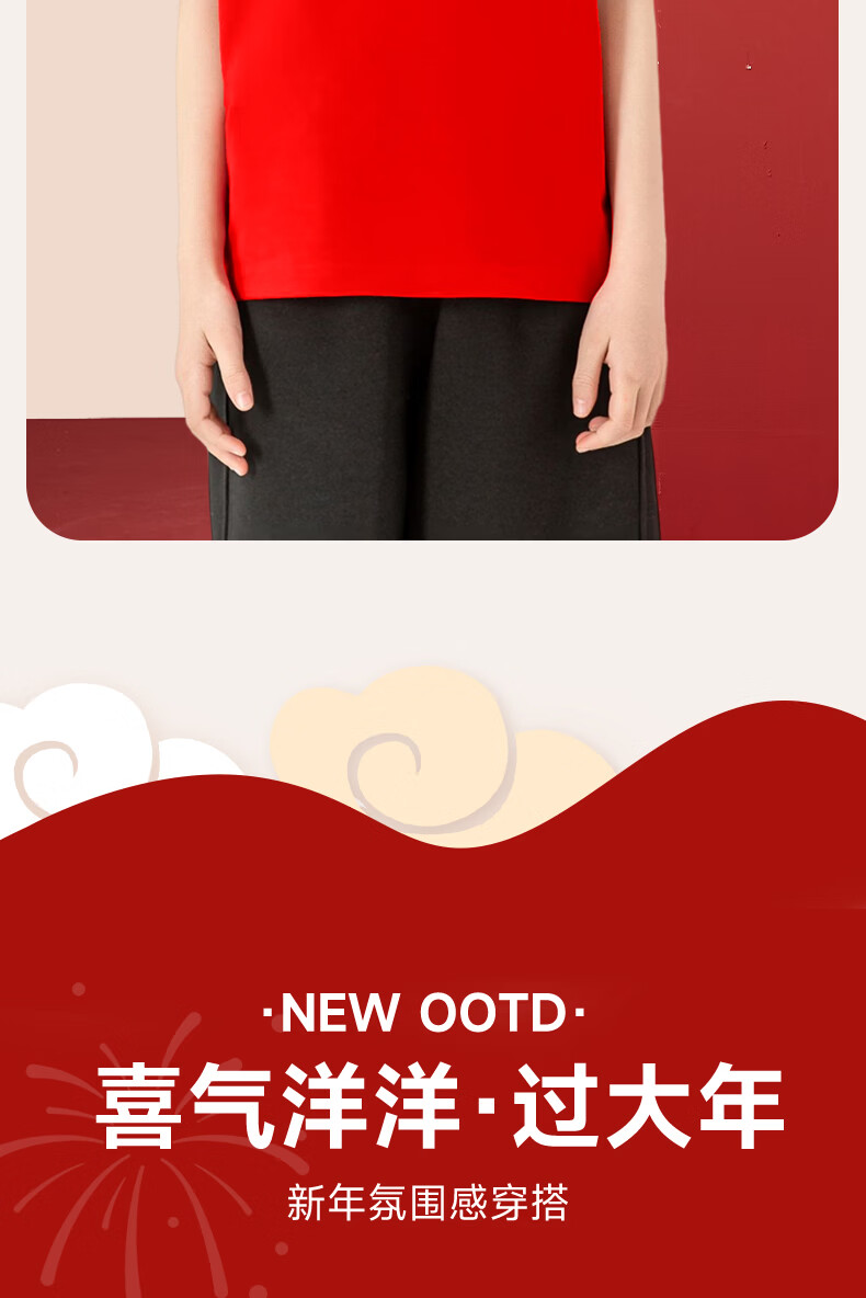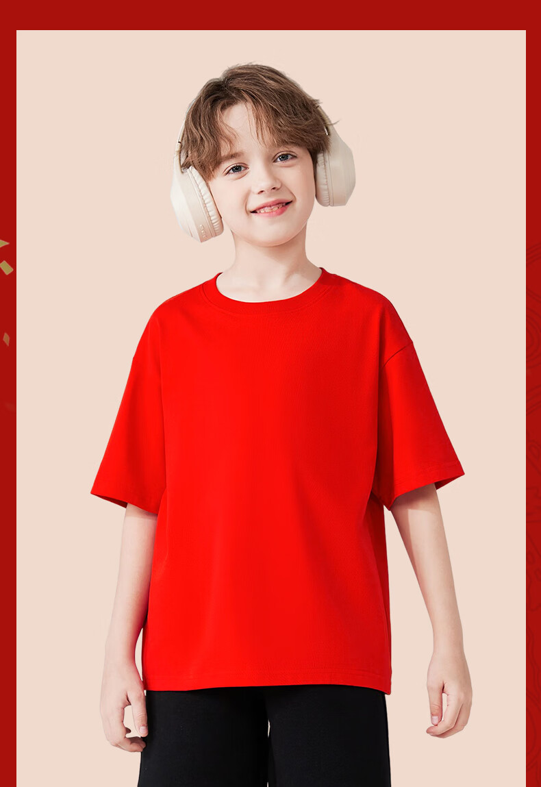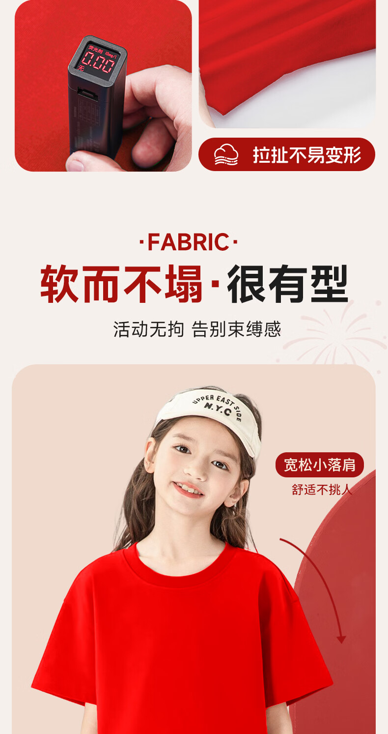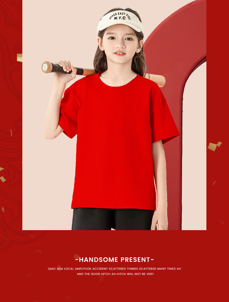 Jeanswest boys short-sleeved children's red t-shirt New Year's clothing pure cotton New Year's greetings girls' New Year's clothing festive Horse Year children's clothing 100% cotton red Lucky Apple Horse 90