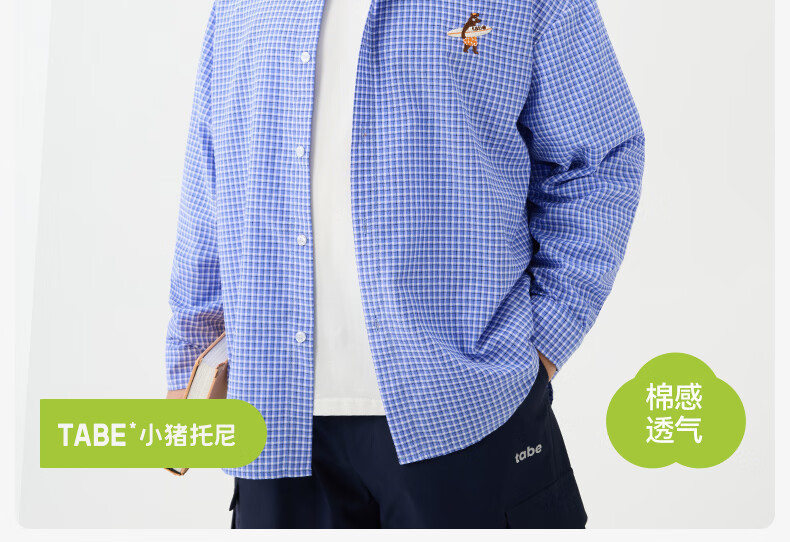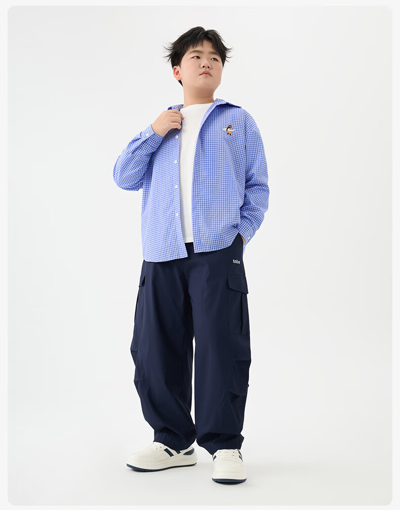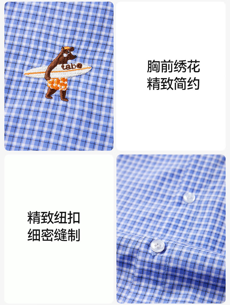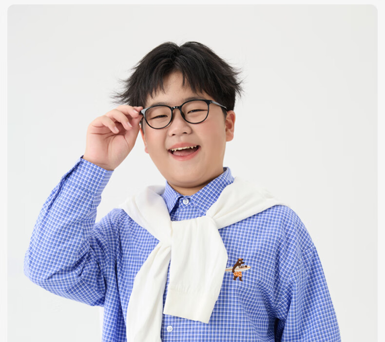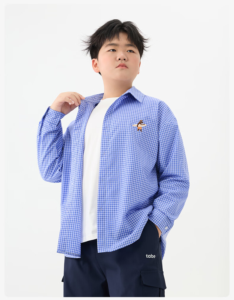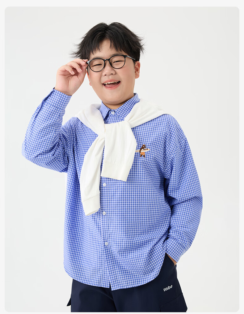 Tony Piggy College Style Shirt Fat Boy Shirt Long Sleeve Plaid Shirt Children's Loose Large Size Western Style Children's Clothes College Plaid Shirt Blue 140 Recommended 130-145 high, 75-90 Jin Jin equals 0.5 kg