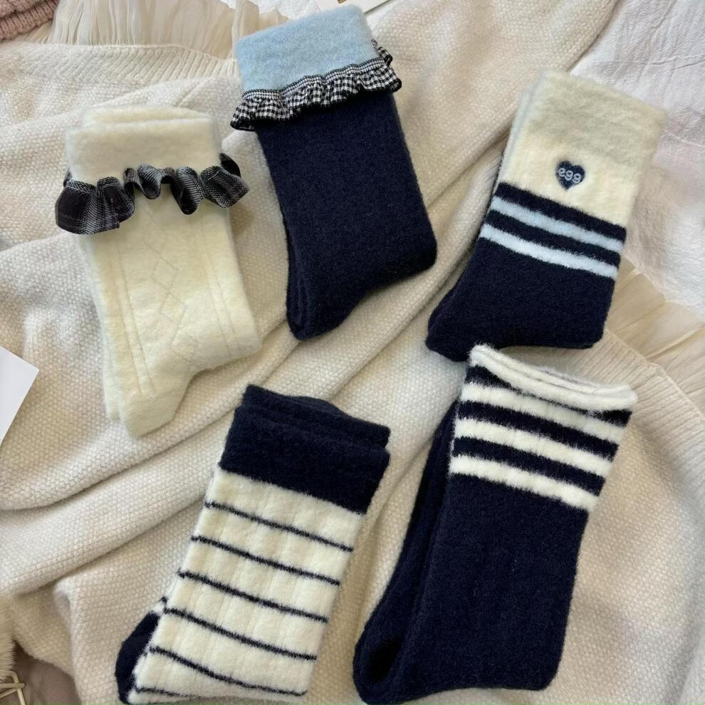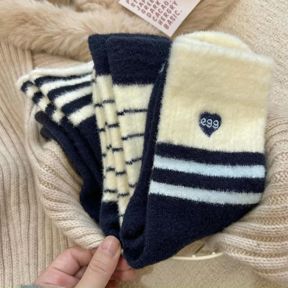 2025 autumn and winter Australian velvet thickened warm striped socks, ribbed stripes, one size fits all