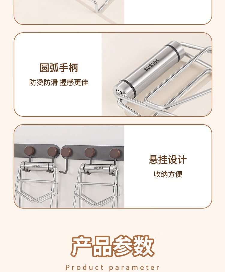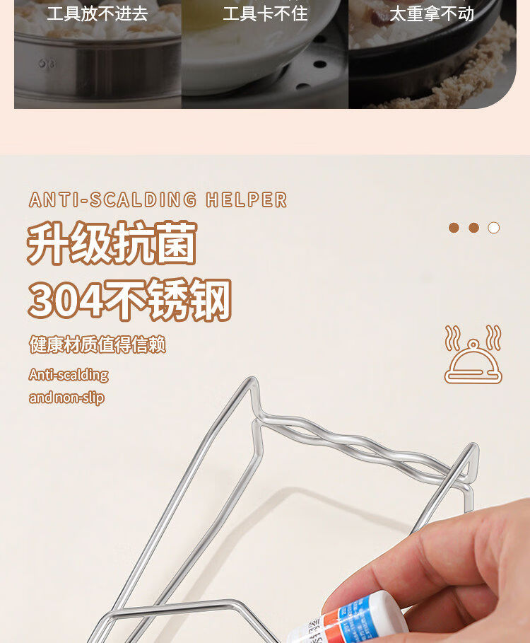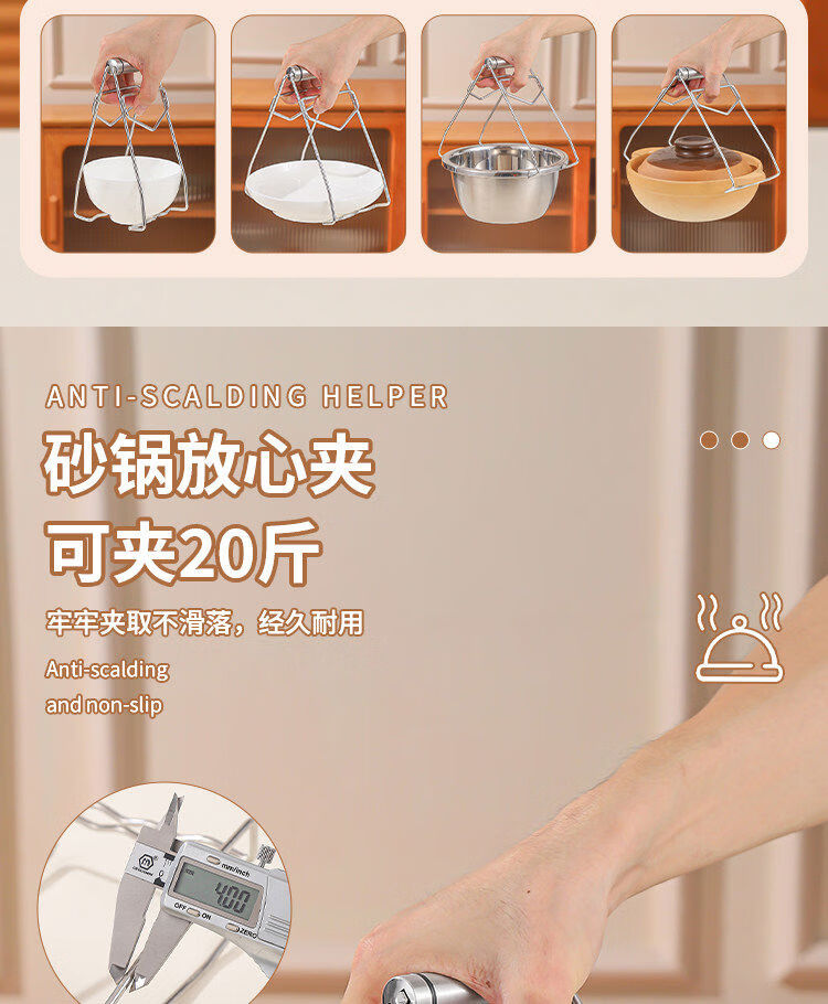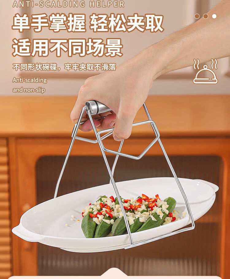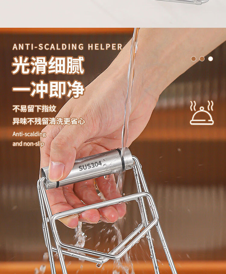 Yinghuan 304 stainless steel anti-scalding clip, household bowl clamp and plate artifact, kitchen non-slip steaming vegetable clip, steamer clip, small 304 anti-scalding plateware