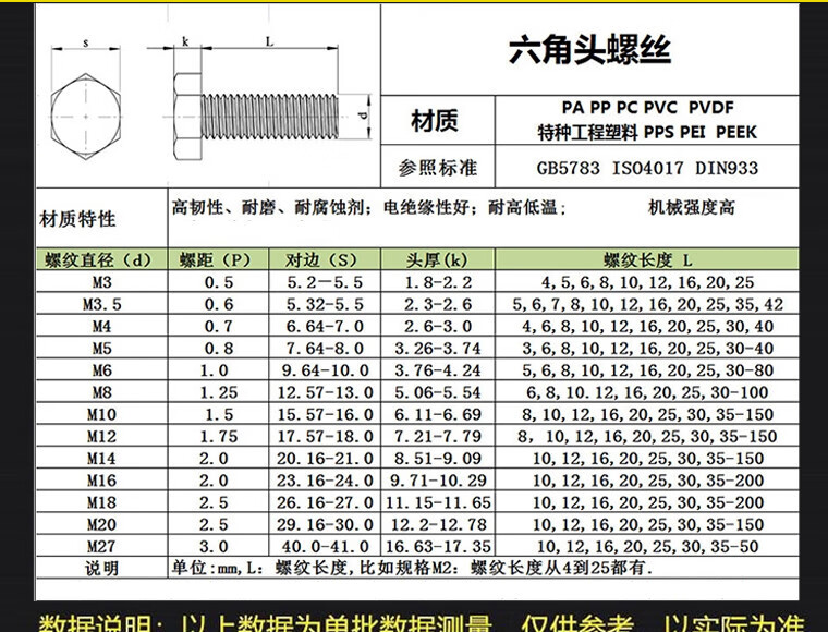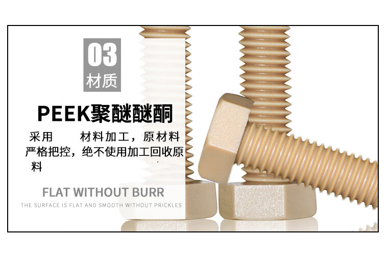 High-peek external hexagonal screws M4M5M6M8M10M12M16 anti-corrosion peek screws high strength M3*85 only price