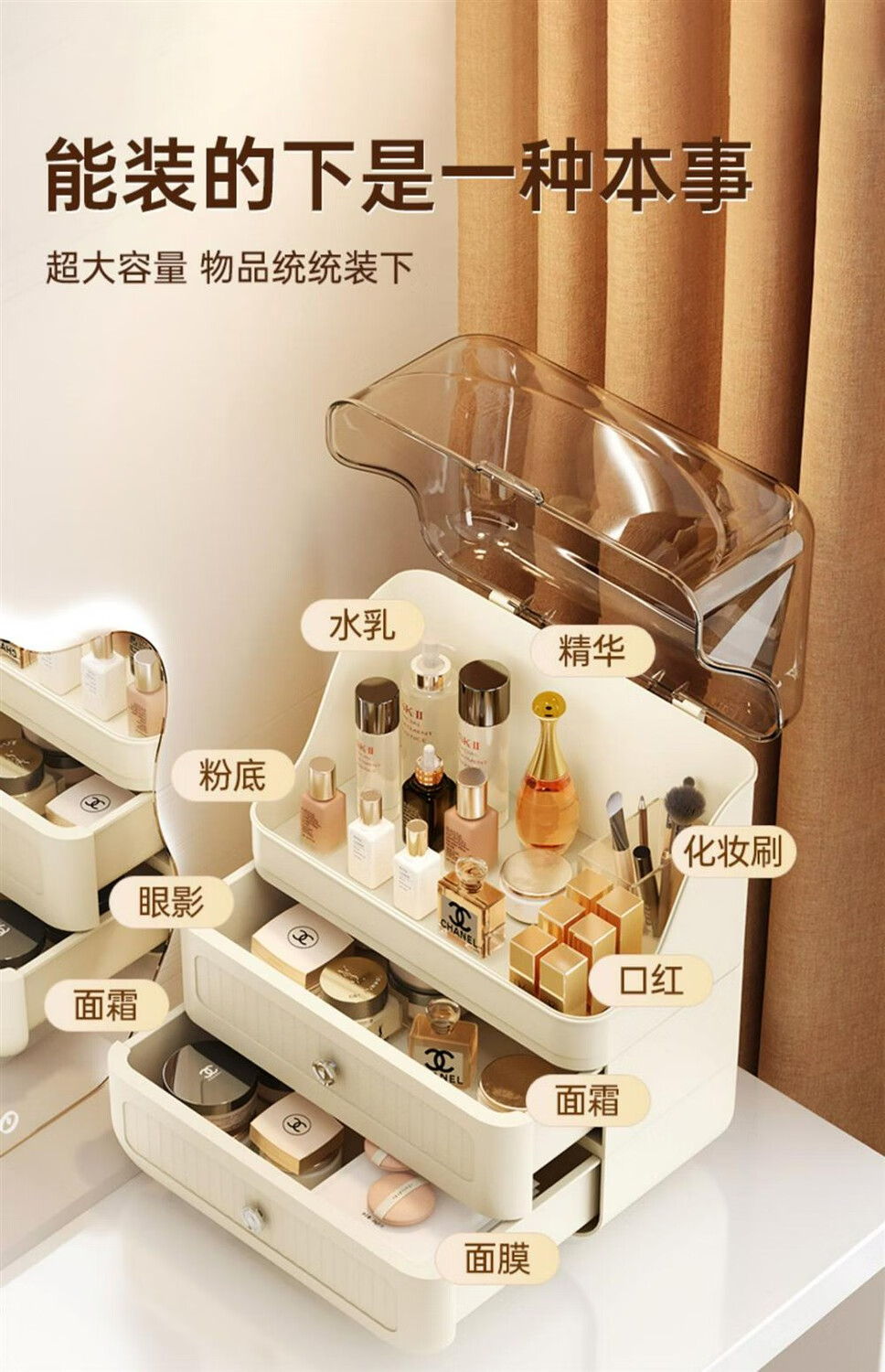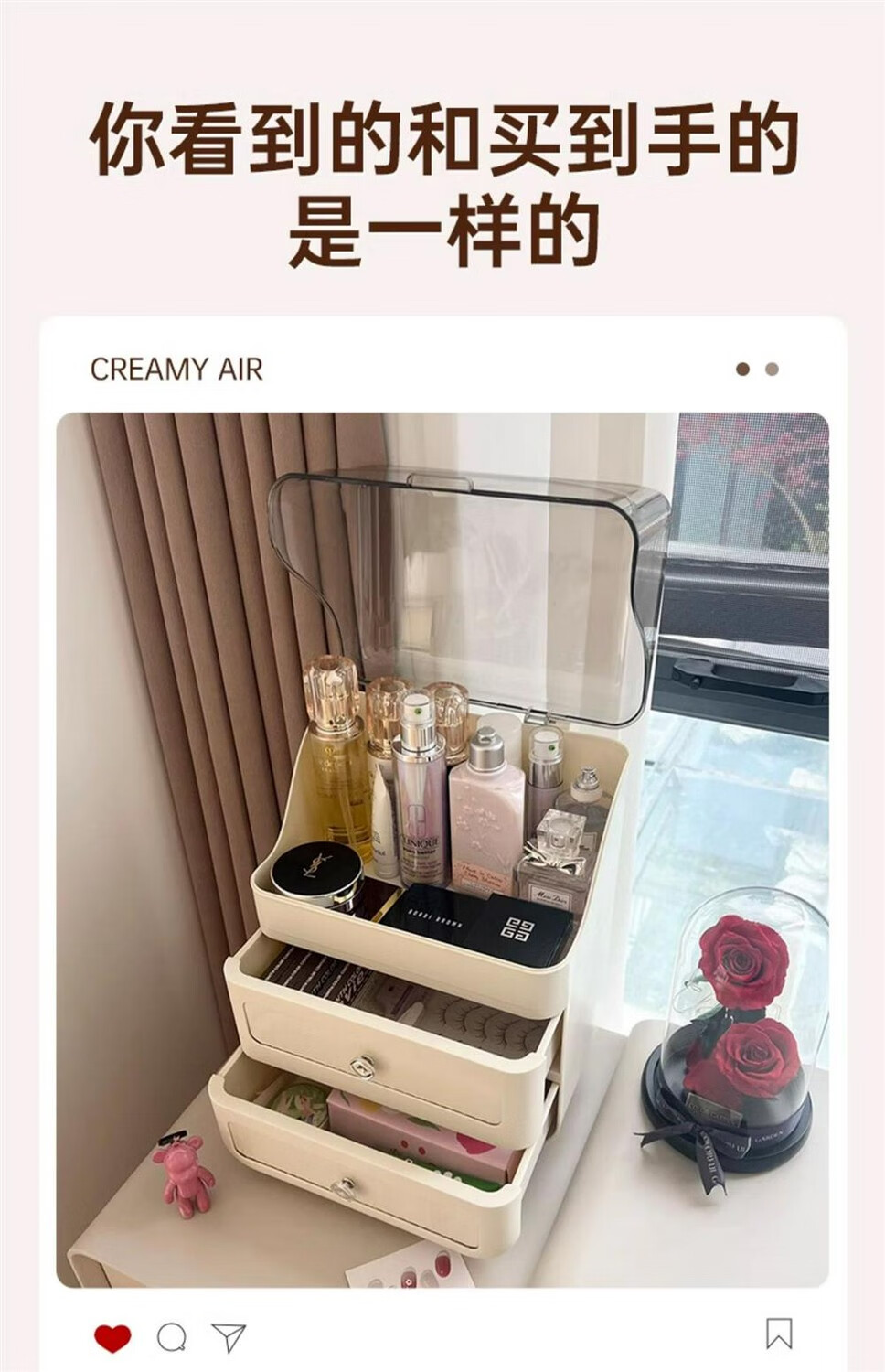 Cosmetic storage box capacity dust-proof new cream style desktop dressing table skin care product storage shelf cream three-layer dust-proof style