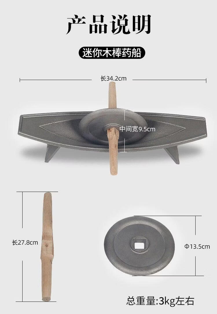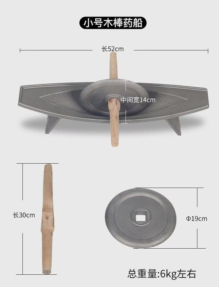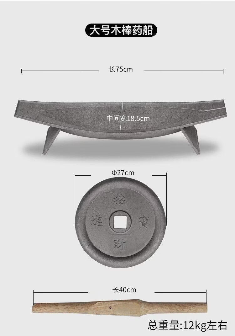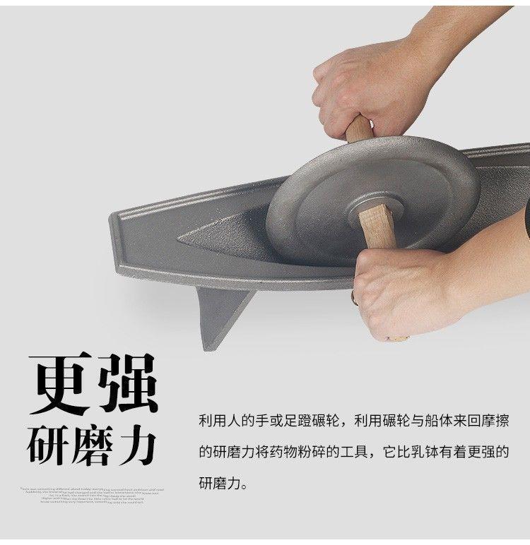 Pig iron medicine boat solid grinding groove household cast iron old-fashioned traditional Chinese medicine roller twister new chili powder herbal grinder regular model plus 5-piece anti-slip mat set_length 75cm width 18cm large size