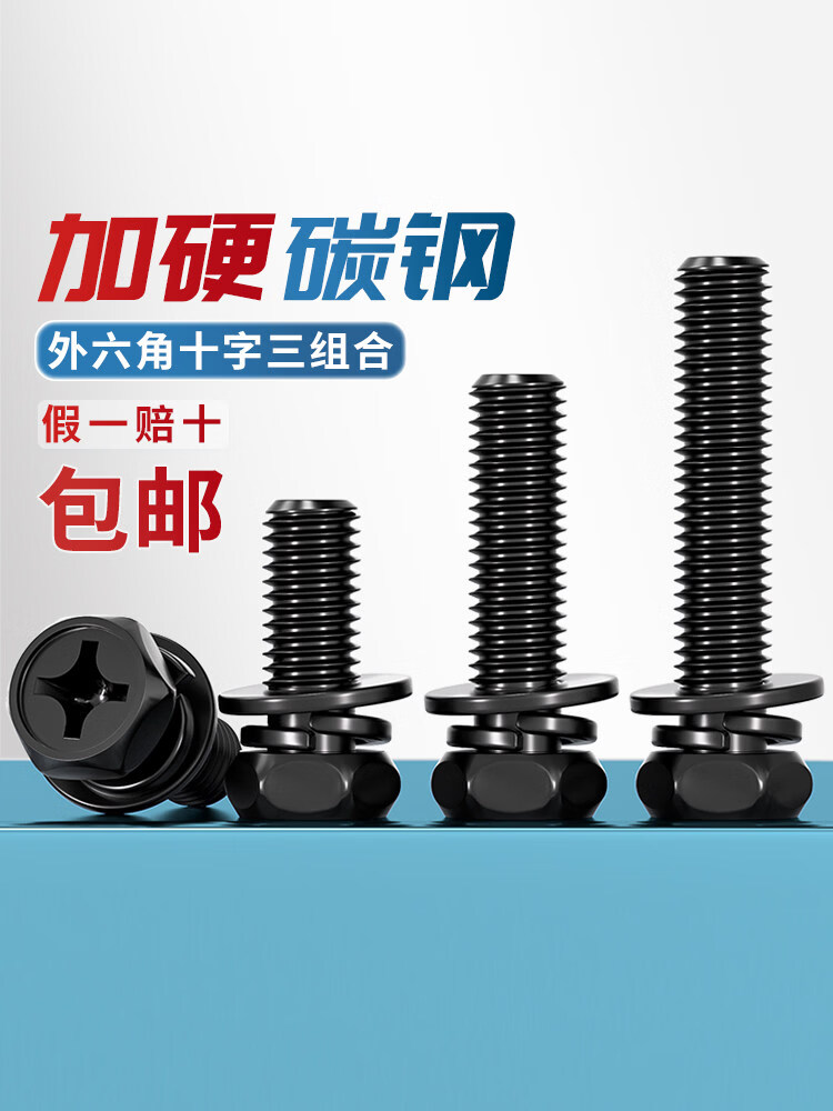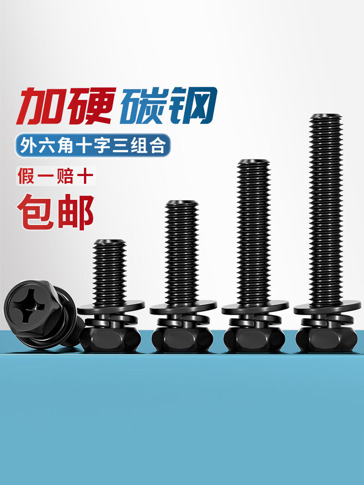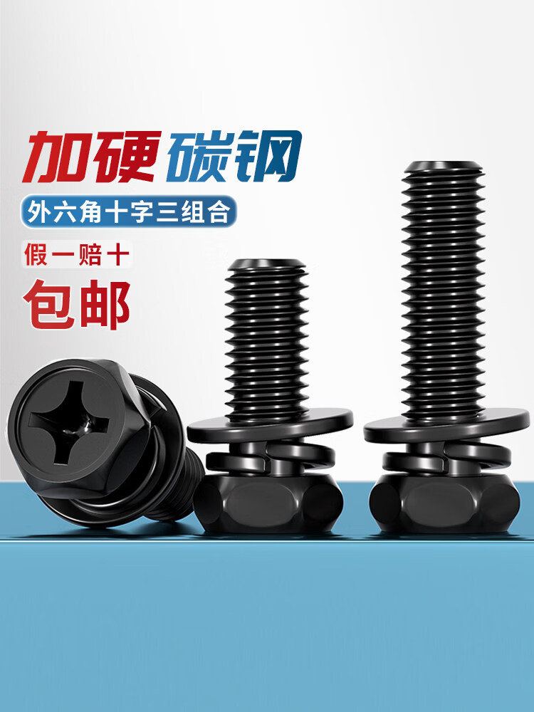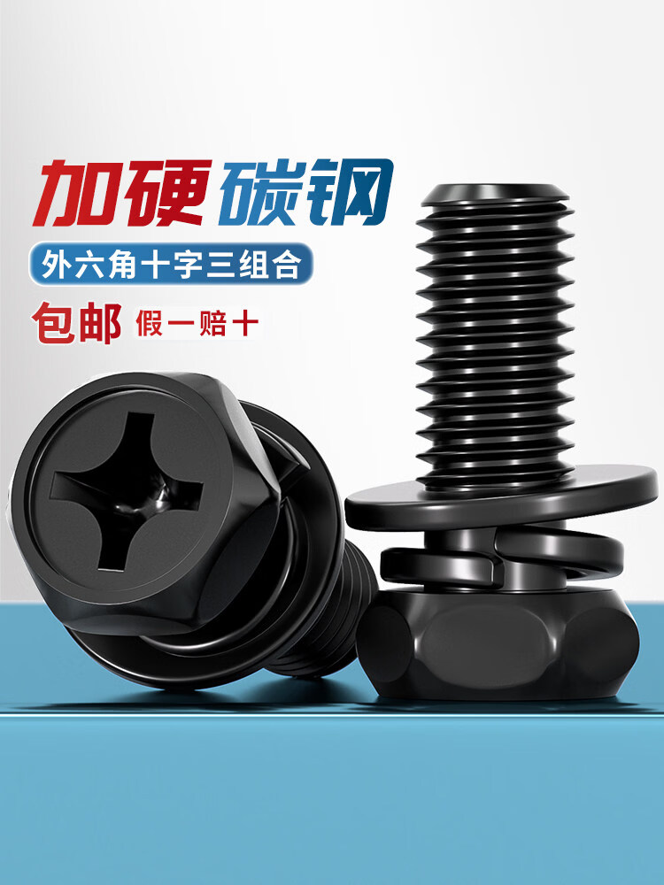 Tianzhuo Hardware black carbon steel outer hexagonal three-combination screw concave cross-hexagonal flat elastic combination MM3M4M5M6M8M10 M3*6-100 pieces