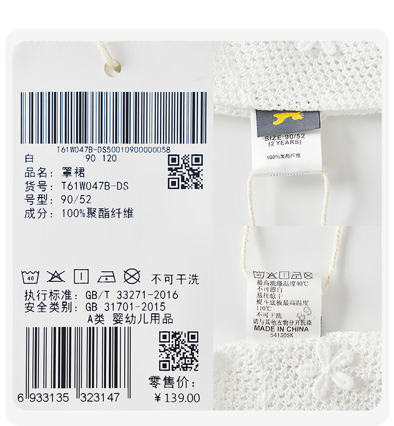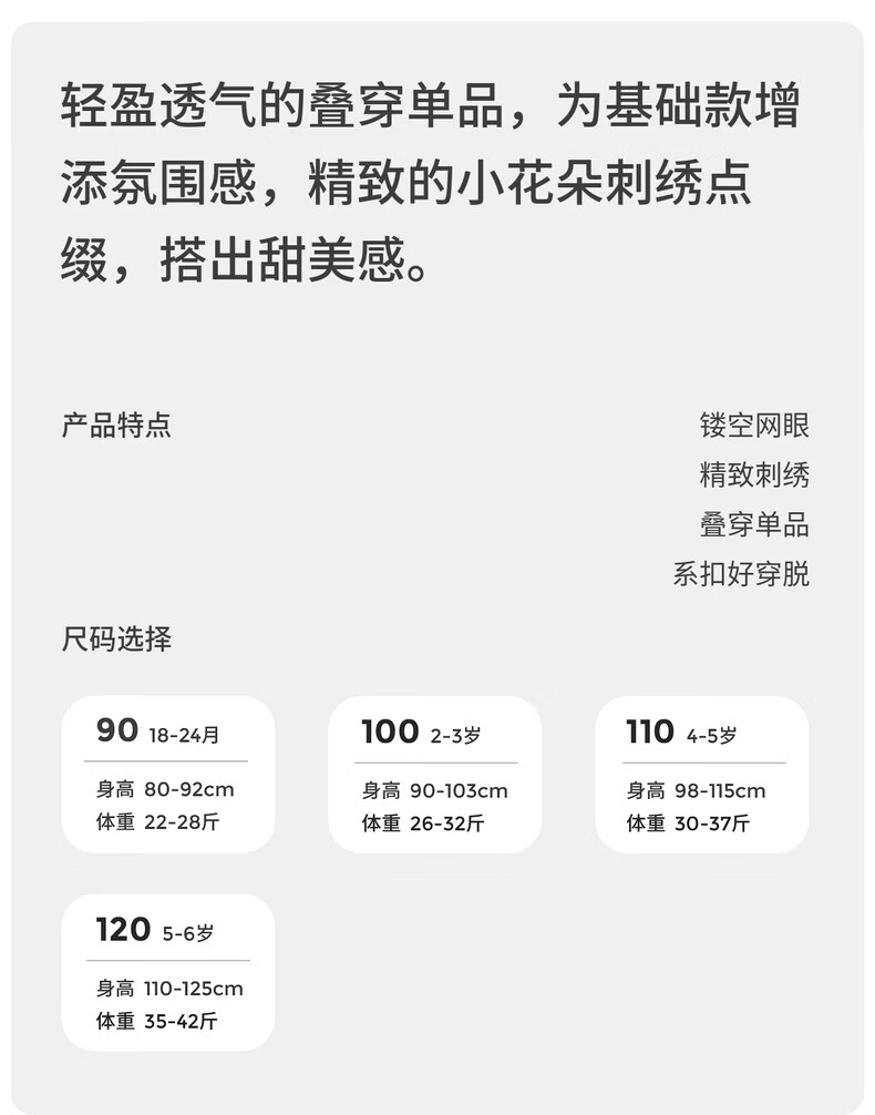 Tongtai (TONGTAI) baby girl dress spring and autumn children's clothing girls outer wear lace cover skirt mesh jacquard vest dress white 90