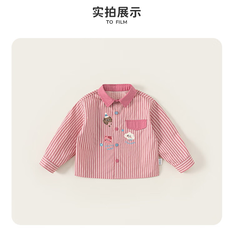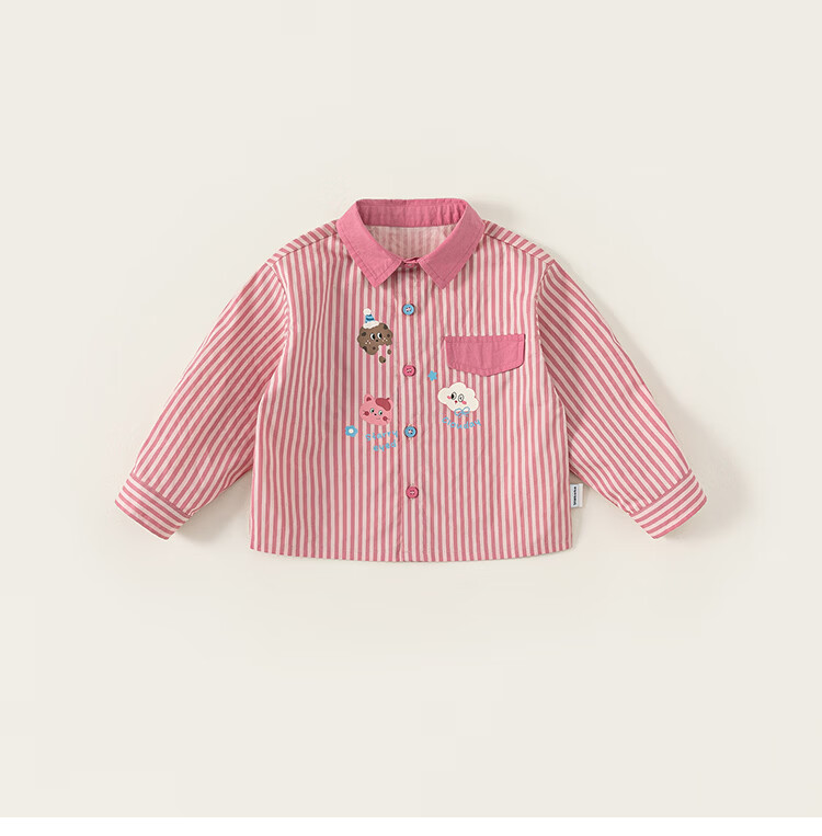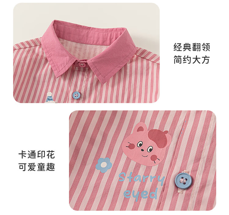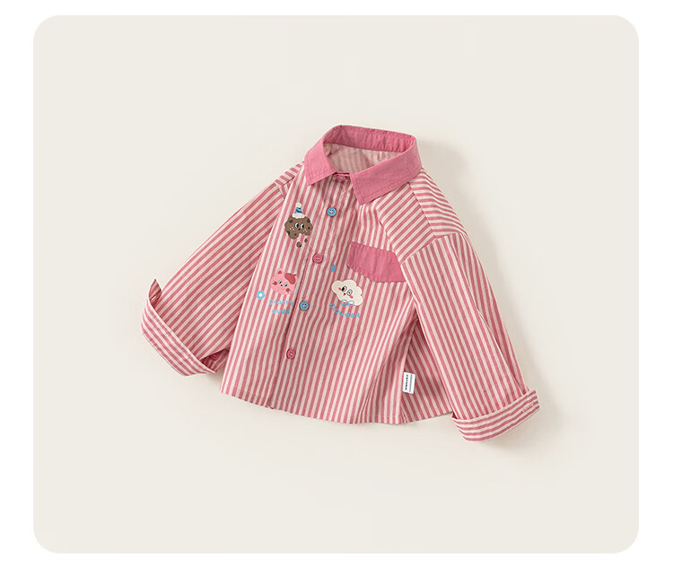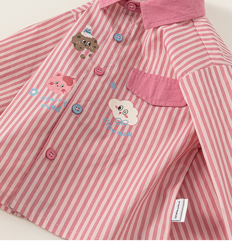 INSBOBO Girls' Shirts 2026 Spring New Children's Shirts Girls Good-looking Western Tops Clothes Spring Clothes Pink Stripes 80