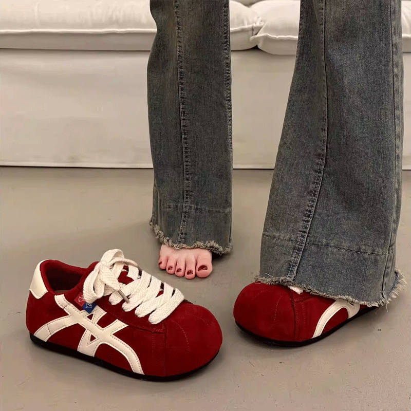 Woodpecker Thick-soled Inner Height-increasing Moral Training Shoes for Women 2026 Spring New Ugly Cute Bread Shoes Versatile Casual Student Sports Shoes Red 36 (230mm)