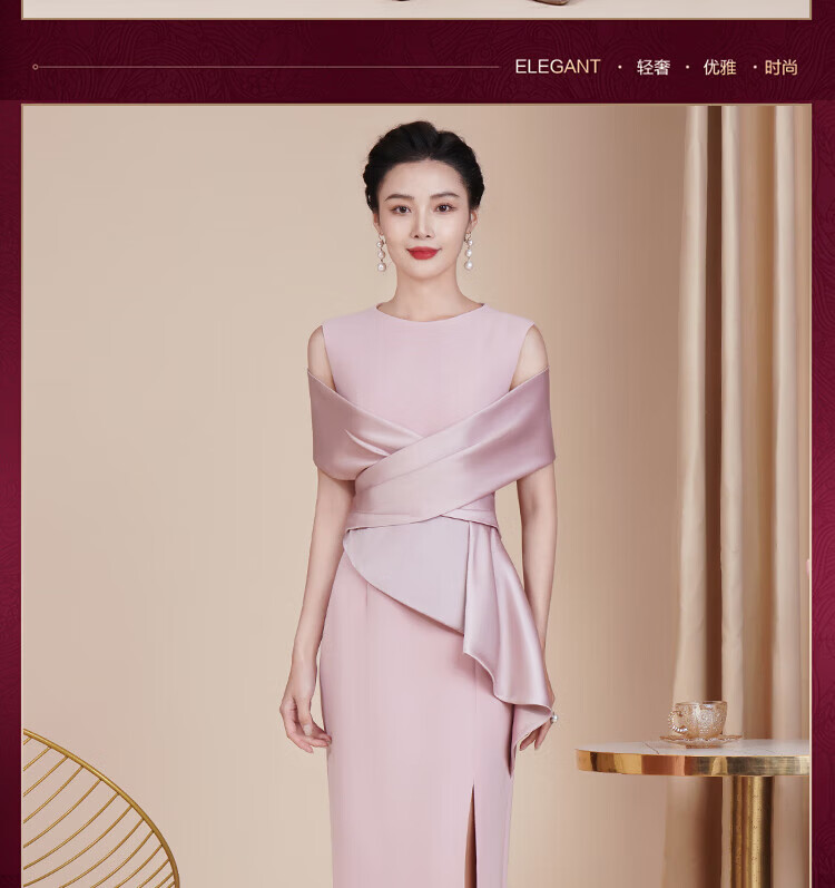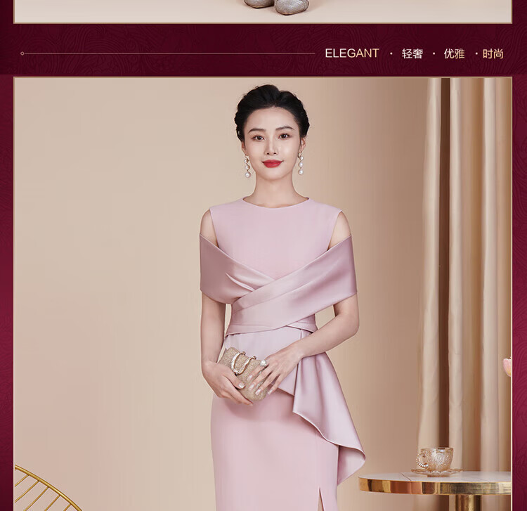 Rindu's daughter is getting married and her mother's high-end dress is high-end 2025 new style noble Xi mother-in-law's wedding banquet cheongsam pink S