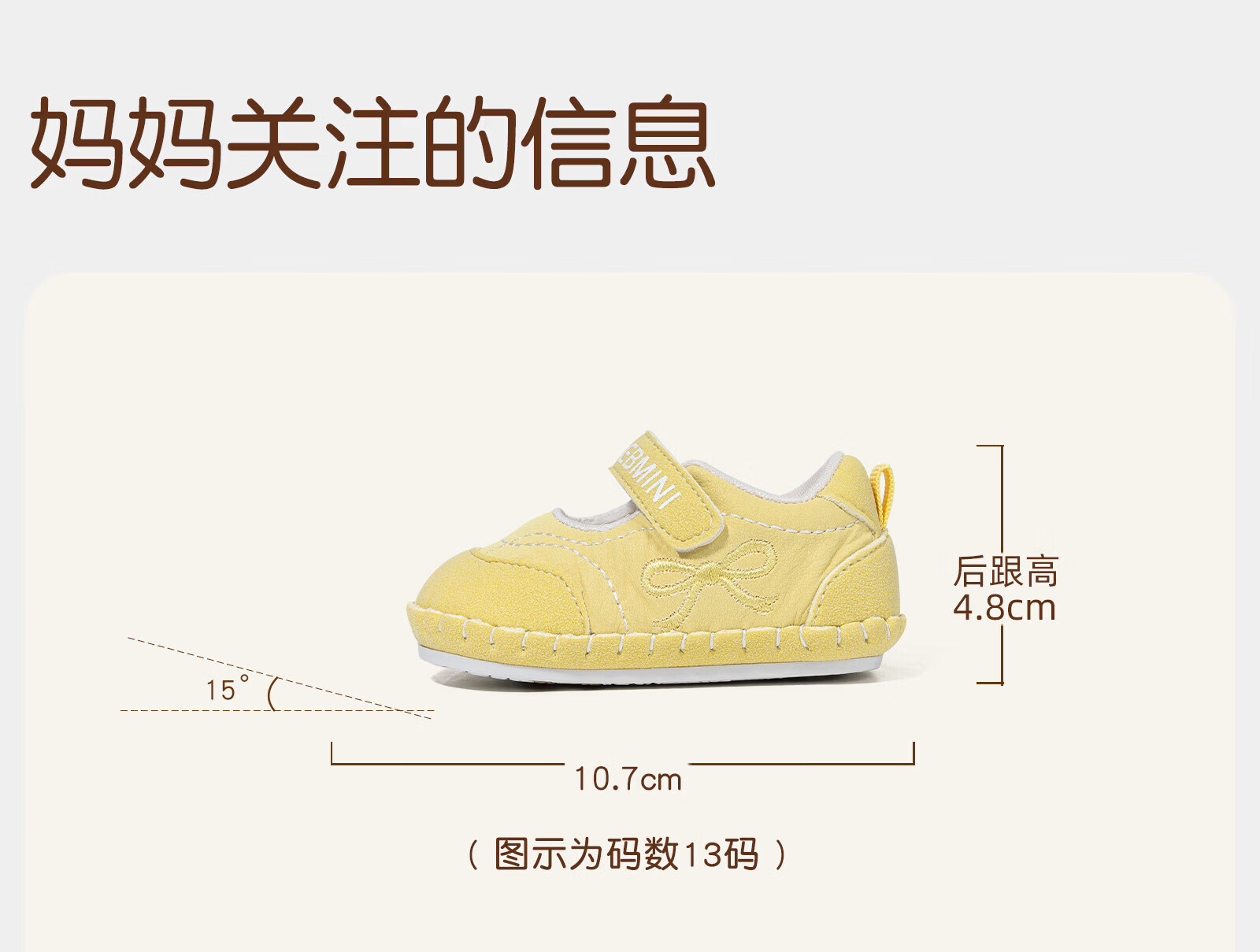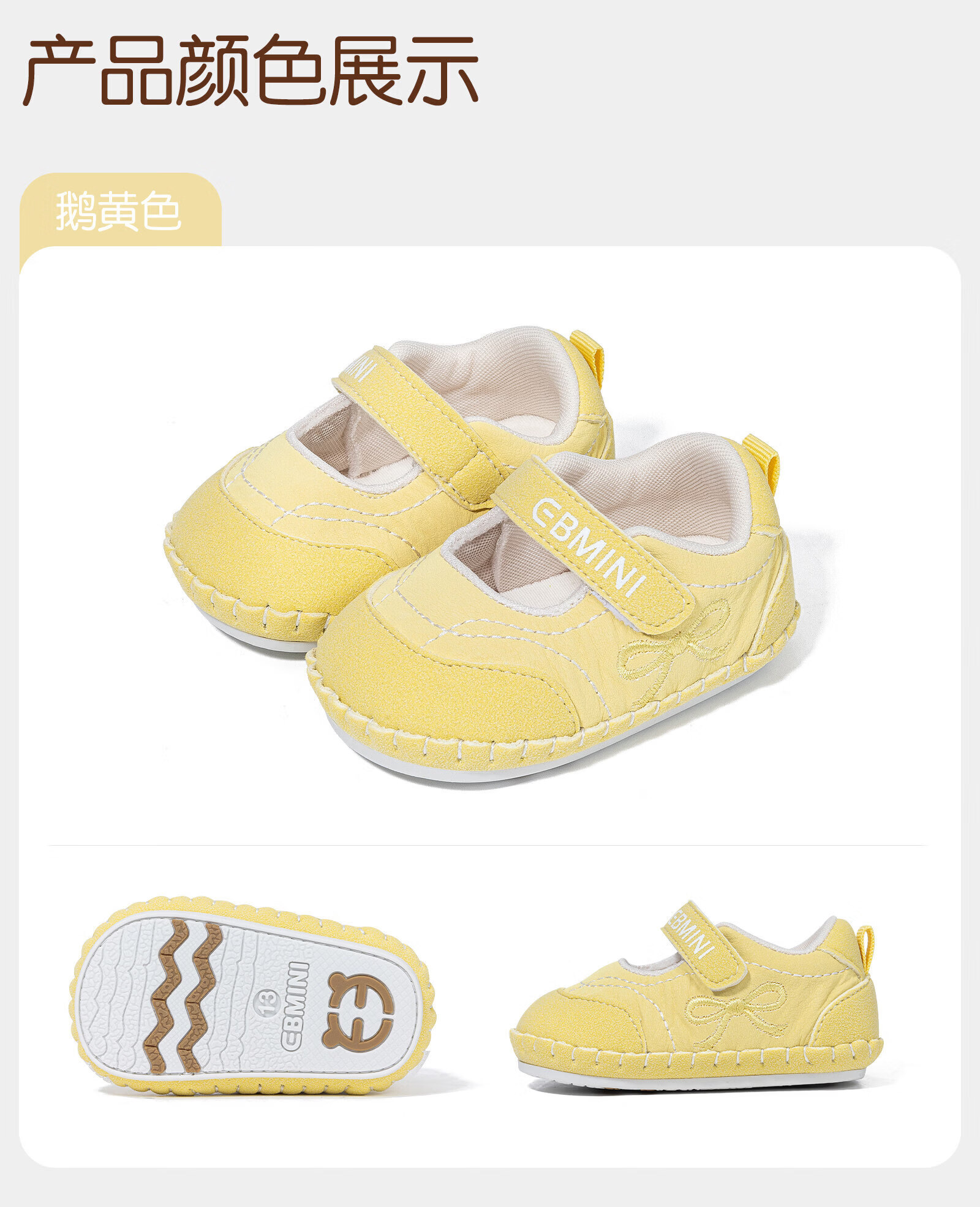 Inbemini girls' front shoes 2026 spring new comfortable soft-soled baby girl's shoes for 6-15 months infants and young children, goose yellow 13, inner length 10.5CM, suitable for feet around 9.8CM