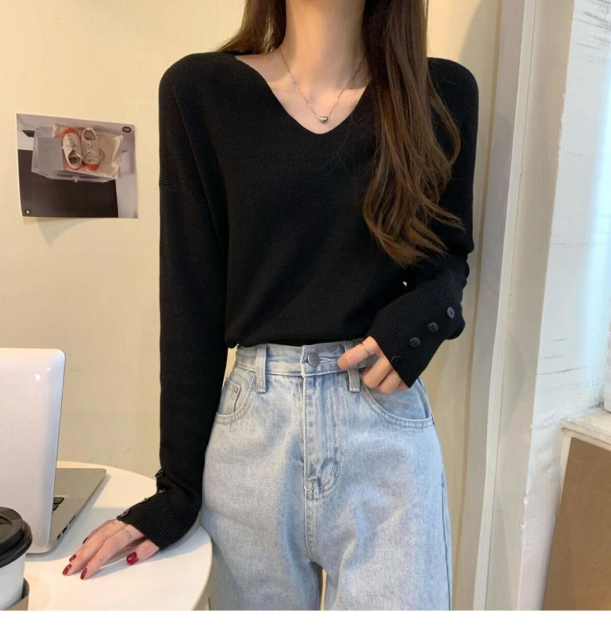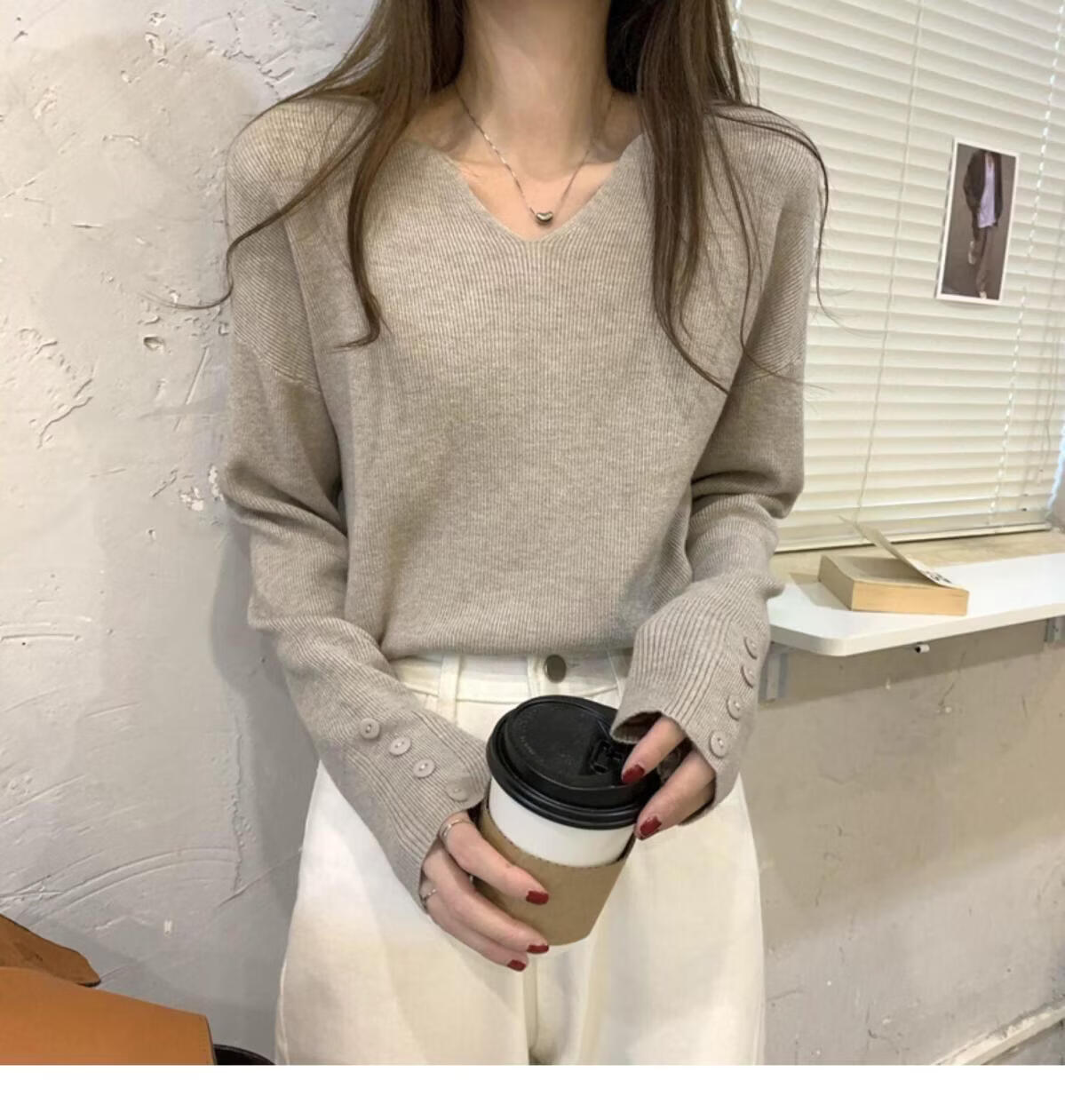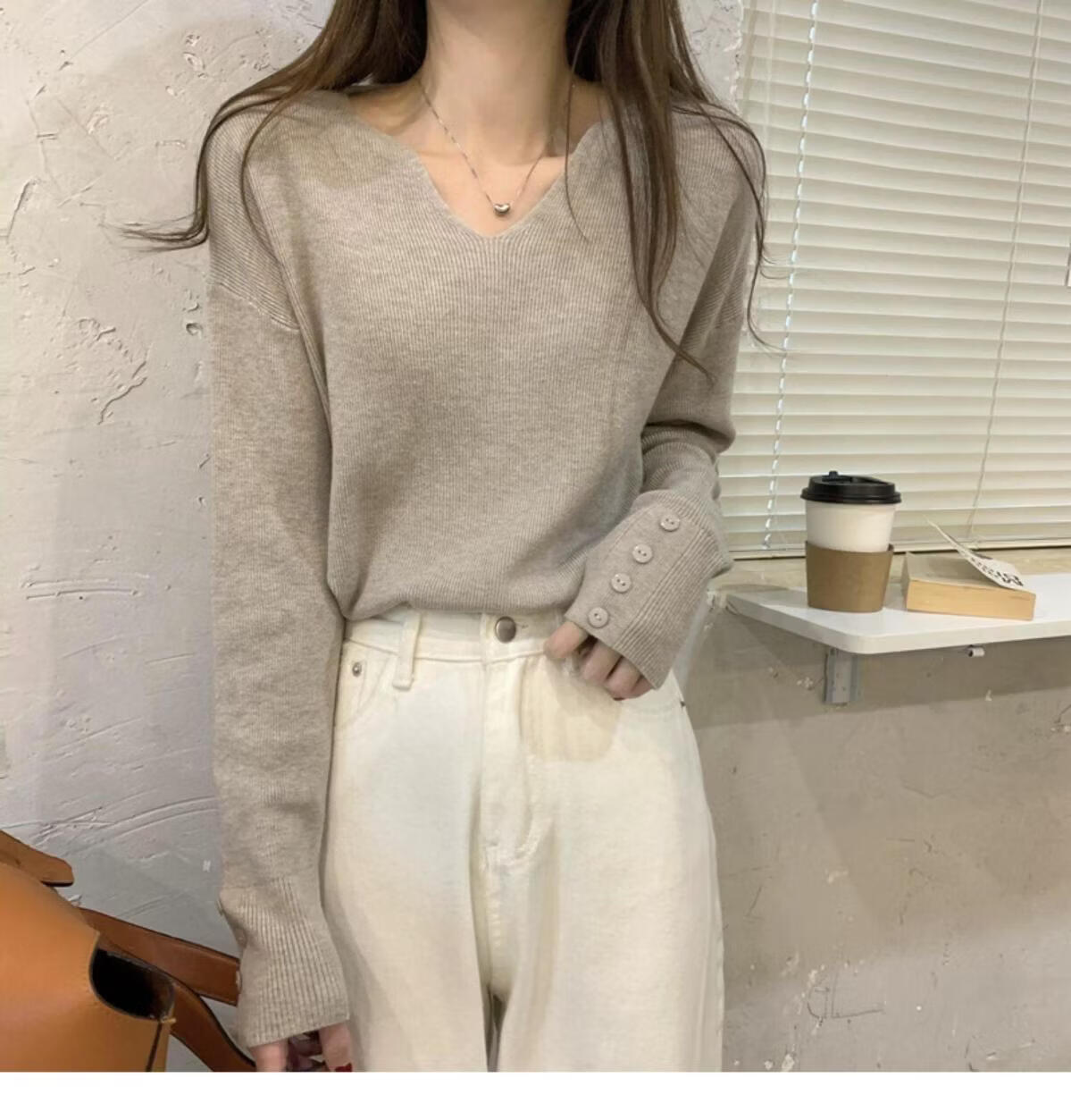 Woodpecker (TUCANO) V-neck sweater for women autumn new 2026 Korean style loose pullover sweater lazy top versatile long-sleeved bottoming shirt Khaki M Recommendation 95-105Jin Jin is equal to 0.5 kg