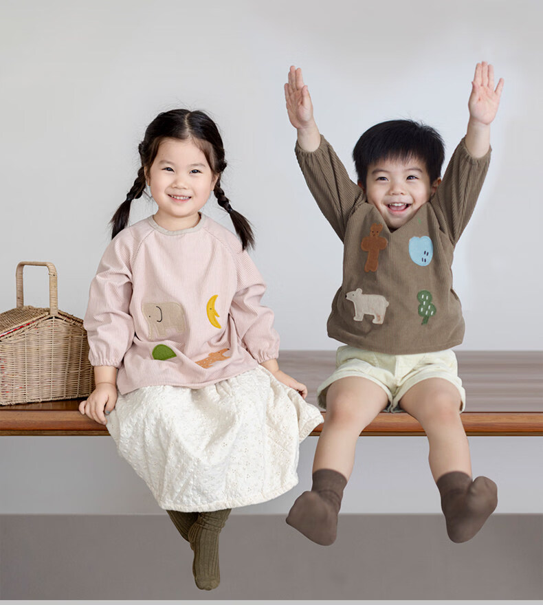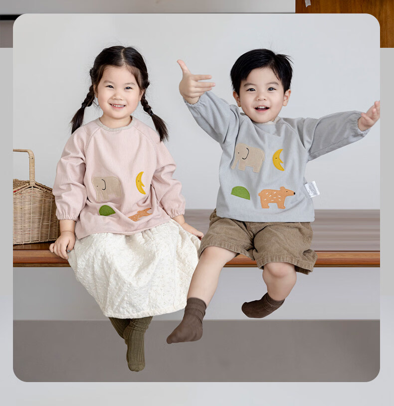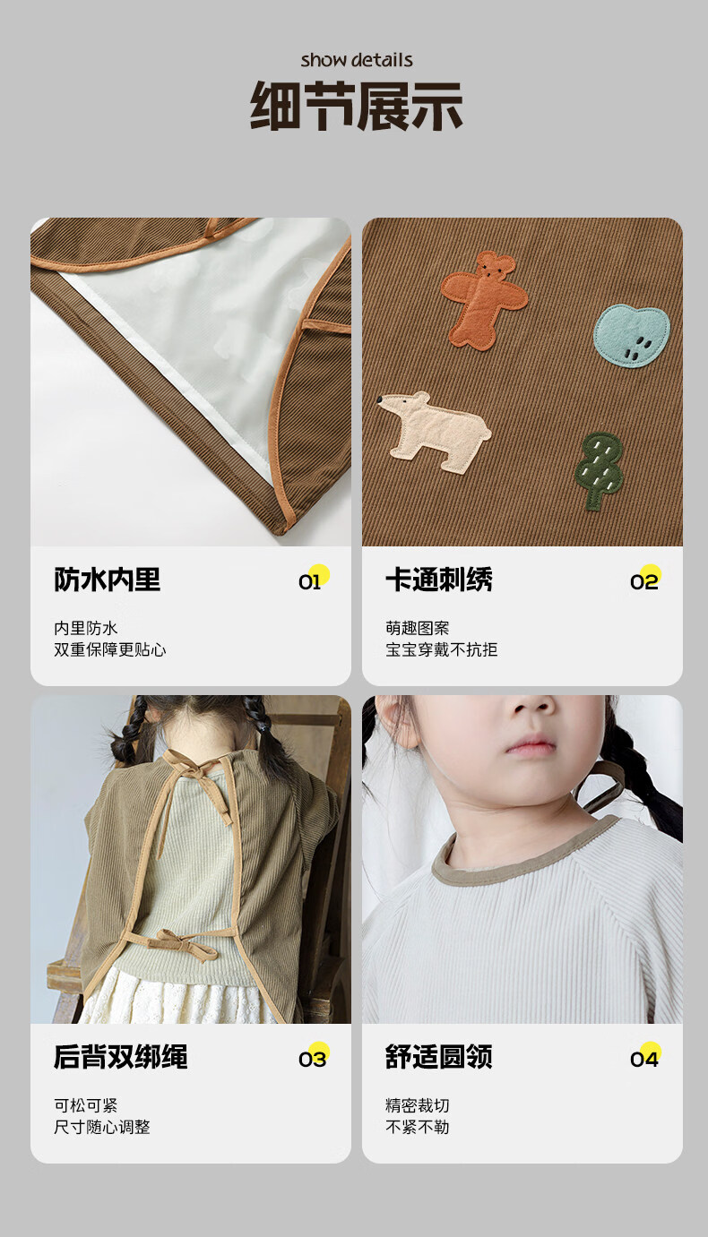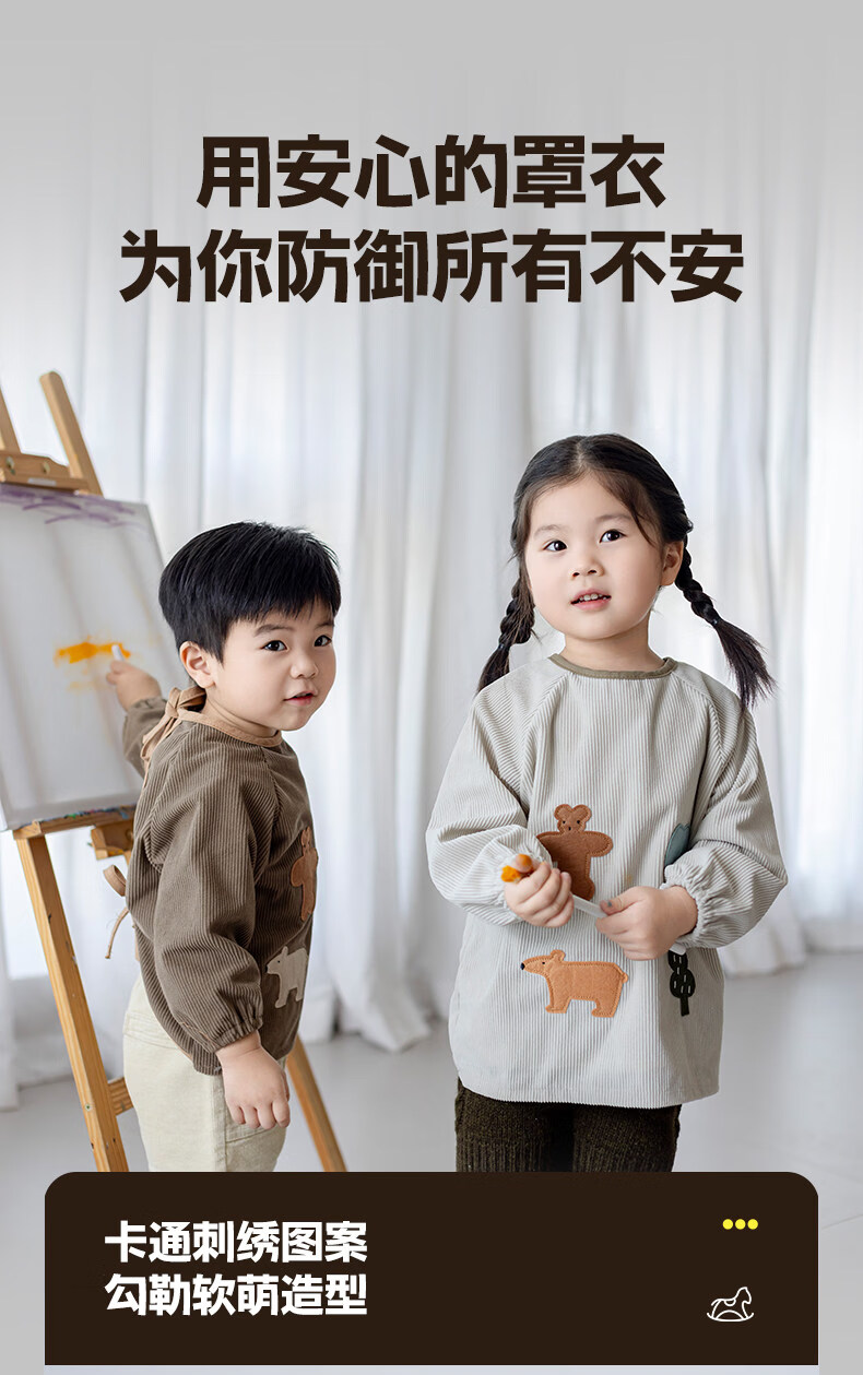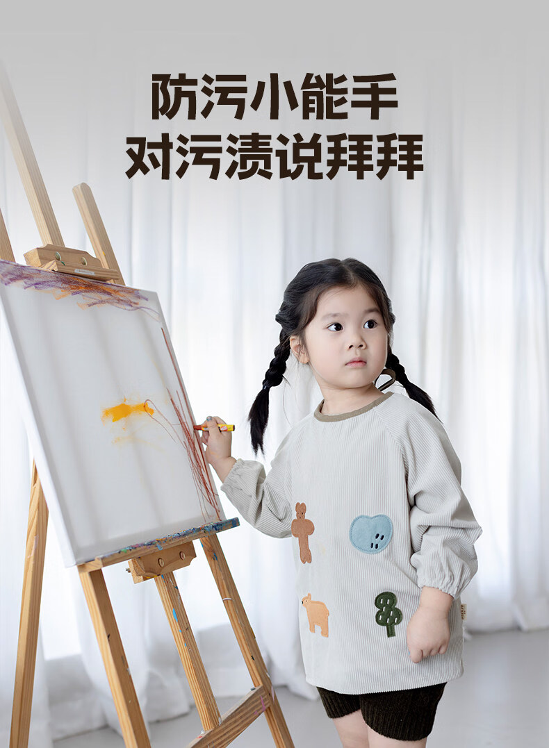Baby smock autumn and winter children's kindergarten waterproof anti-dirty eating bib apron baby food supplement reverse dressing coffee color 170 M (applicable to height 80-100)