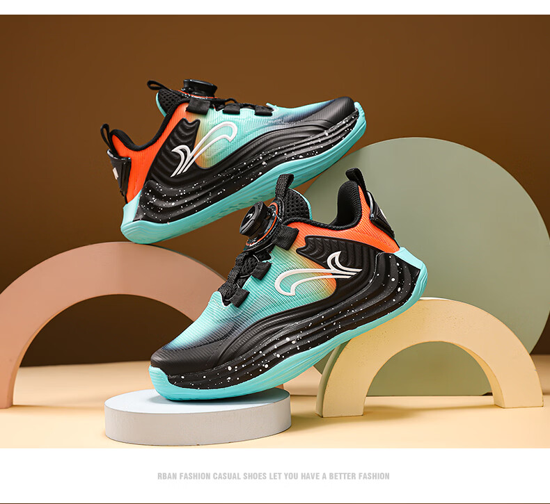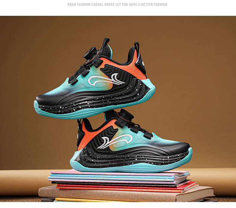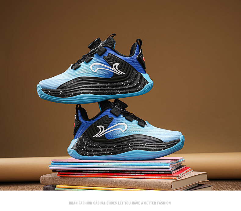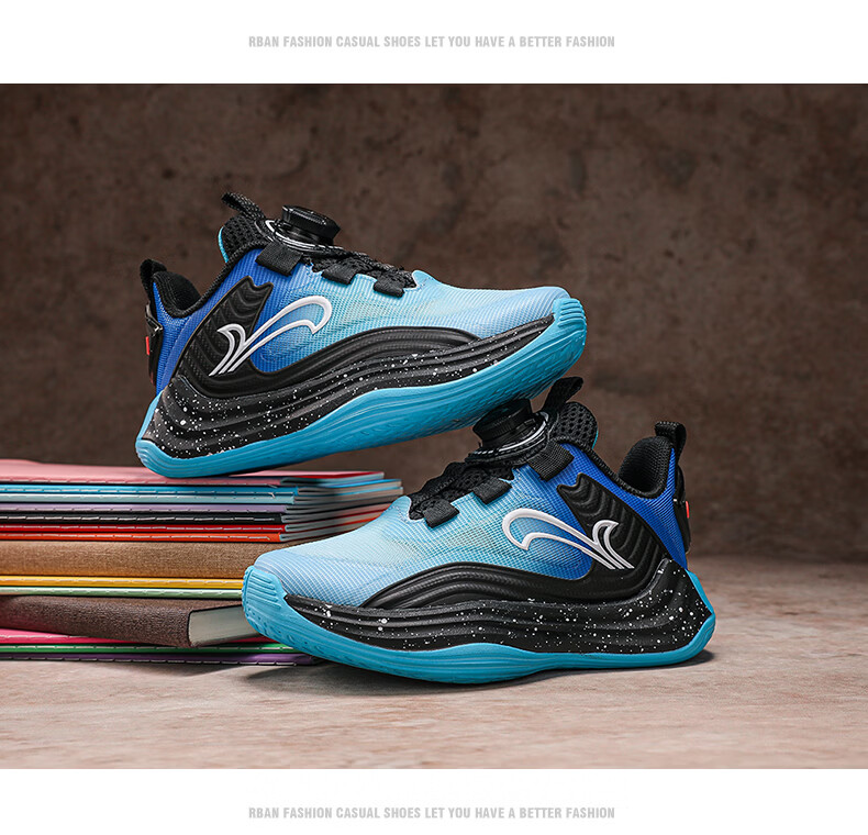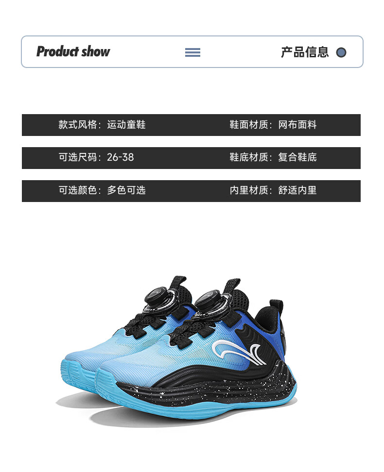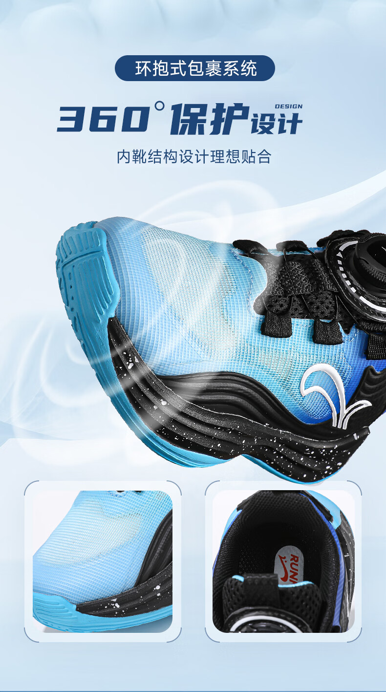Guirenniao children's shoes spring new model for middle and large children mesh breathable sports running shoes soft sole casual shoes black lake blue 29 inner length 18.2/foot length 17.2