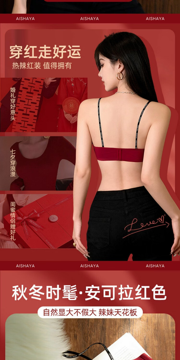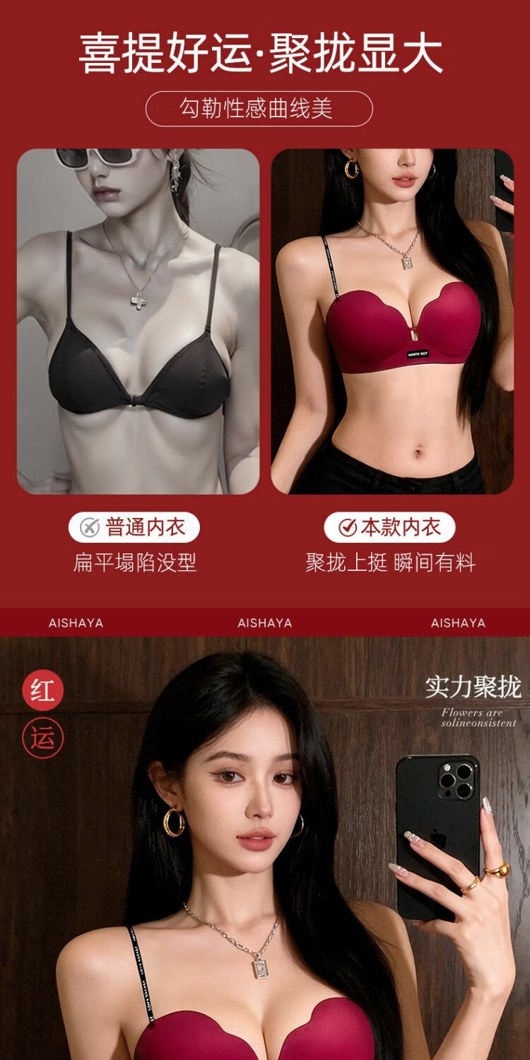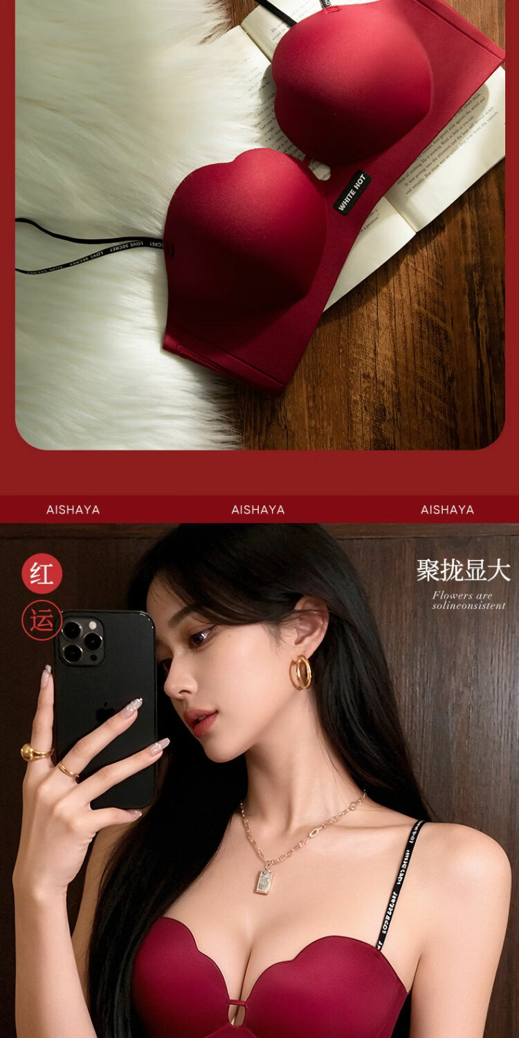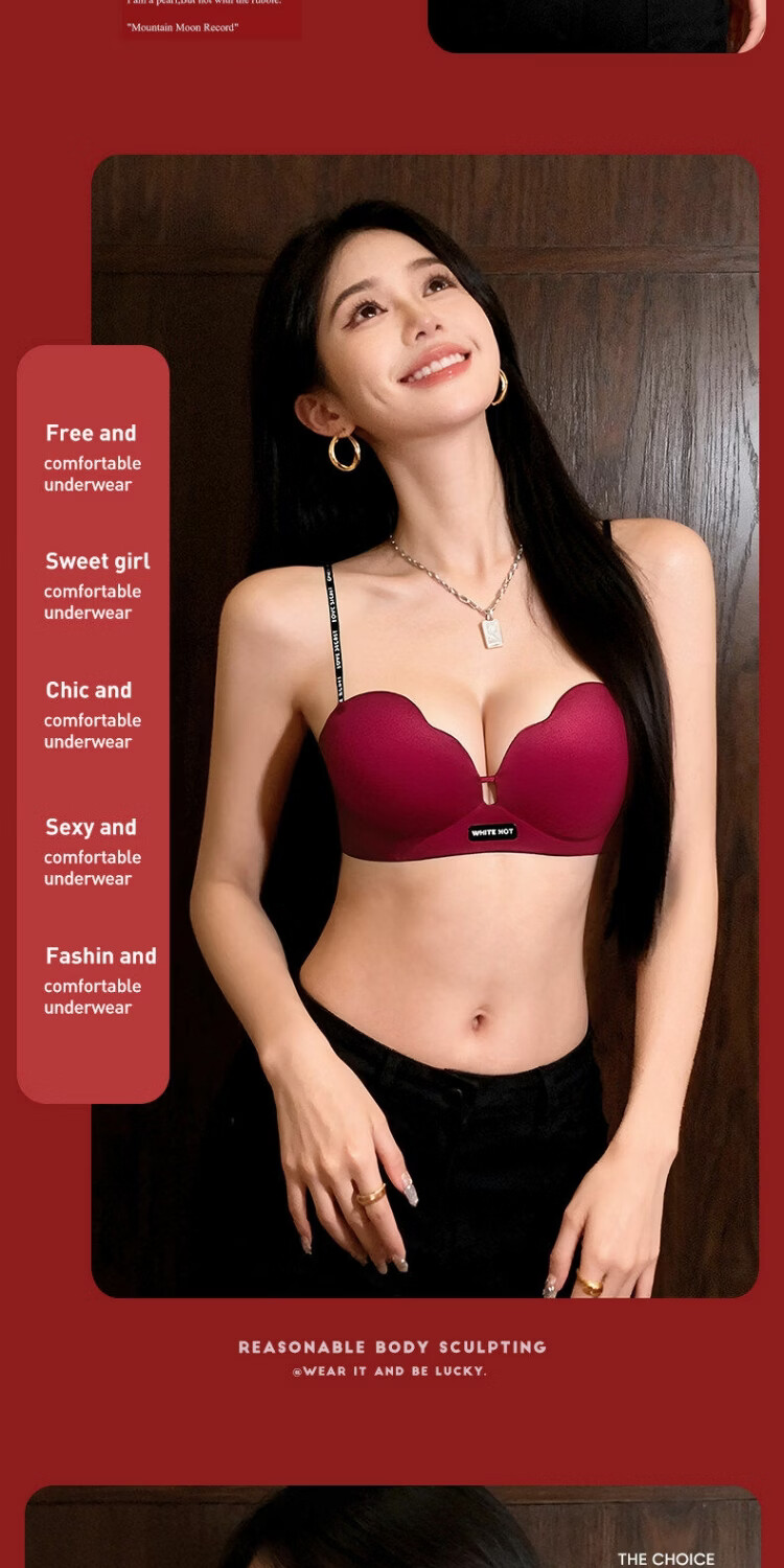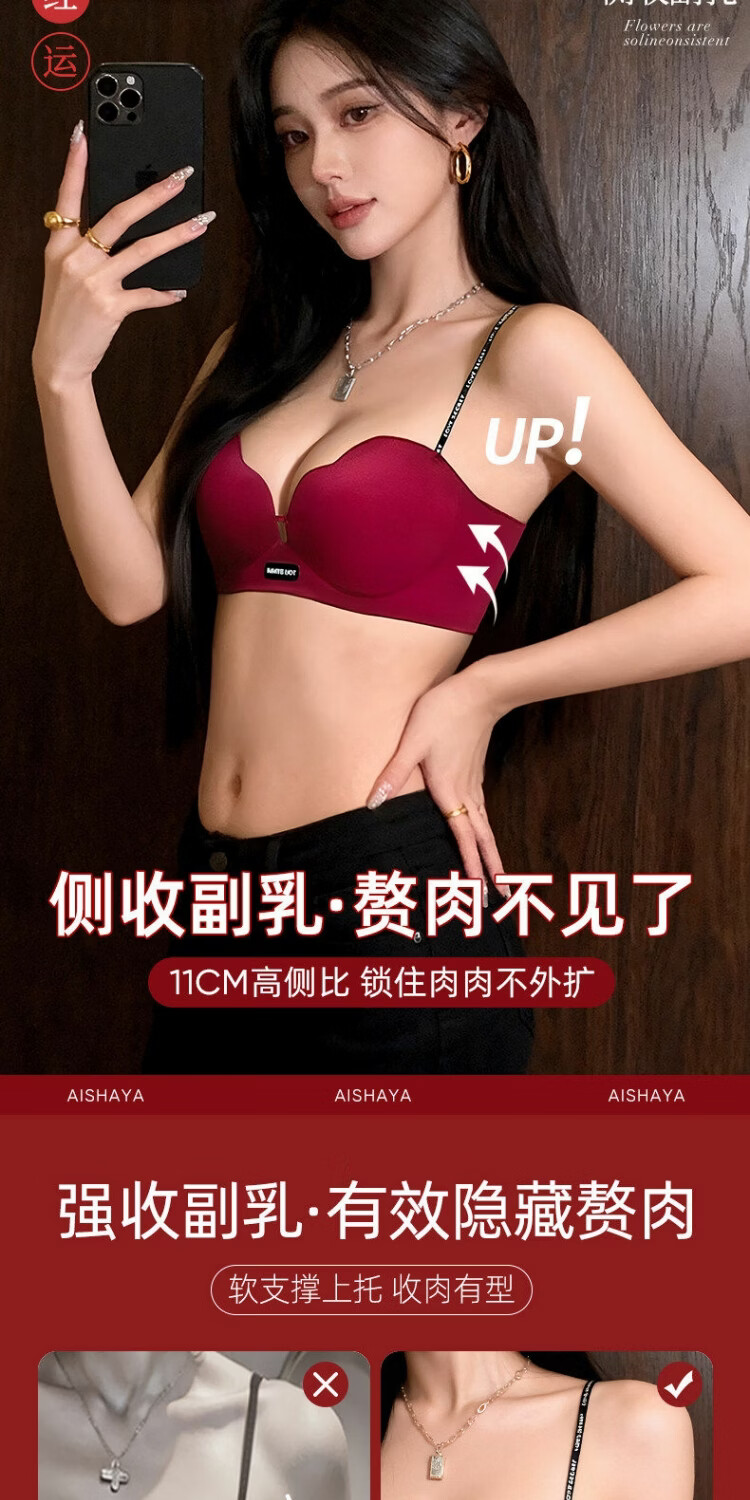 Red zodiac year underwear for women with small breasts gathered to look bigger without steel rings to prevent sagging 2026 popular sexy seamless bra vanilla green S suitable for 32/70AB