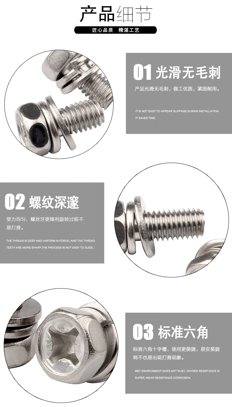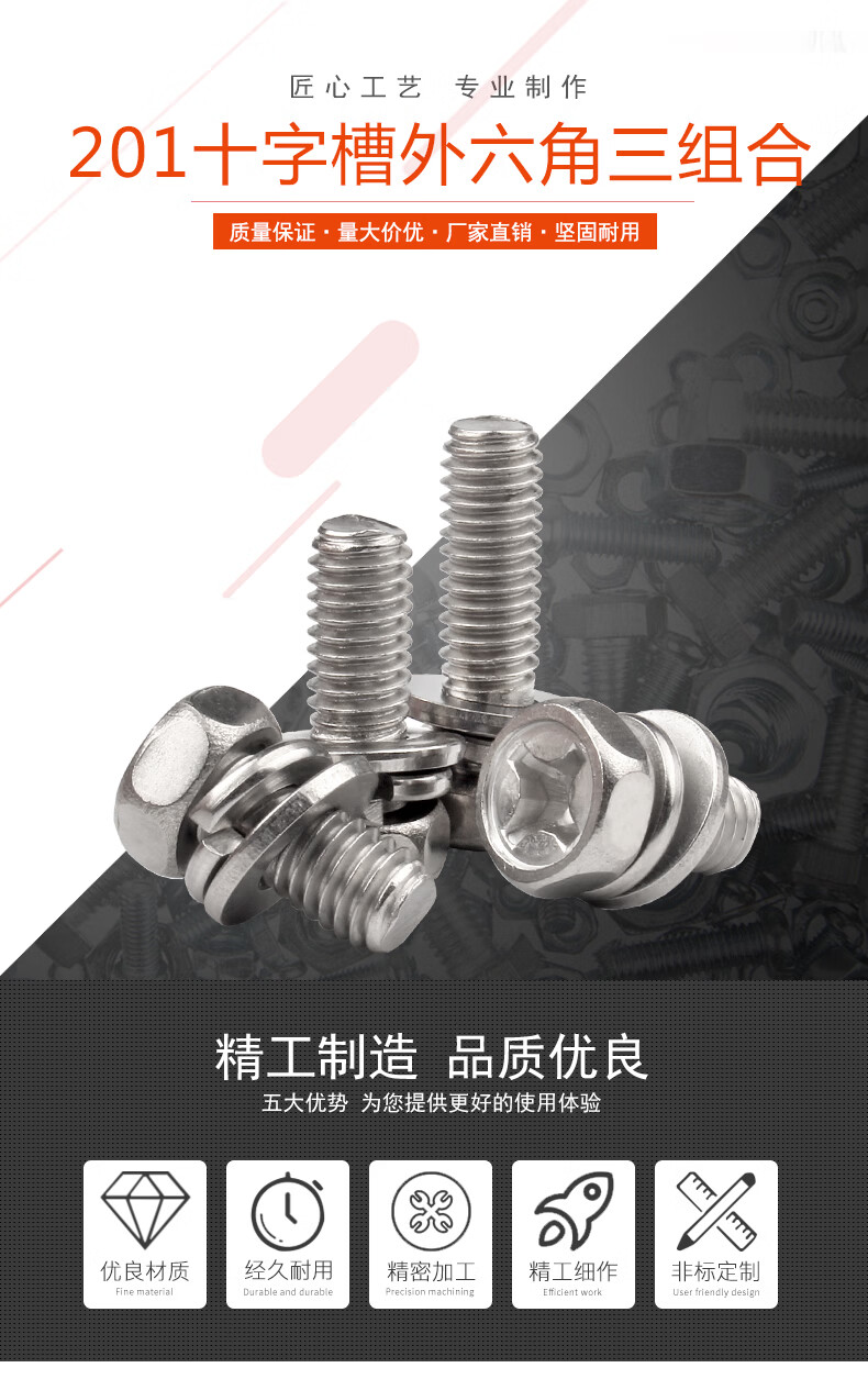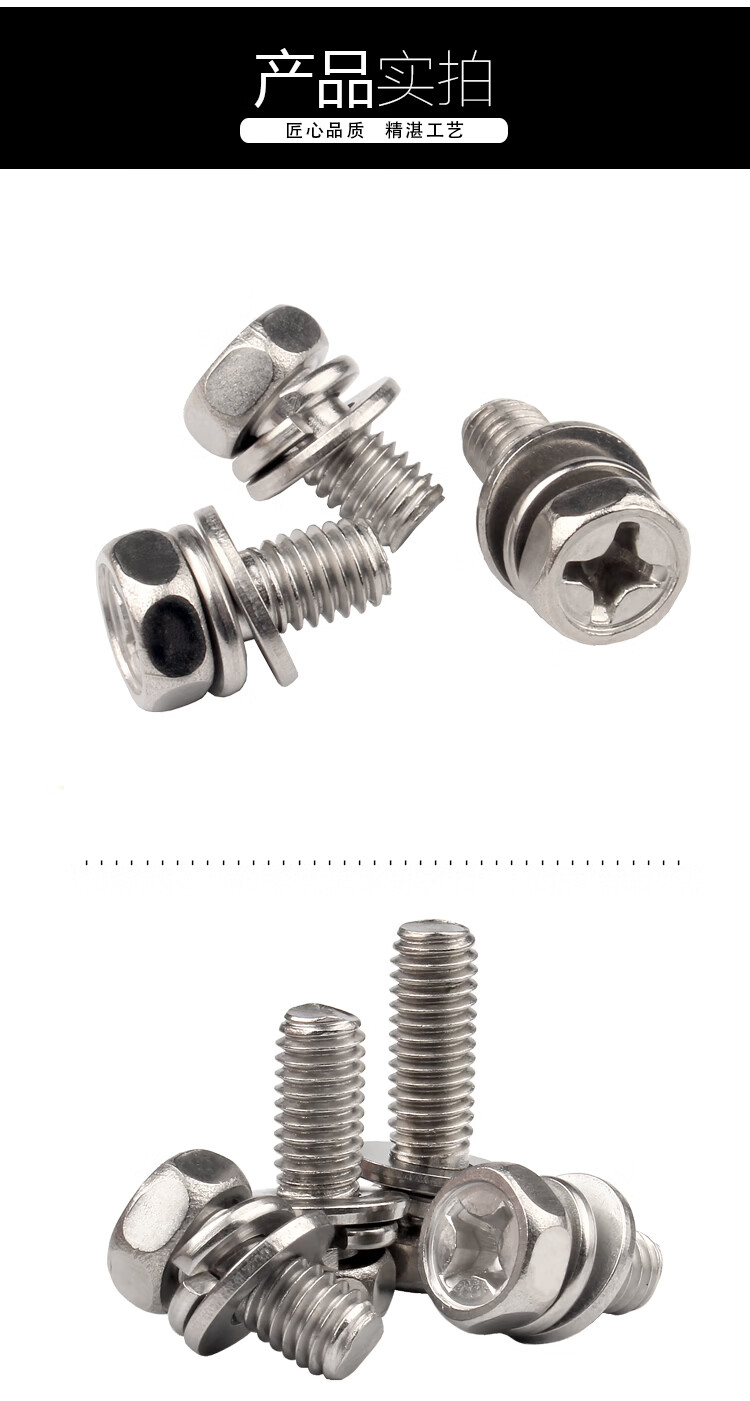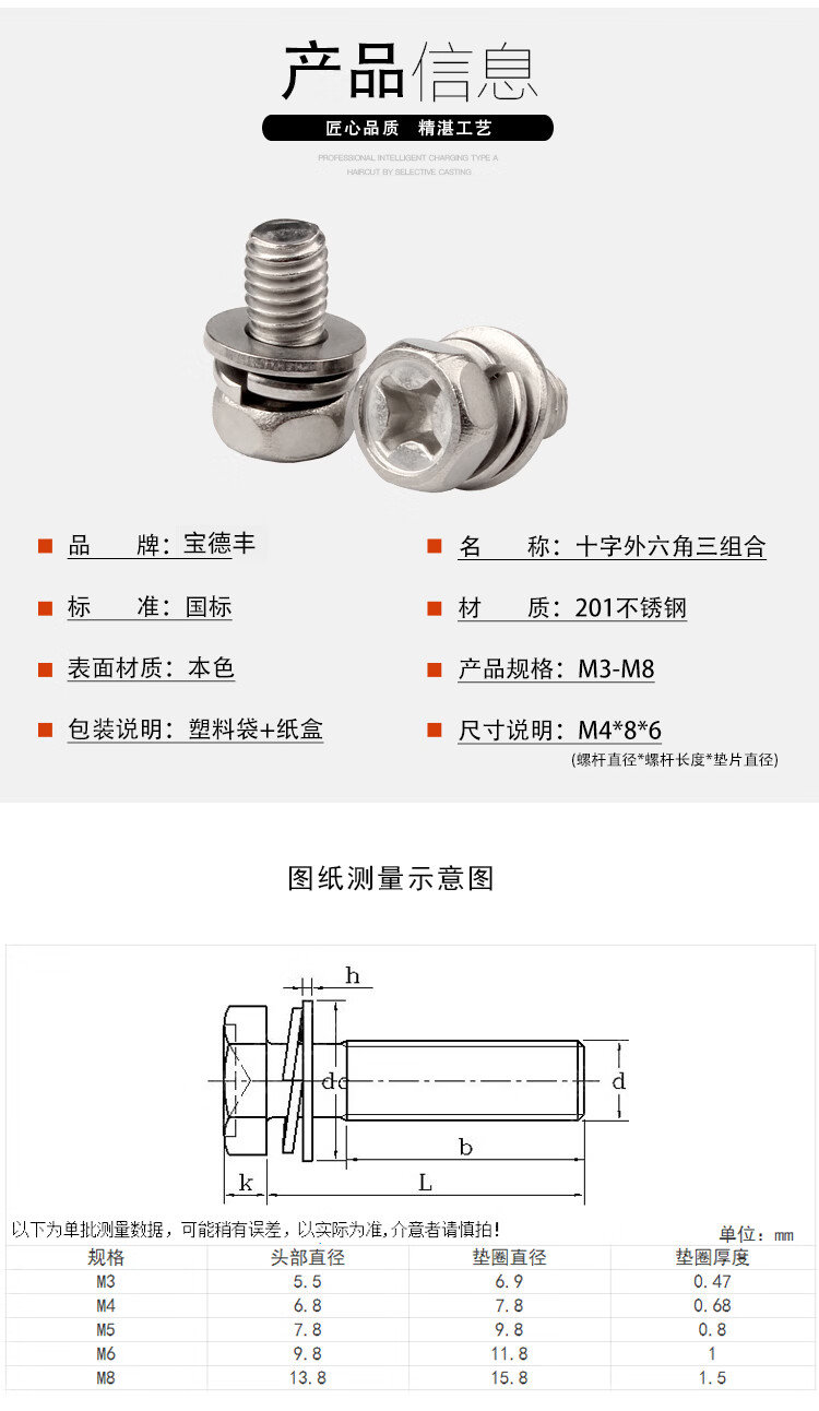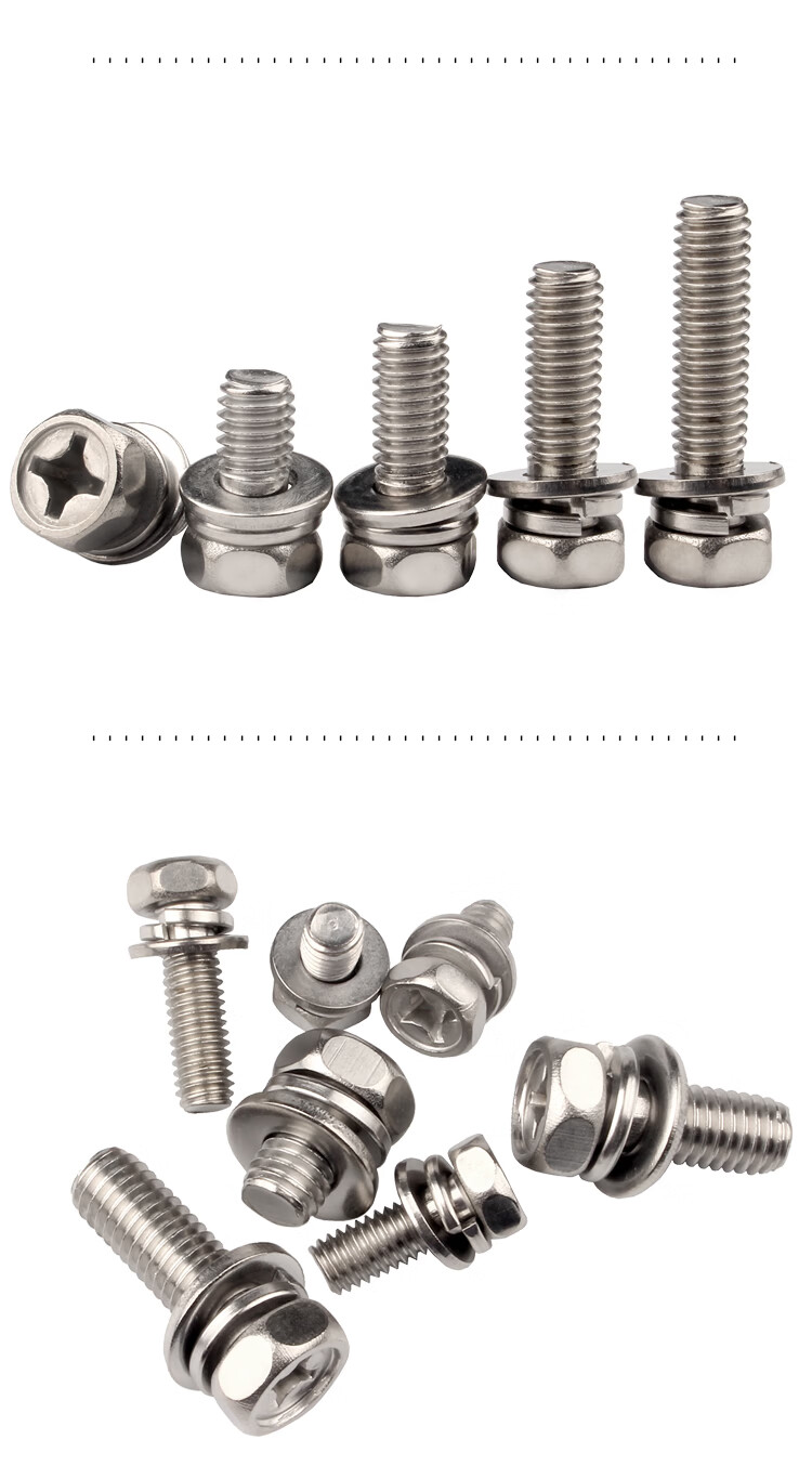 Baodefeng 201 stainless steel cross recessed external hexagonal three-combination screw cross external hexagonal bolt pocket combination bolt M3x12x6 100 pieces
